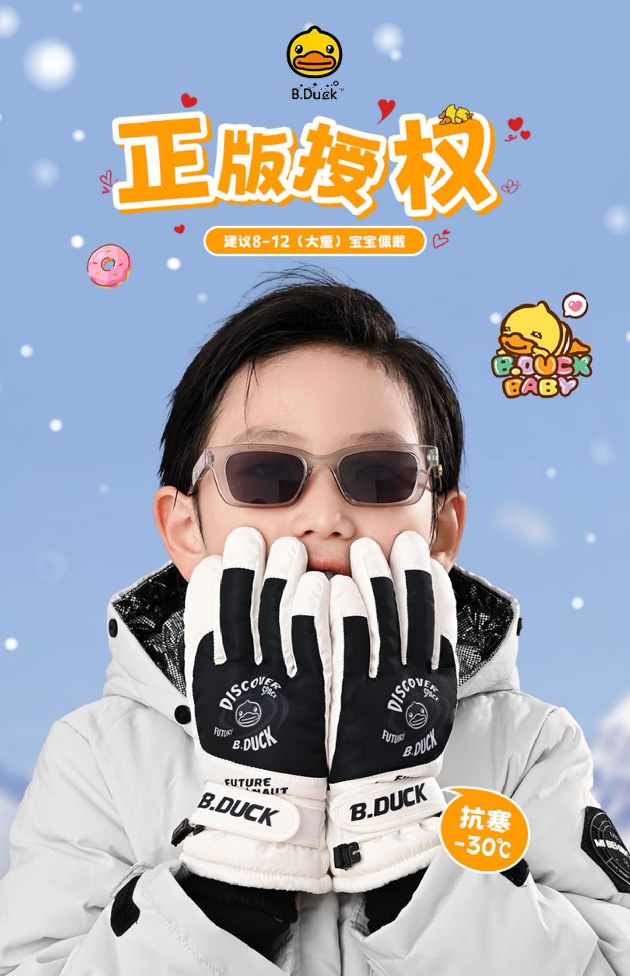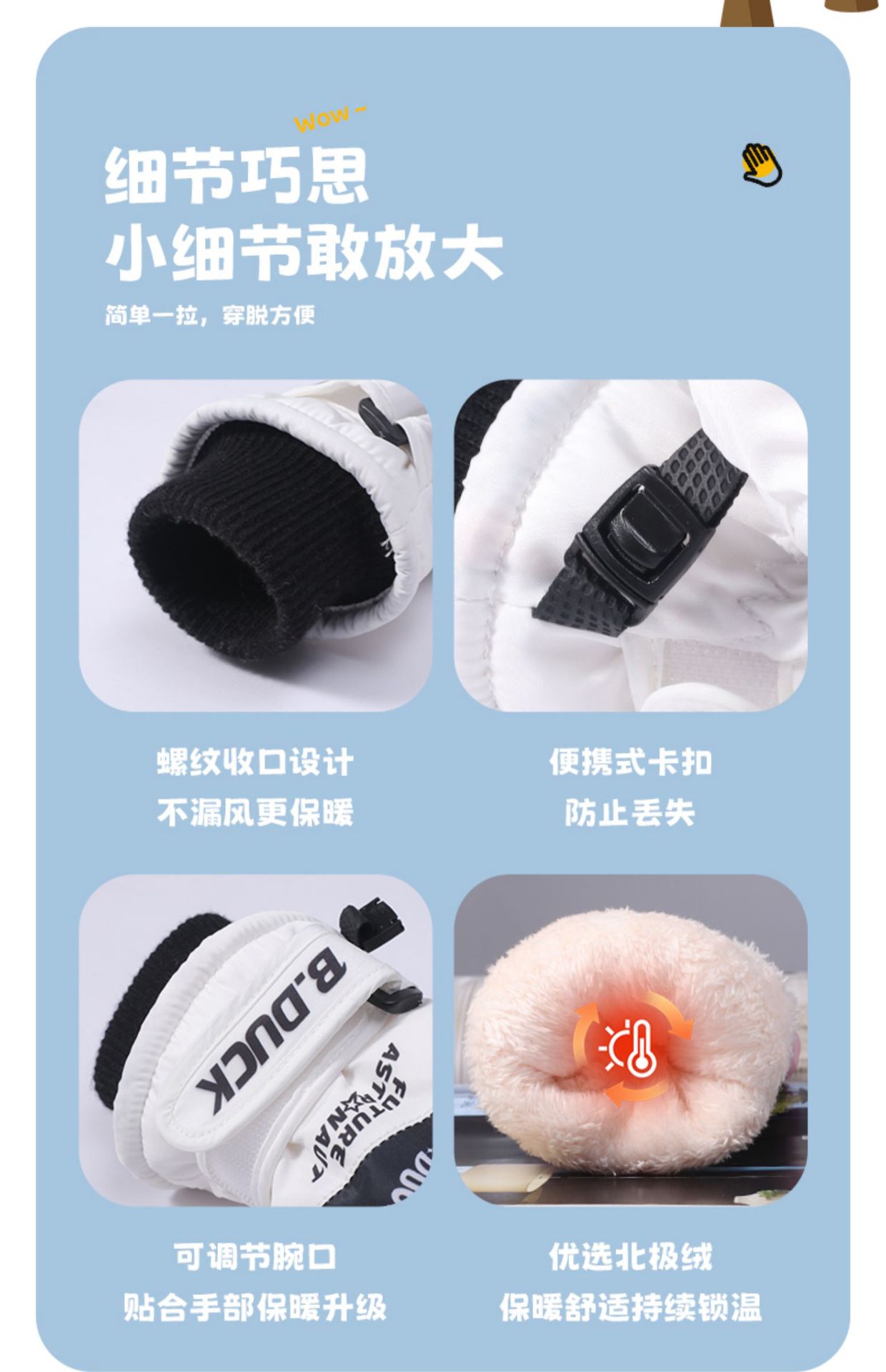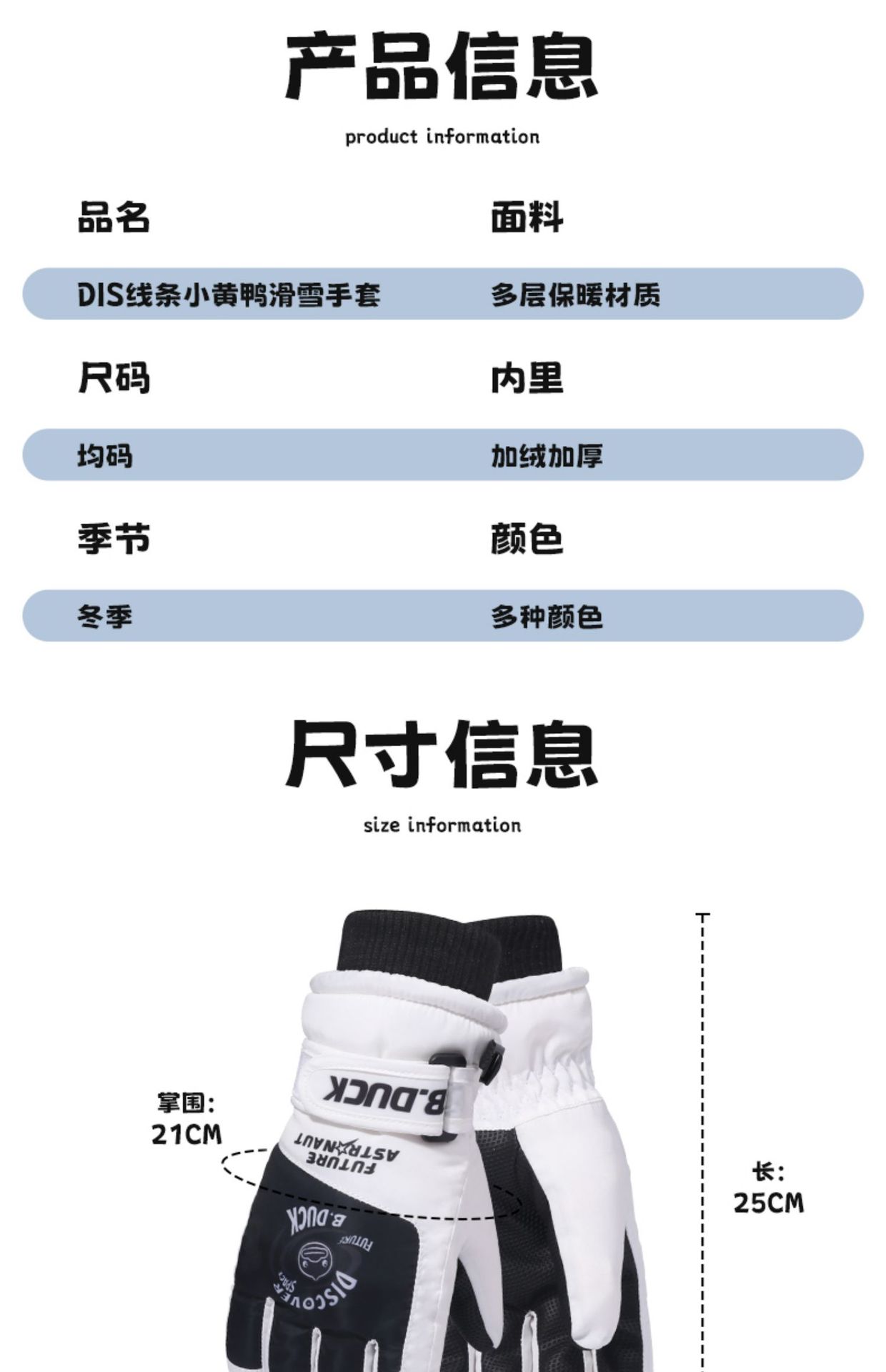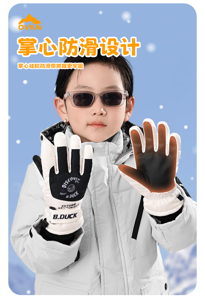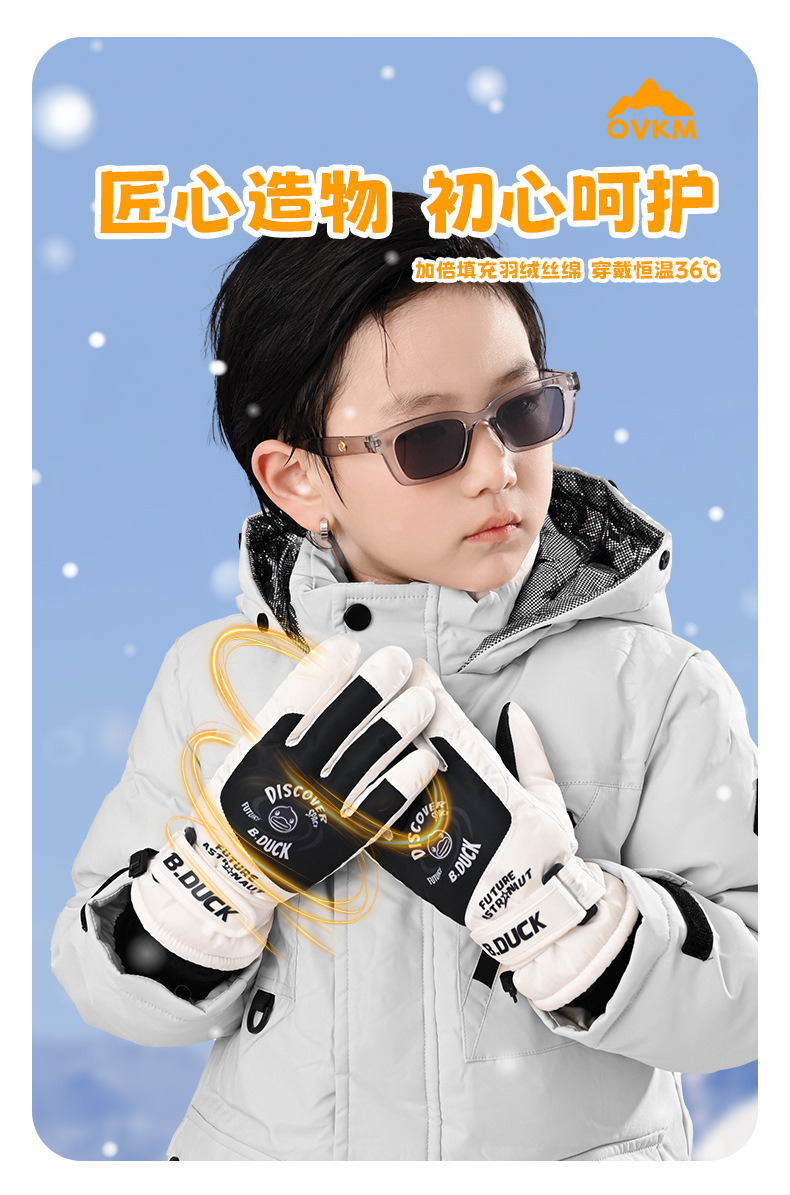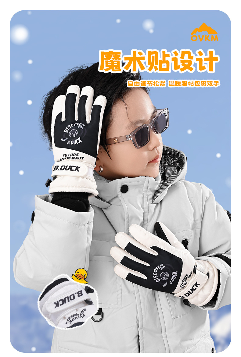 B. 오리 작은 노란 오리 어린이 장갑 소년 겨울 따뜻한 승마 장갑 소녀 방풍 방수 스키 장갑