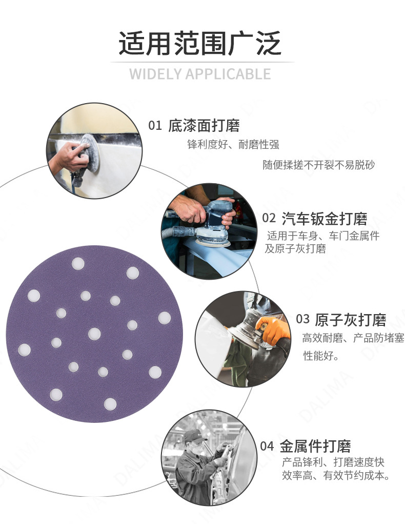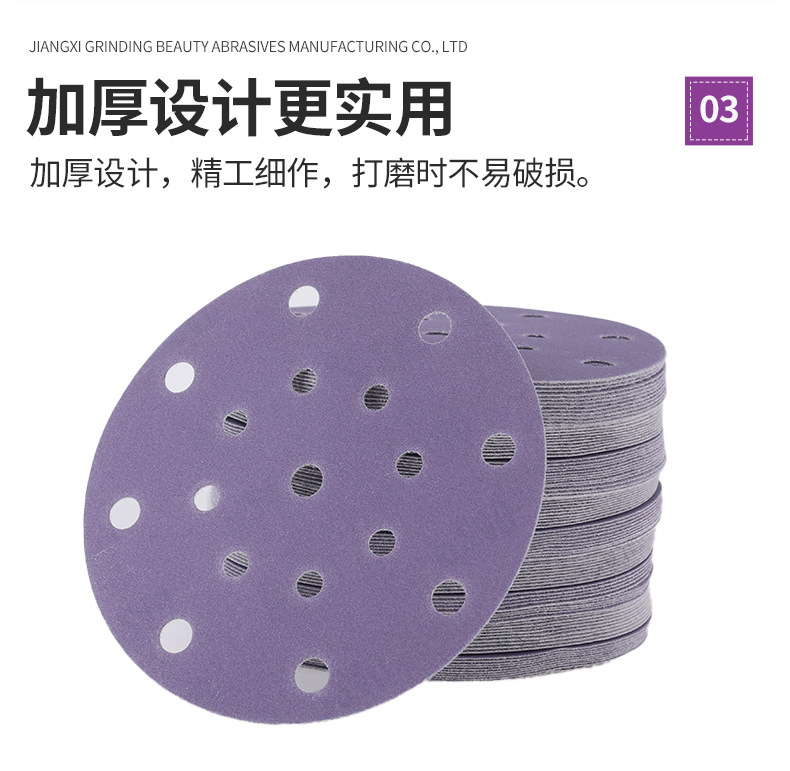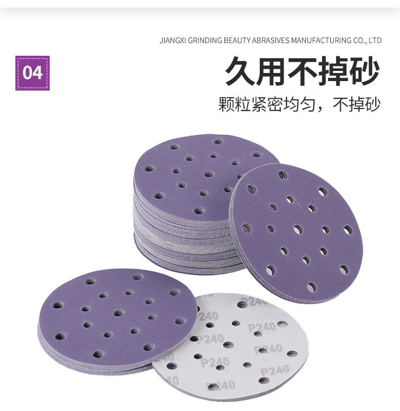 세라믹 보라색 사포 시트 6 인치 17 홀 자동차 퍼티 연마 사포 디스크 플로킹 세라믹 건식 연마 사포 도매