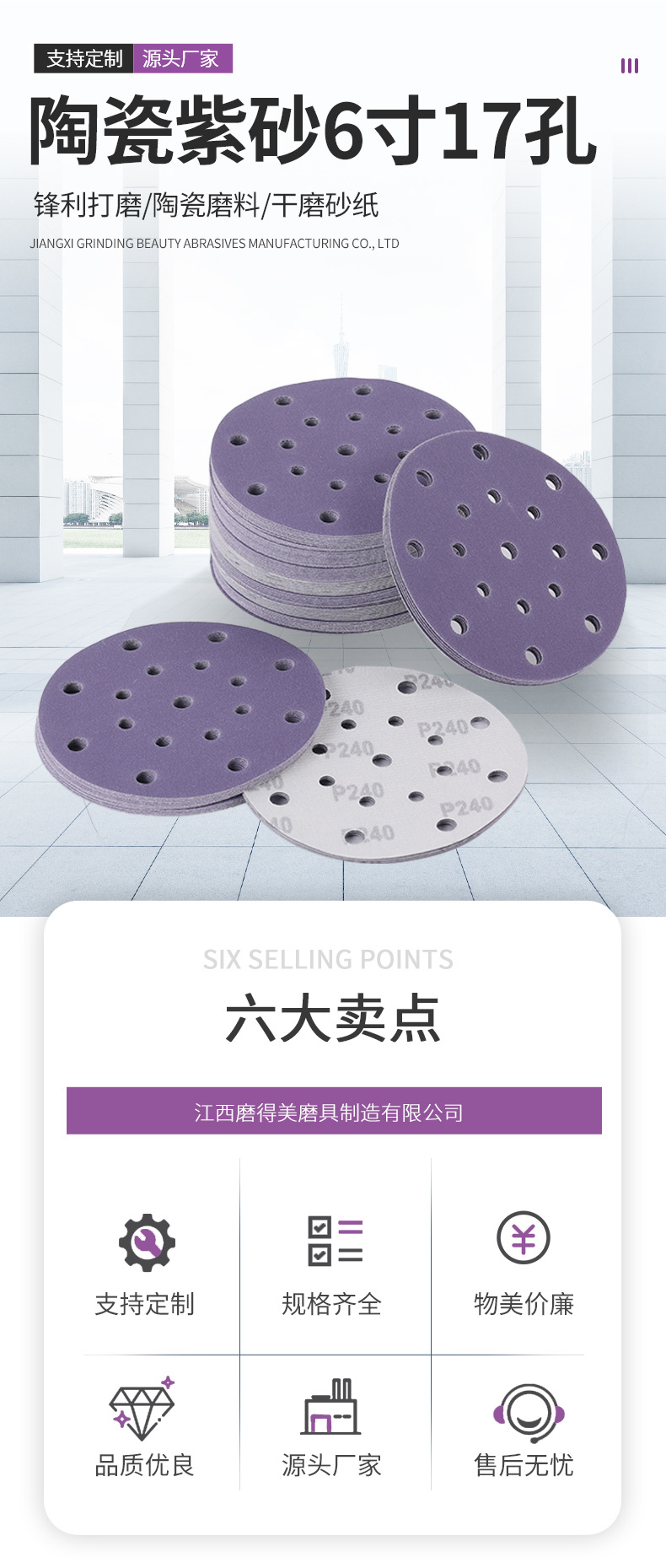 • 세라믹 보라색 모래 7.7inch 구멍 240#