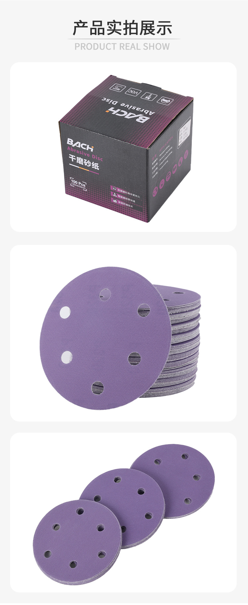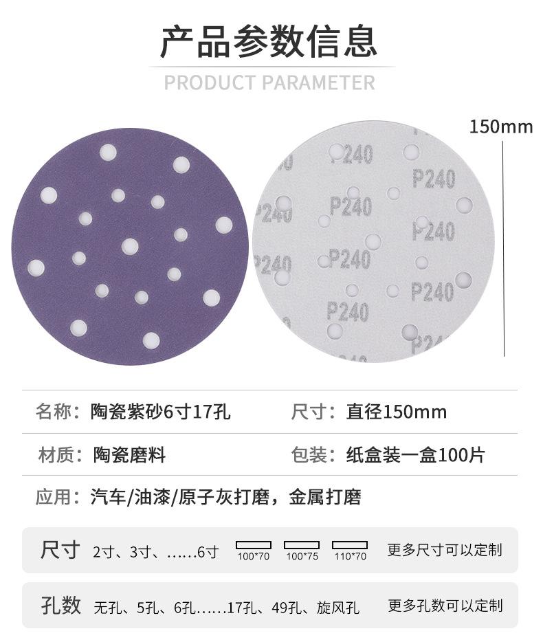 세라믹 보라색 사포 시트 6 인치 17 홀 자동차 퍼티 연마 사포 디스크 플로킹 세라믹 건식 연마 사포 도매스토어 가기