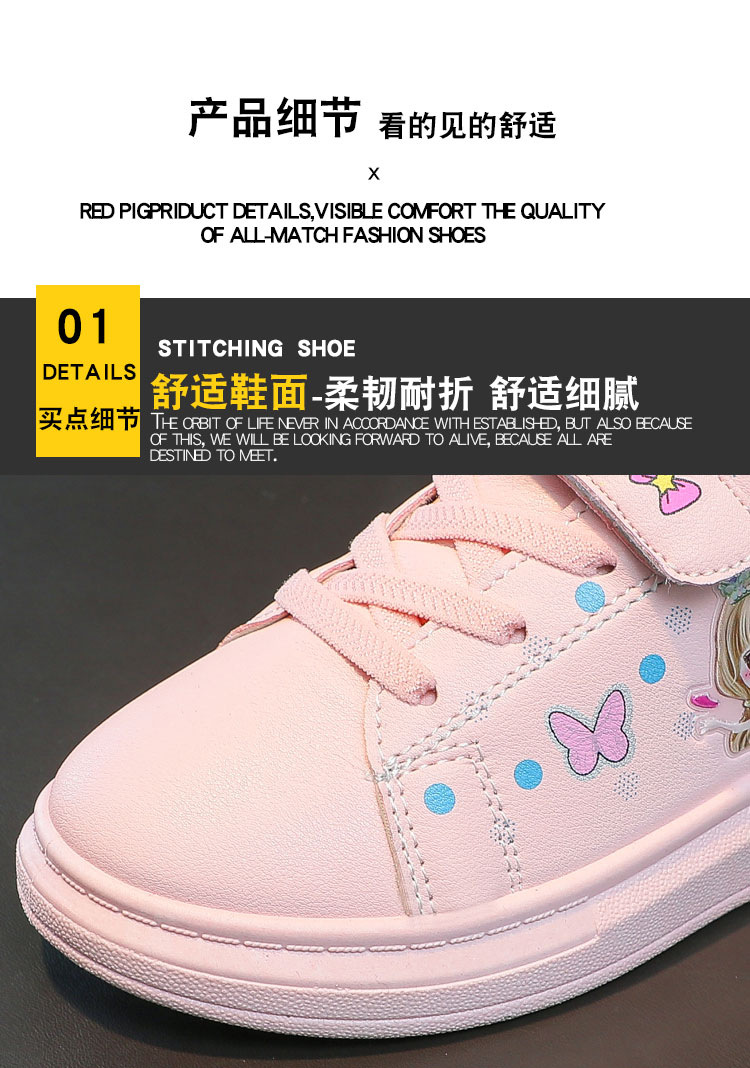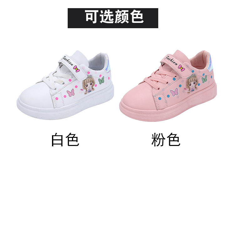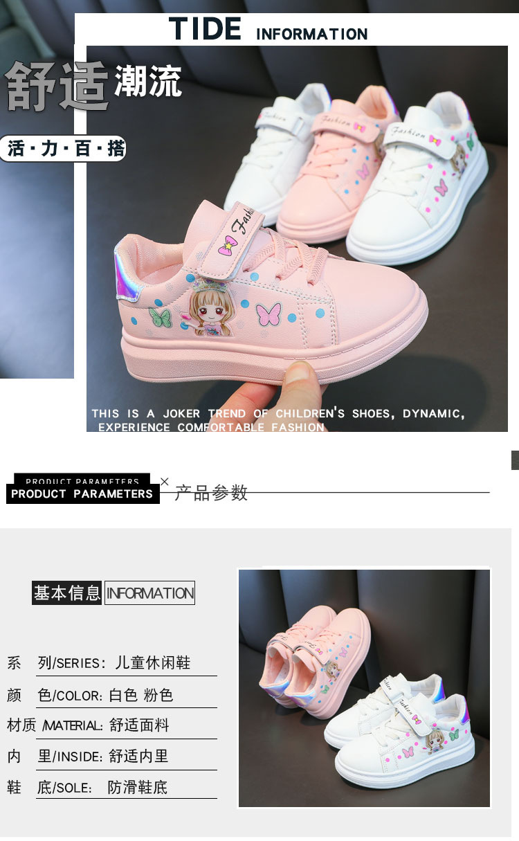 어린이 만화 흰색 신발 여성의 2024 새로운 봄과 가을 두꺼운 가죽 3-12 세 캐주얼 소녀 부드러운 밑창 보드 신발스토어 가기