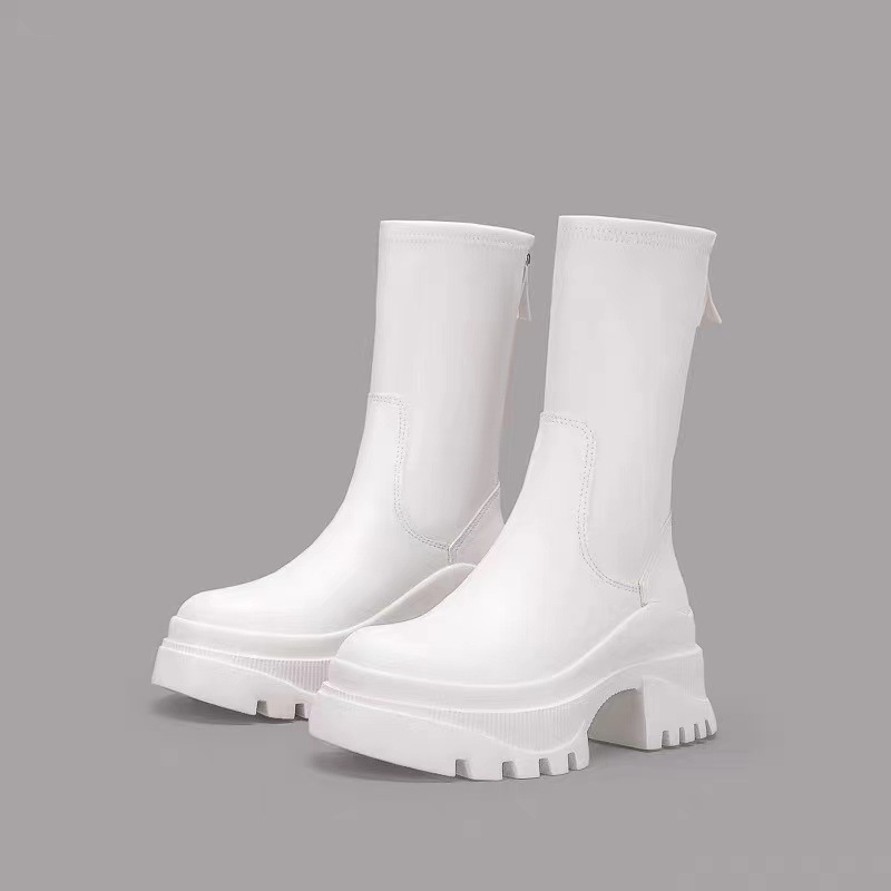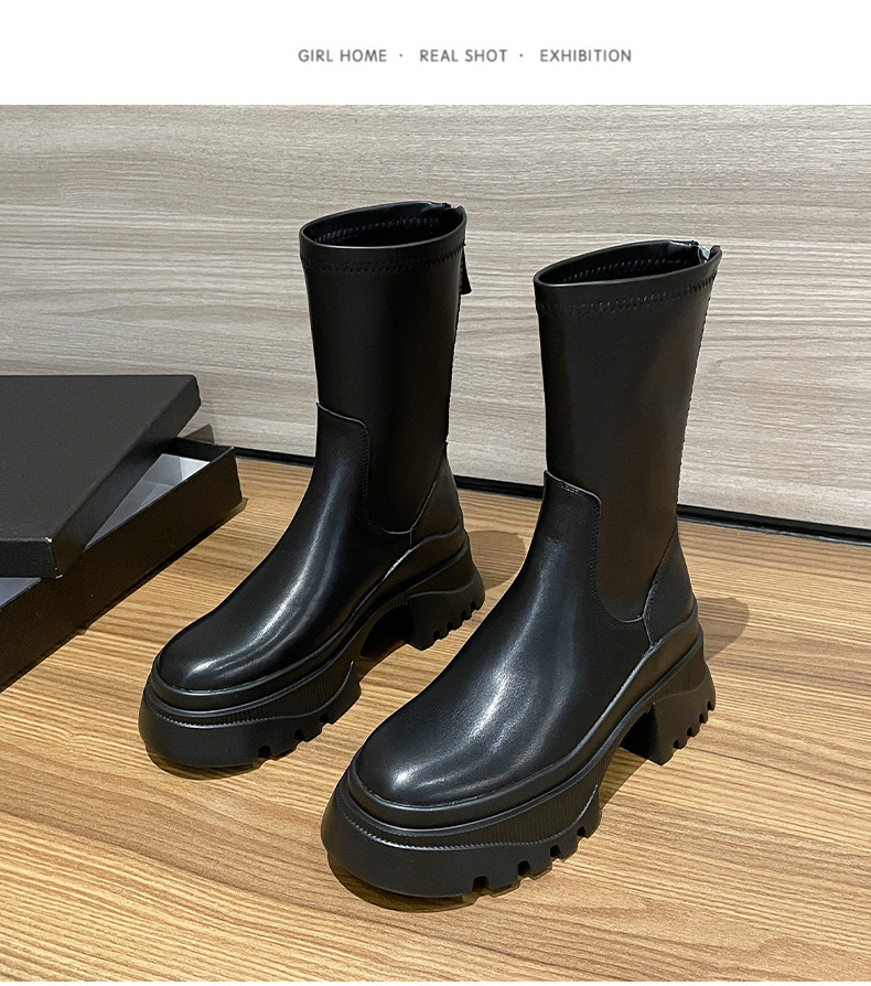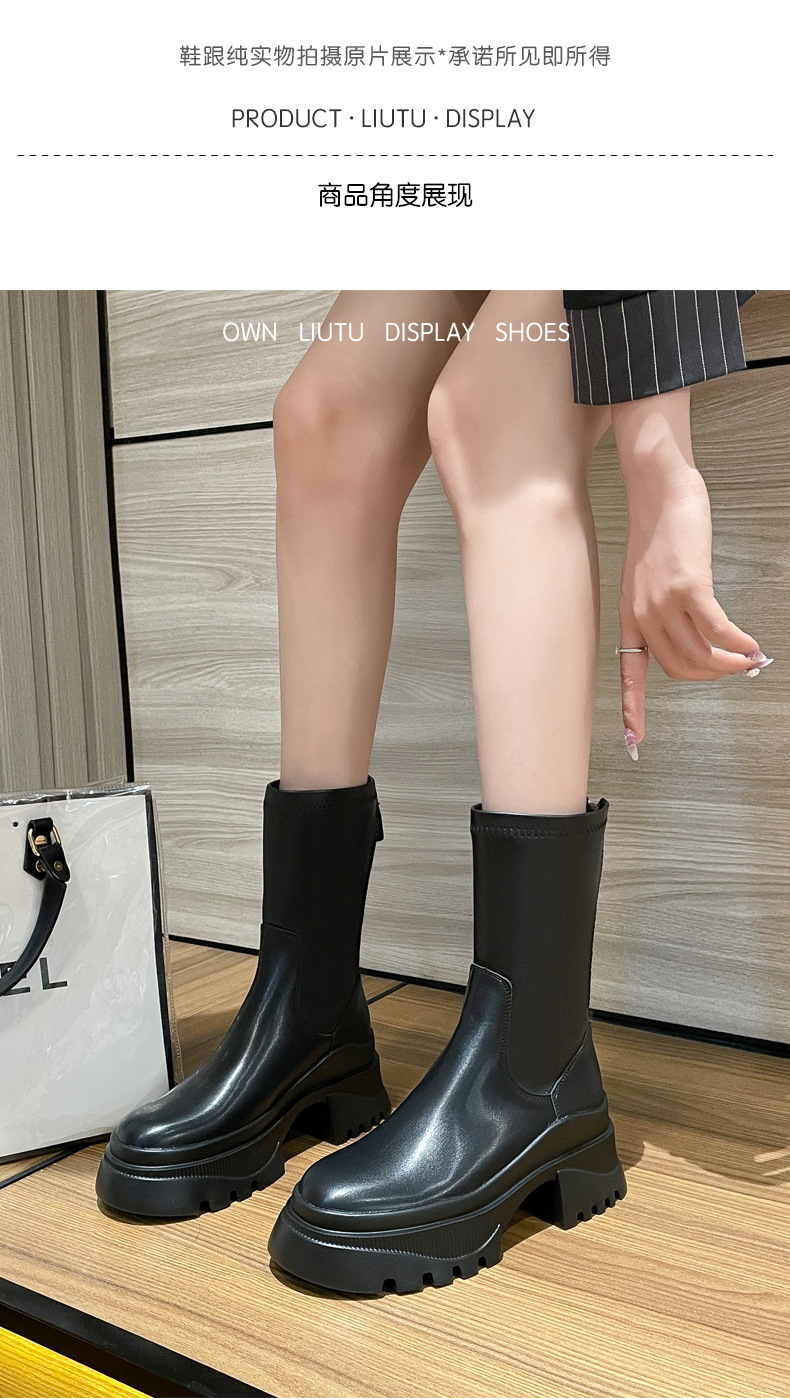 2024 새로운 정품 가죽 가을 및 겨울 부츠 중간 부츠 짧은 부츠 여성용 스트레치 얇은 부츠 작은 두꺼운 바닥 마틴 부츠스토어 가기