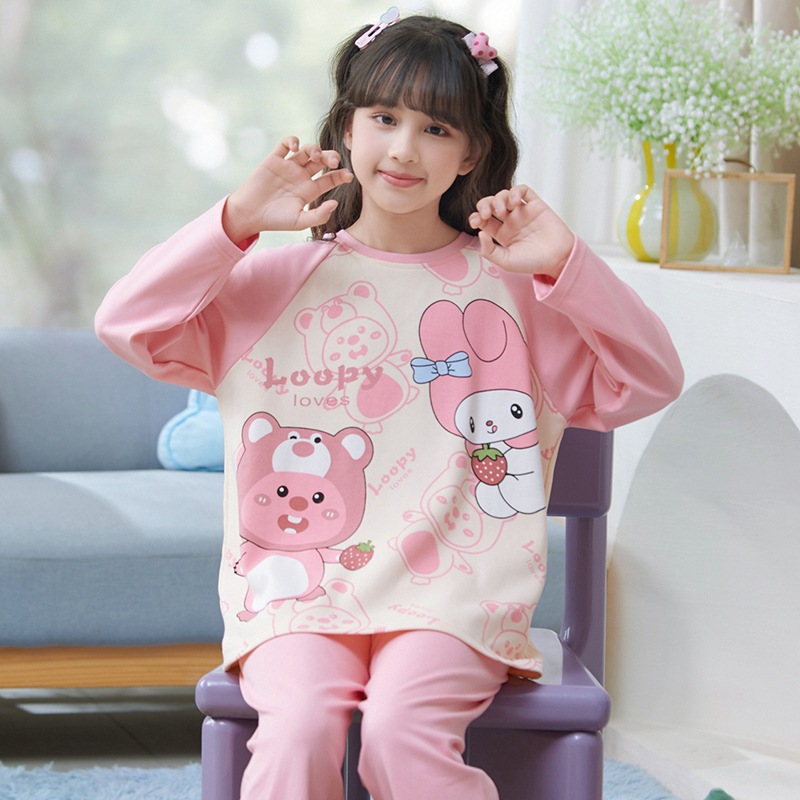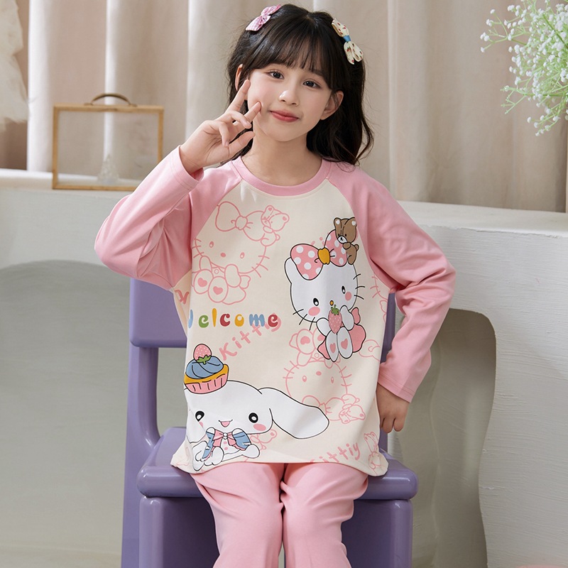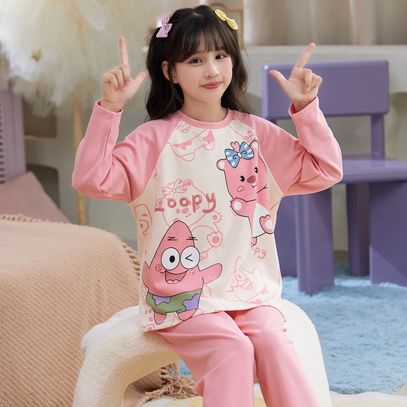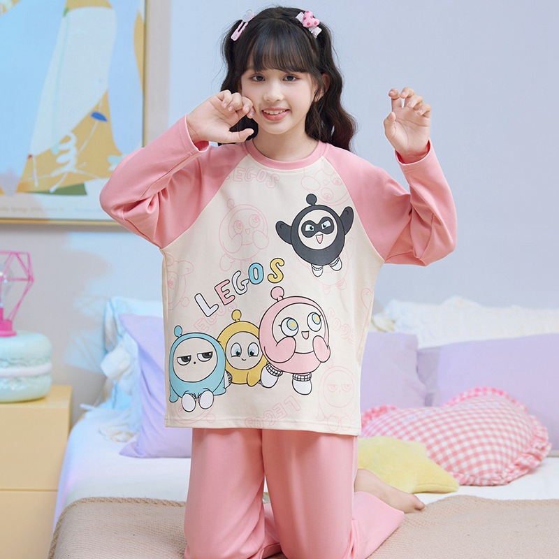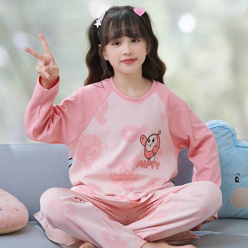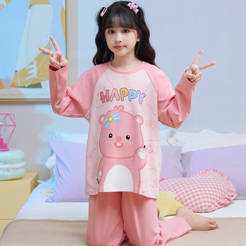 2025 새로운 어린이 잠옷 소녀 봄과 가을 긴 소매 얇은 면화 소녀 어린이 집 옷 귀여운 세트