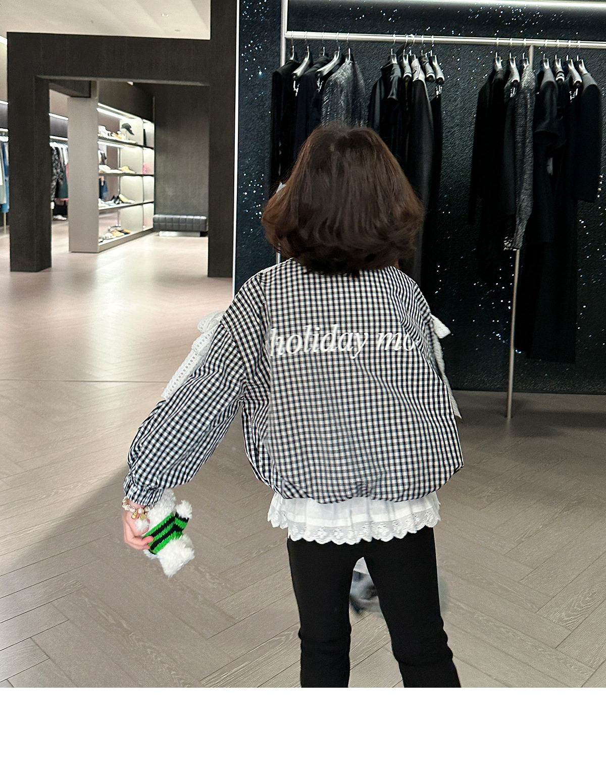【재고 있음】2025 가을 신상 체크무늬 재킷, 중대형 여아용 스탠드 칼라 상의, 세련되고 넓은 짧은 스타일스토어 가기