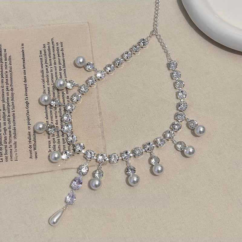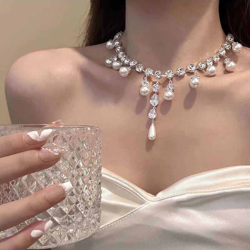 워터 드롭 지르콘 다이아몬드 라운드 진주 목걸이 프랑스 하이 엔드 정제 쇄골 체인 라이트 럭셔리 원피스 목걸이