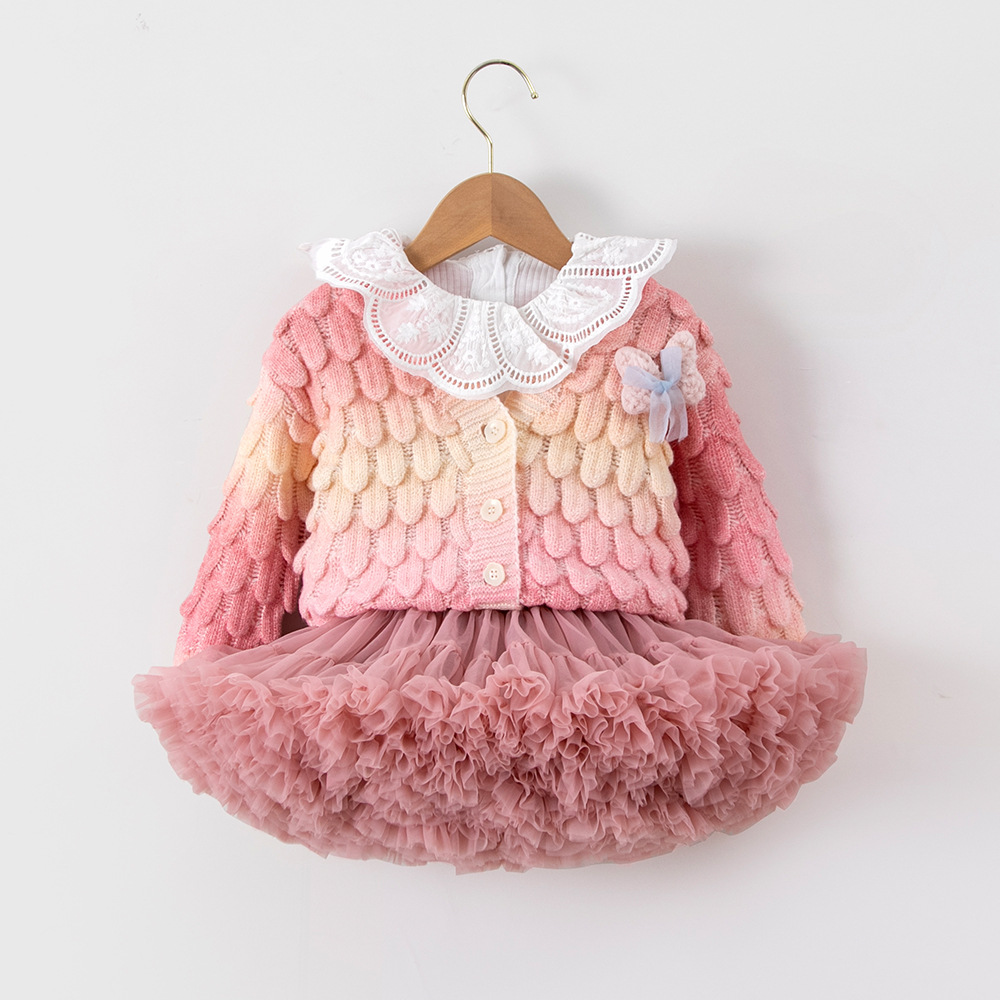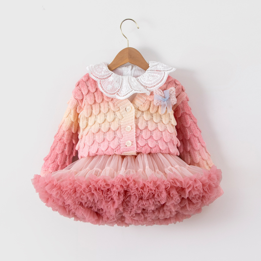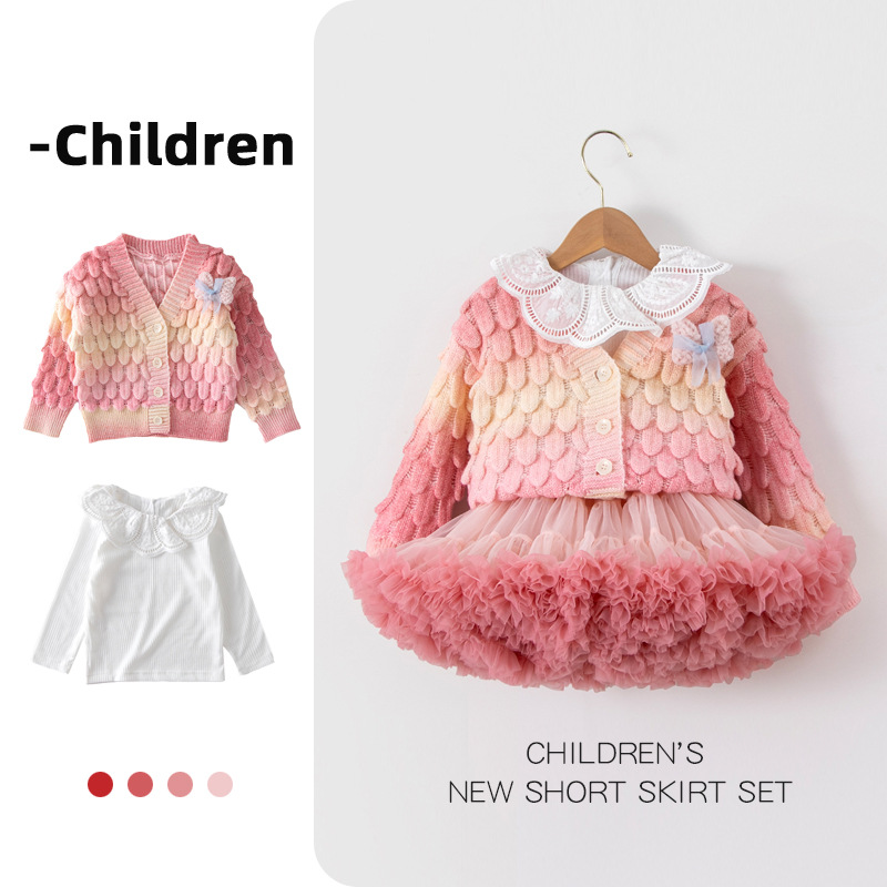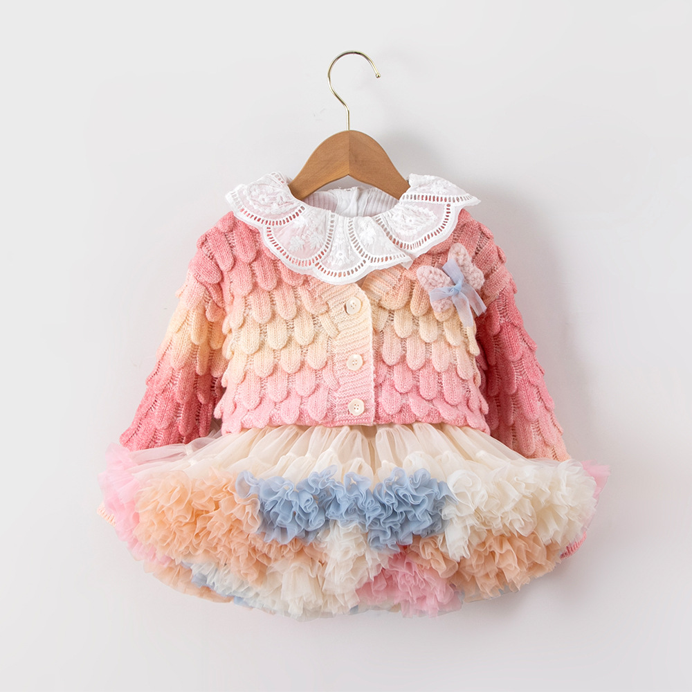 여아 스웨터 세트 2026 가을 신상 한국 스타일 패셔너블 컬러풀 가디건 아기 튜튜 스커트 투피스 세트