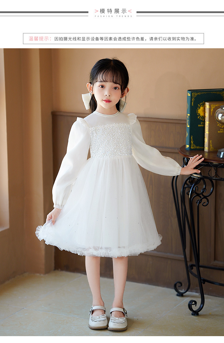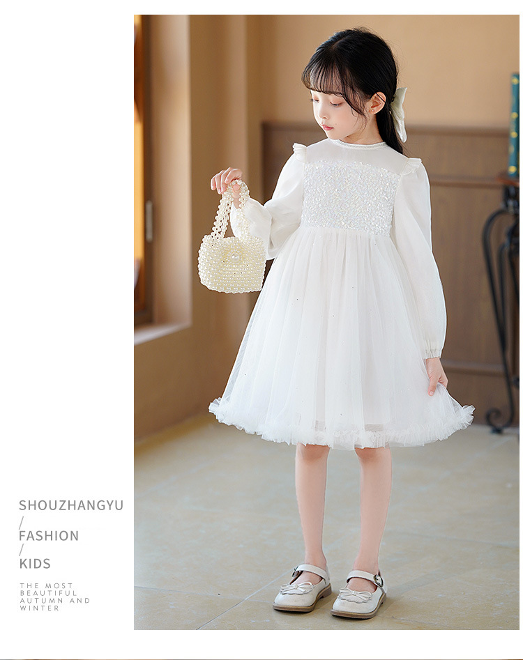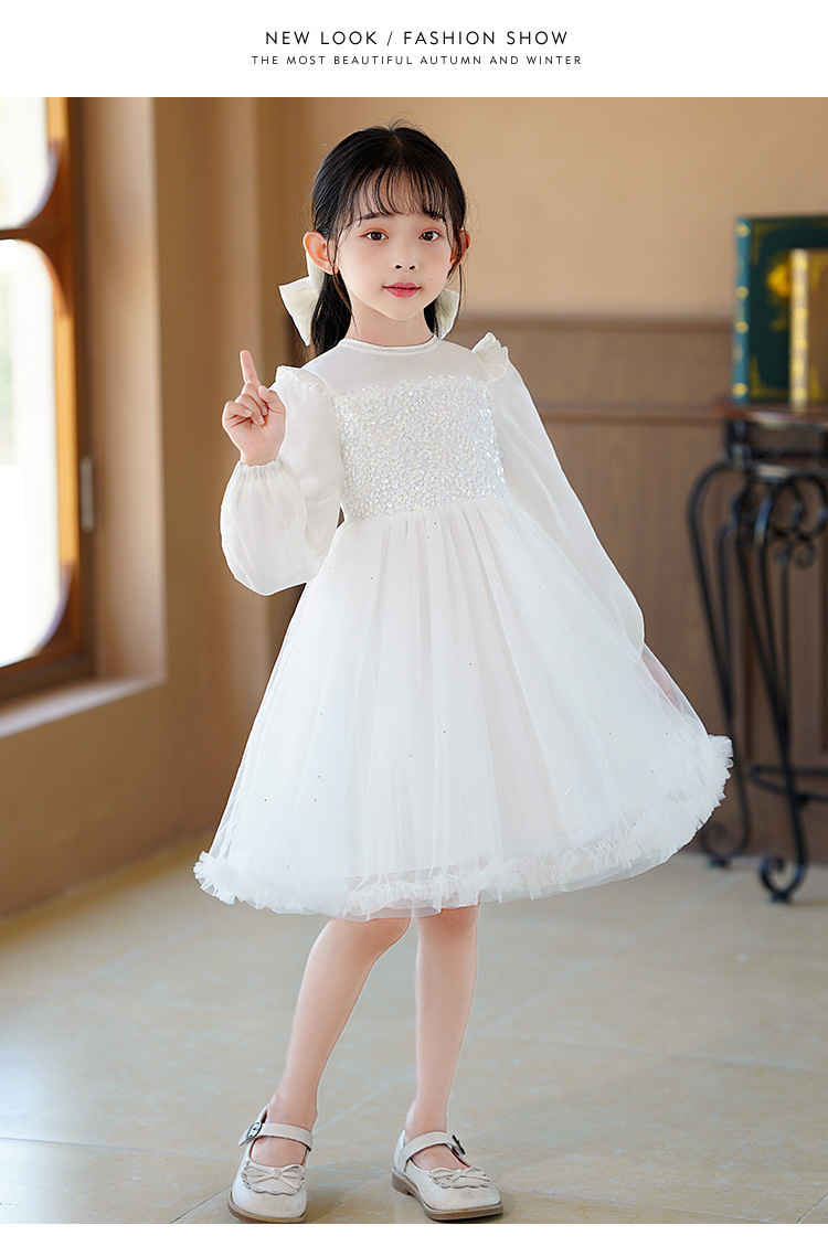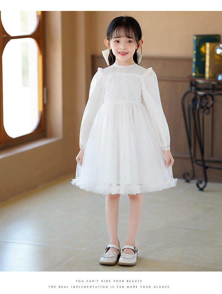 흰 소녀의 원피스 긴 소매 가을 2024 소녀 유치원 Xianmei 공주 조각 생일 원피스스토어 가기