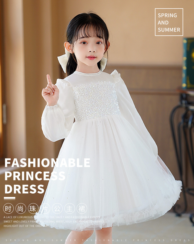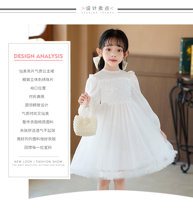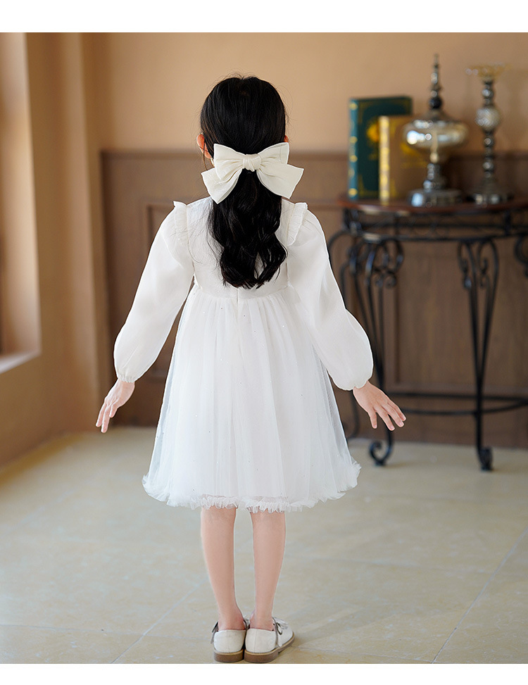 흰 소녀의 원피스 긴 소매 가을 2024 소녀 유치원 Xianmei 공주 조각 생일 원피스