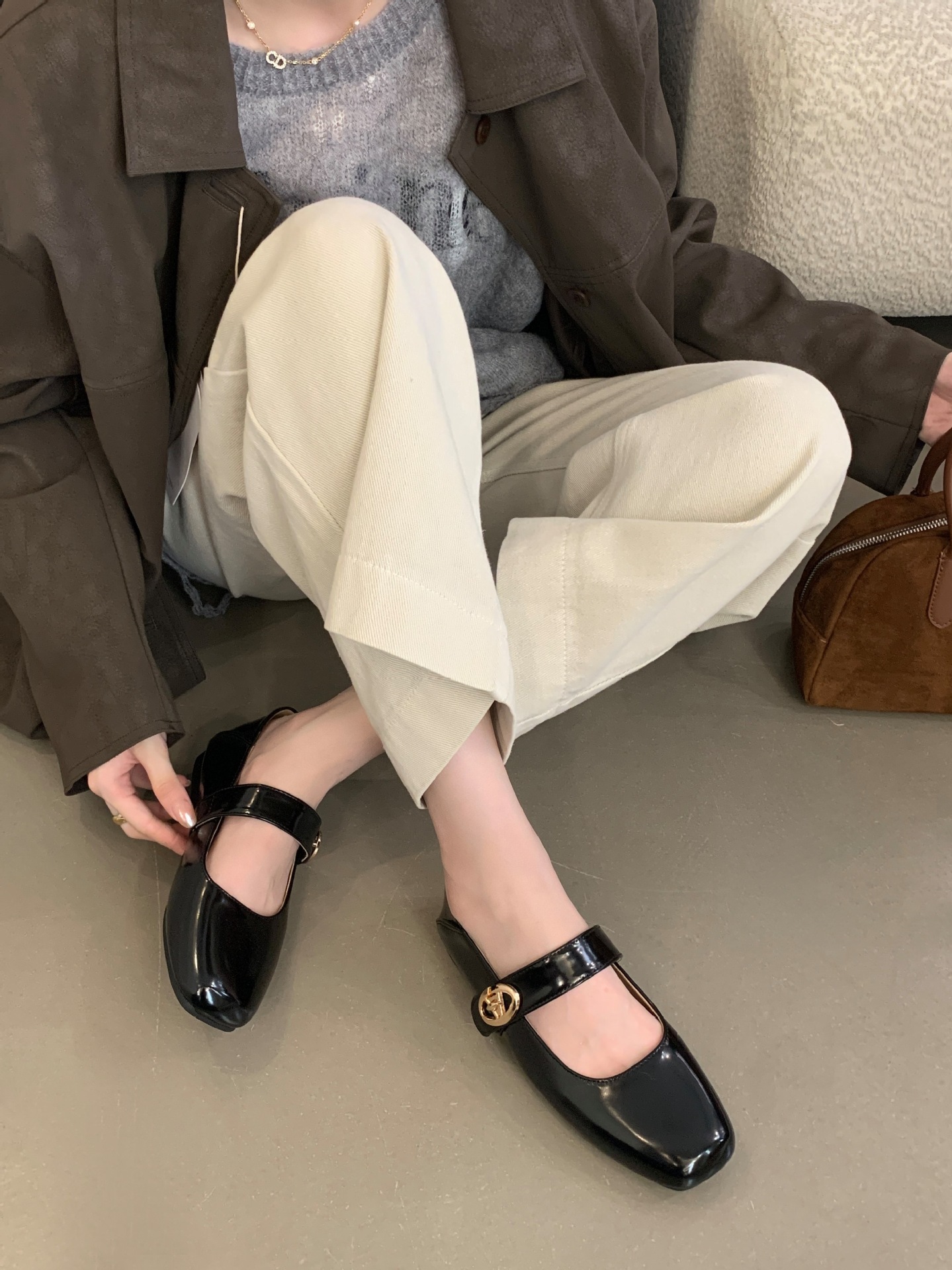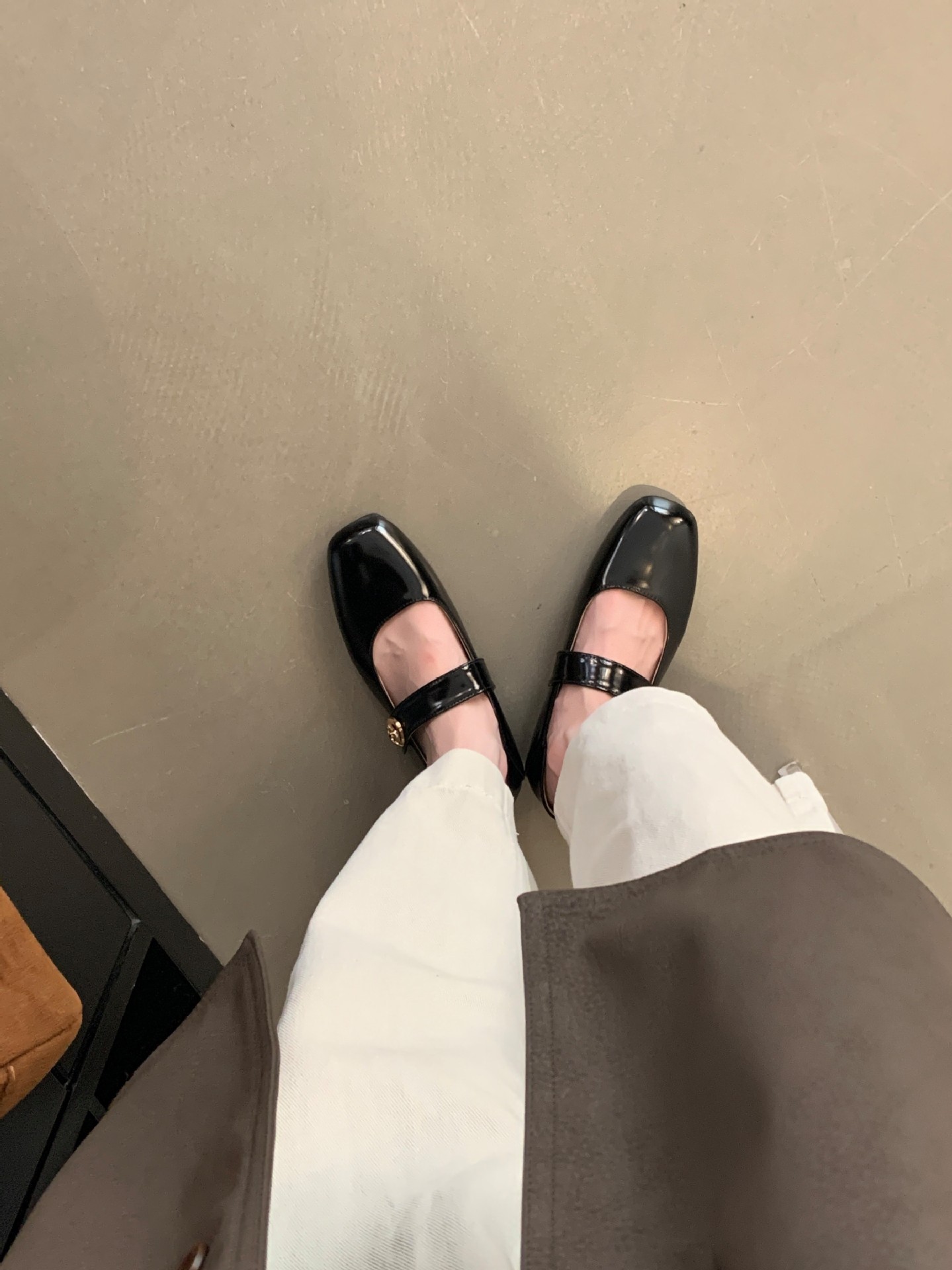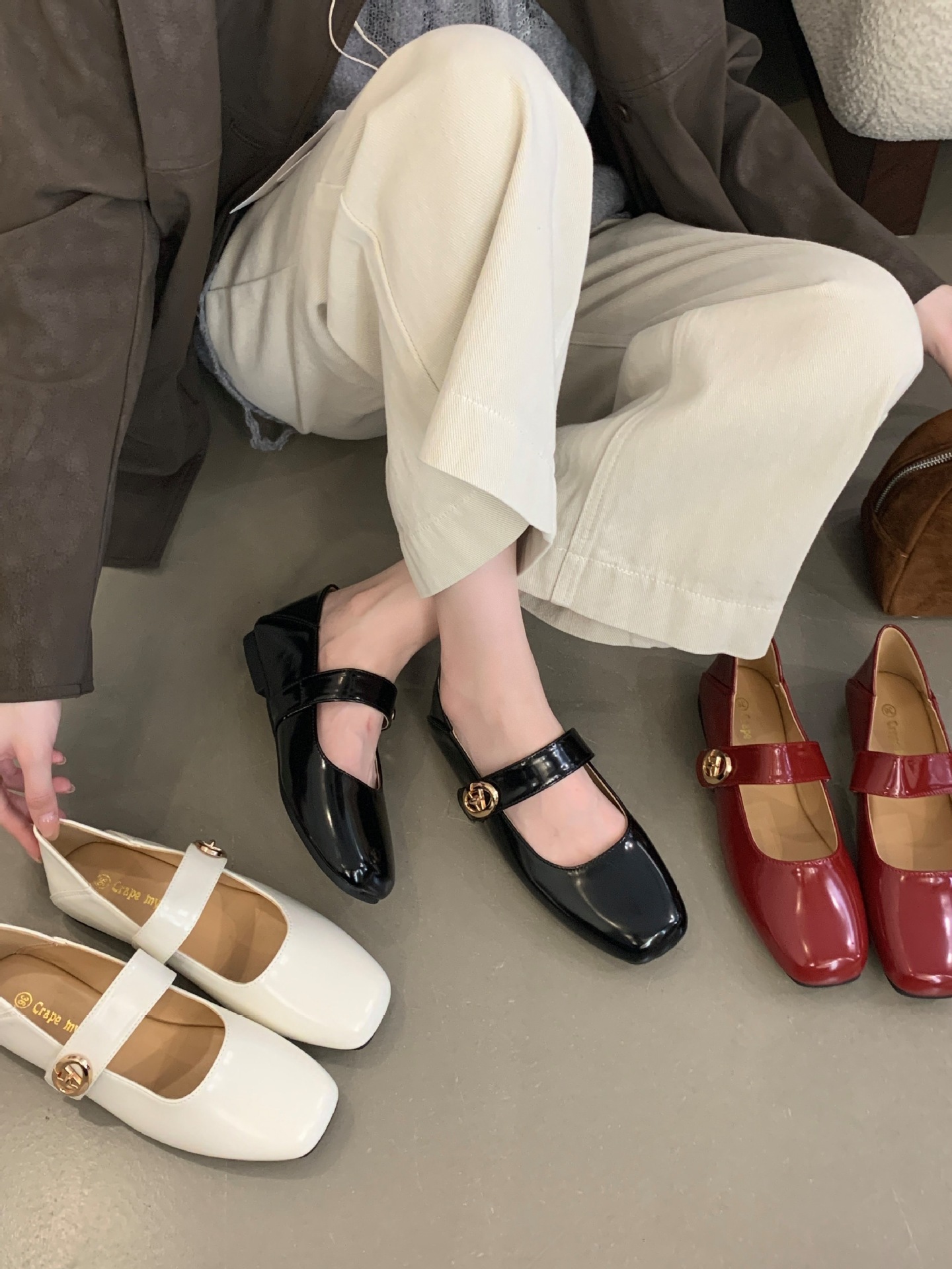 포도 엄마 가을 새로운 프랑스 스타일 레트로 스퀘어 헤드 벨크로 메리 제인 얕은 입 플랫 슈즈와 함께 한 캐릭터 여성