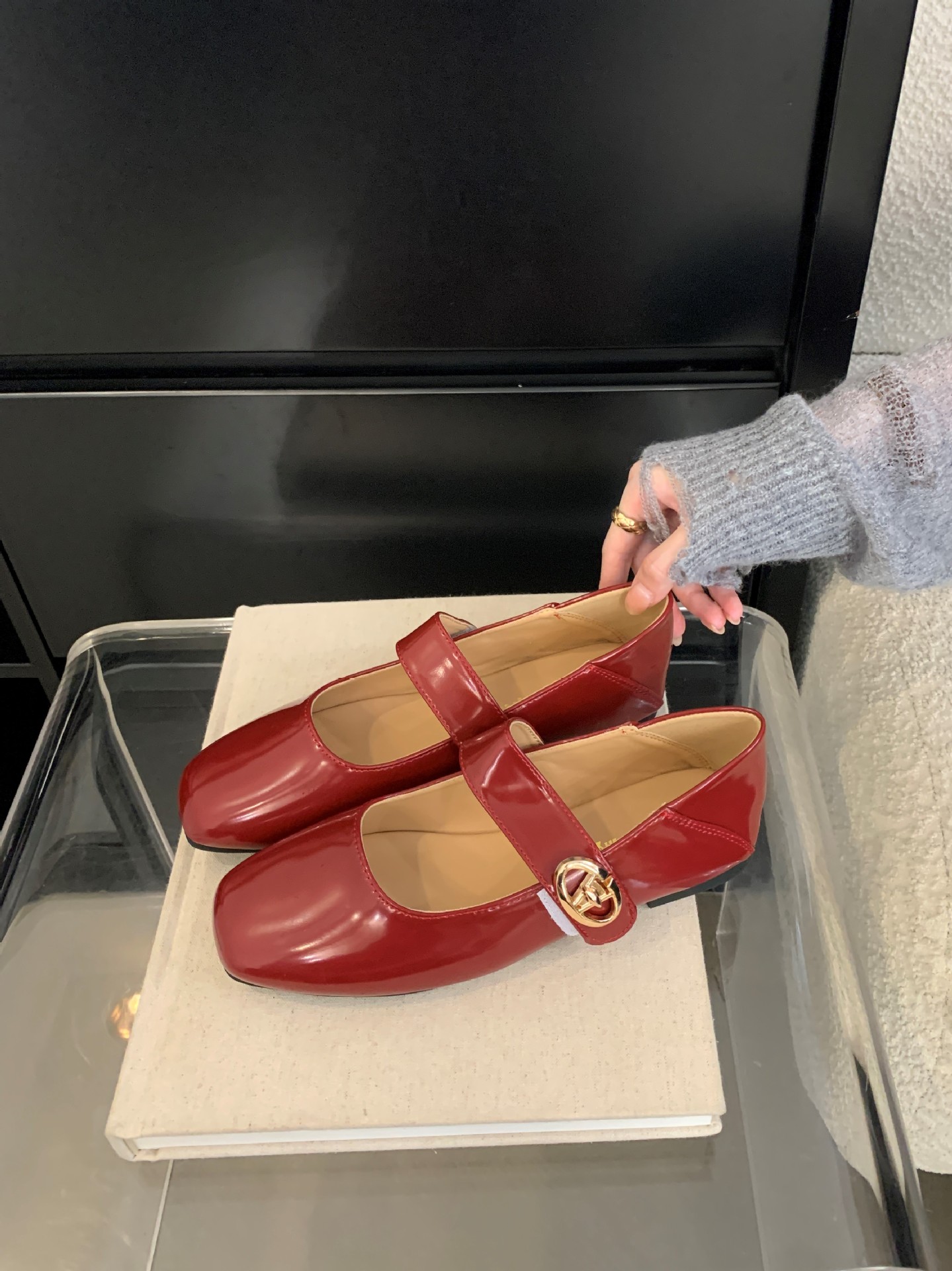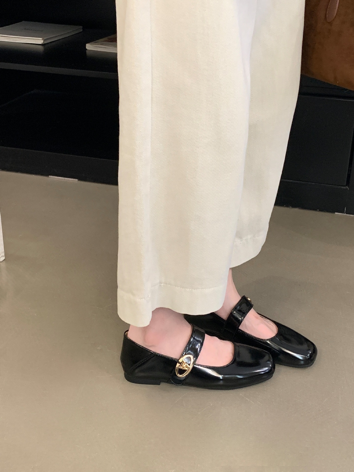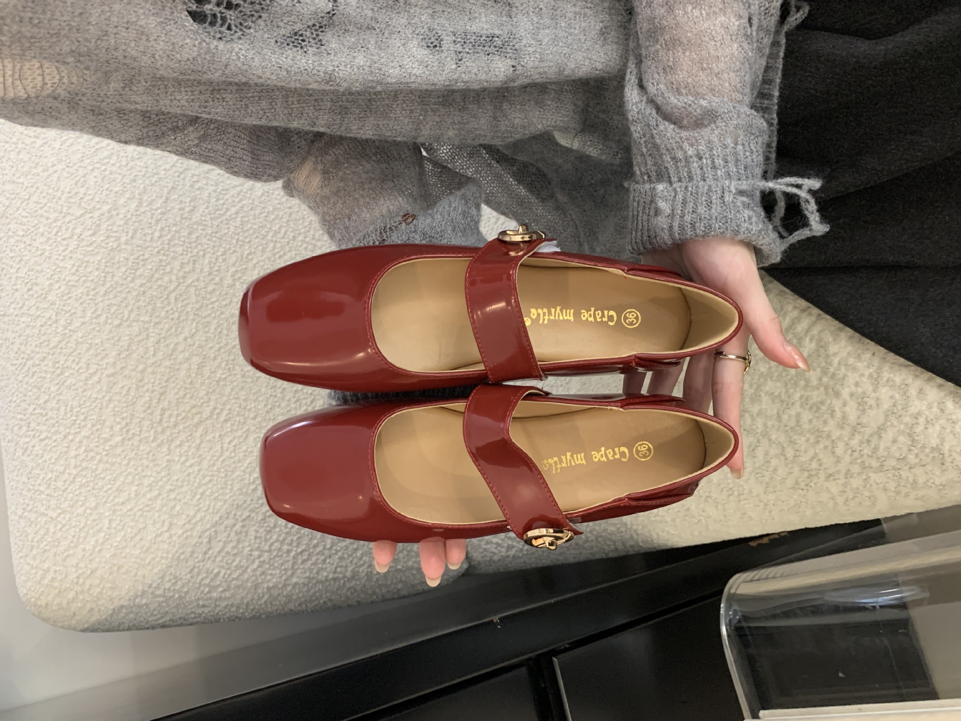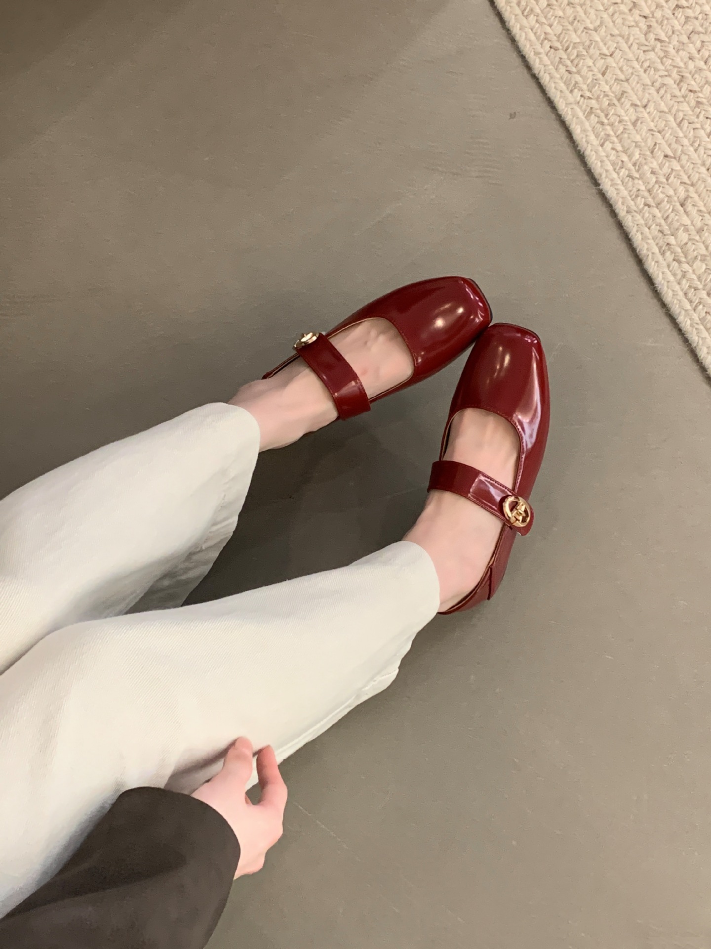 포도 엄마 가을 새로운 프랑스 스타일 레트로 스퀘어 헤드 벨크로 메리 제인 얕은 입 플랫 슈즈와 함께 한 캐릭터 여성