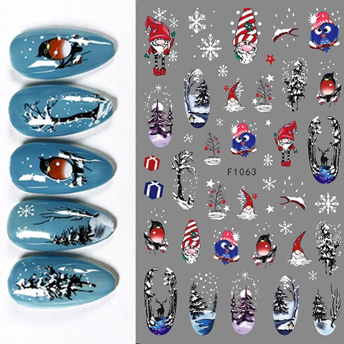 2024 네일 아트 새로운 접착 스티커 크리스마스 눈송이 F1059-1063 펭귄 귀여운 새끼 고양이 독립 포장스토어 가기