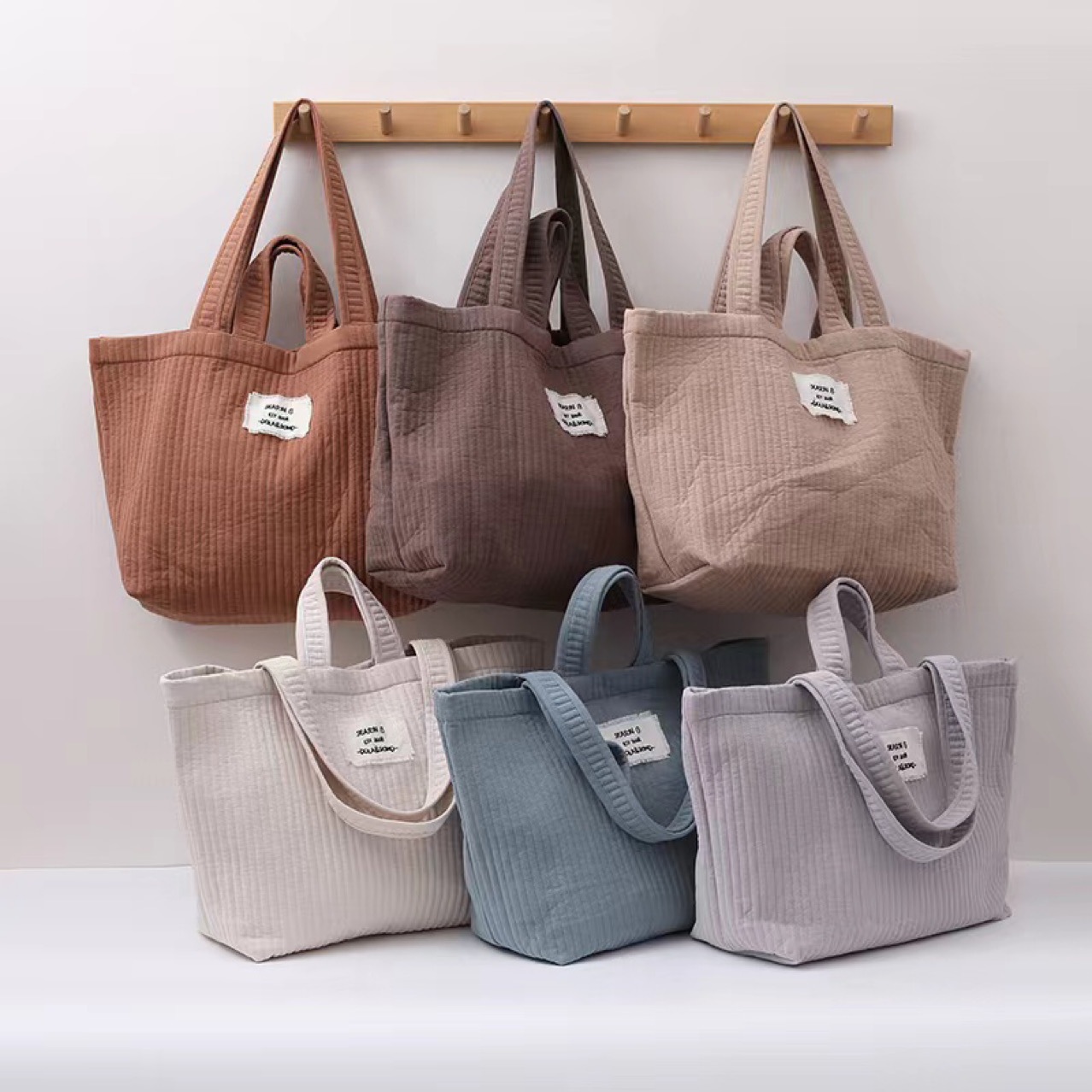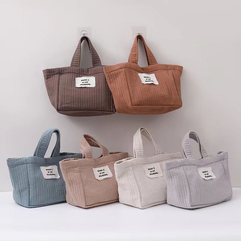 한국 간단한 새로운 핸드백 원래 캔버스 작은 가방 코듀로이 패션 올 매치 쇼핑 명암 컬러 핸드 백스토어 가기