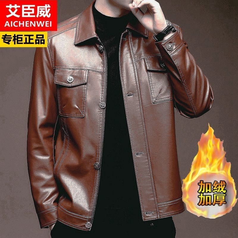 Eichenwei 가죽 남성 오토바이 가죽 자켓 증오 봄과 가을 얇은 가죽 자켓 옷깃 중년 남성 자켓스토어 가기