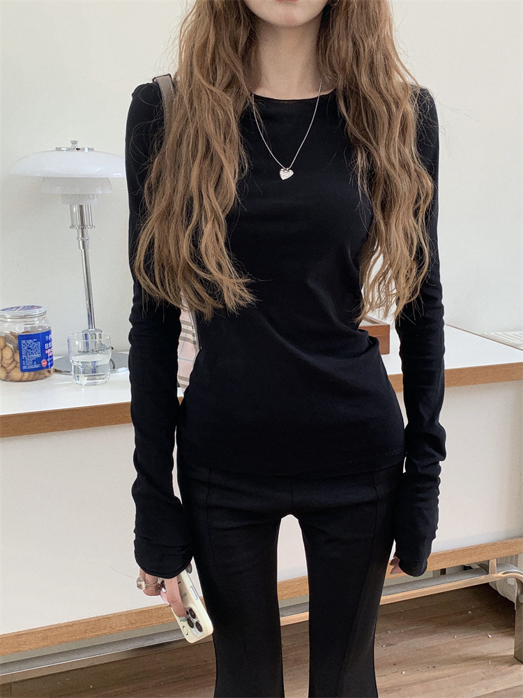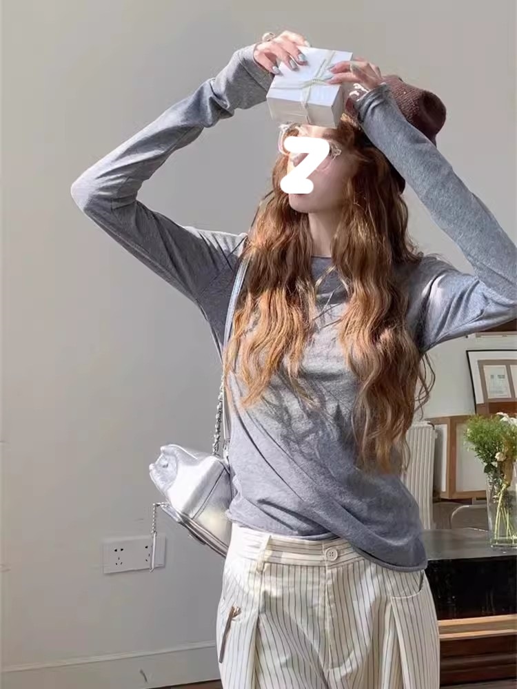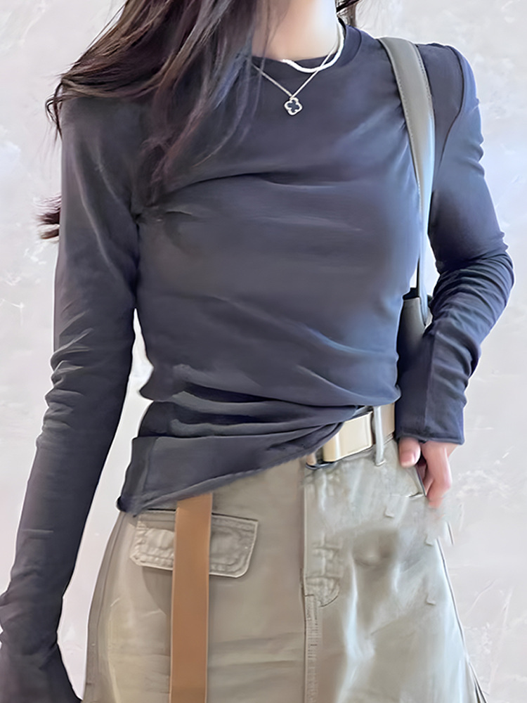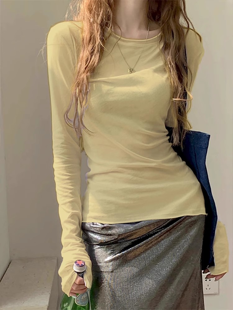 여성용 화이트 바텀 셔츠, 얇고 살짝 비치는 긴팔 티셔츠, 자외선 차단 블라우스, 봄 2025 슬림핏 심플 탑스토어 가기