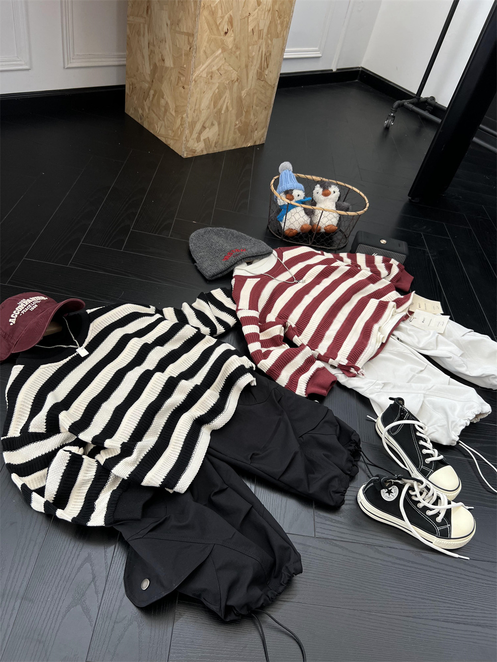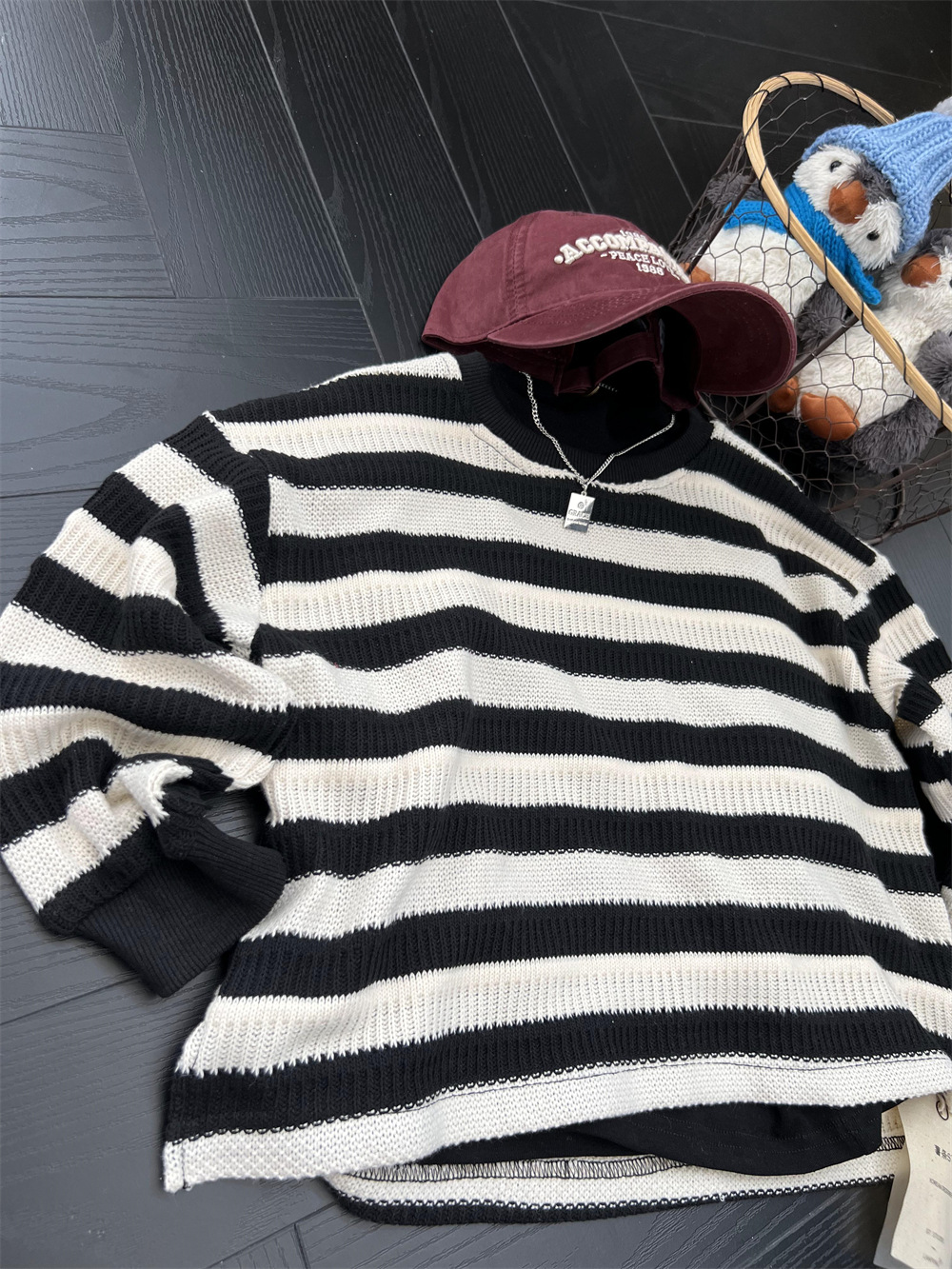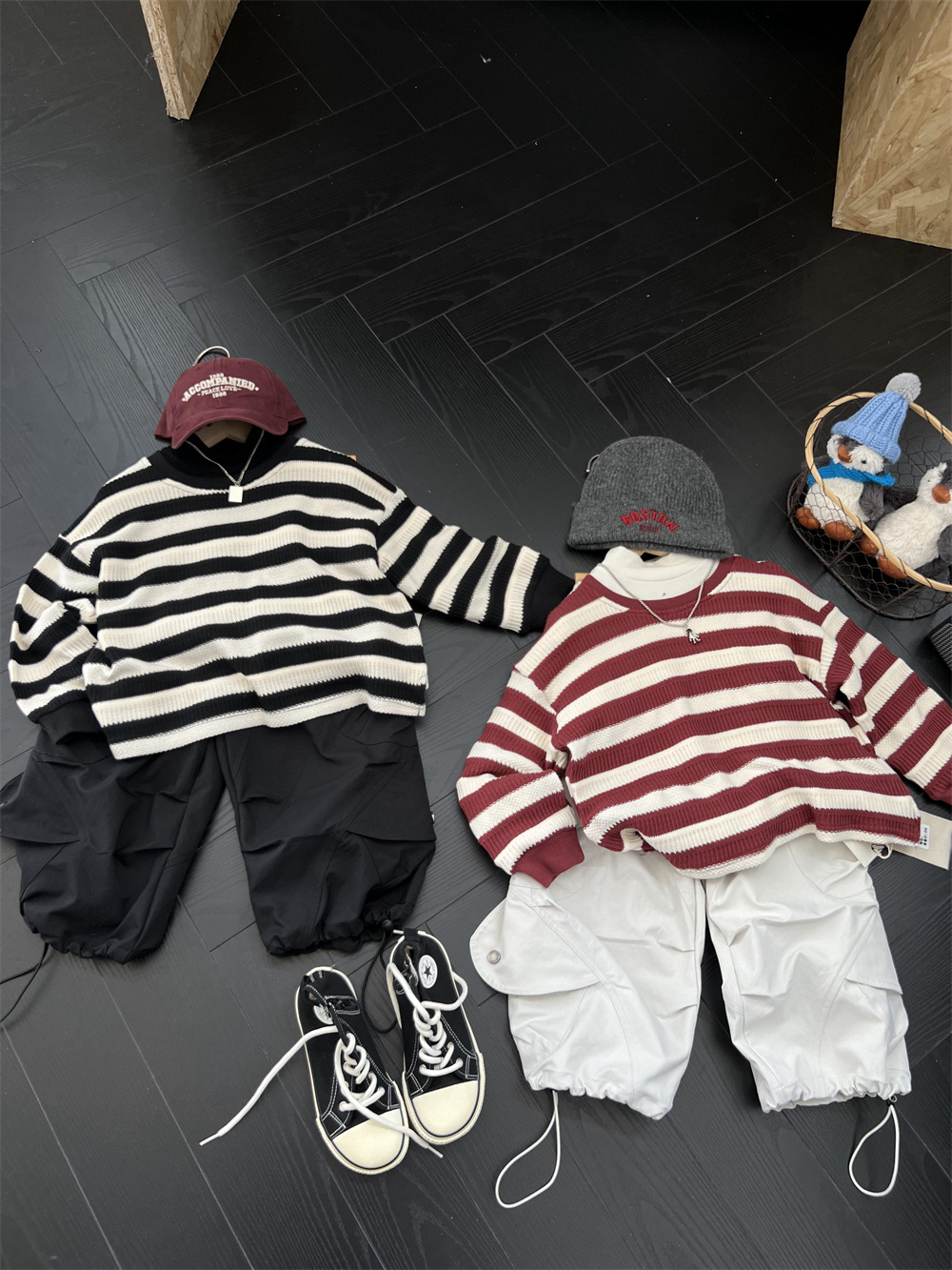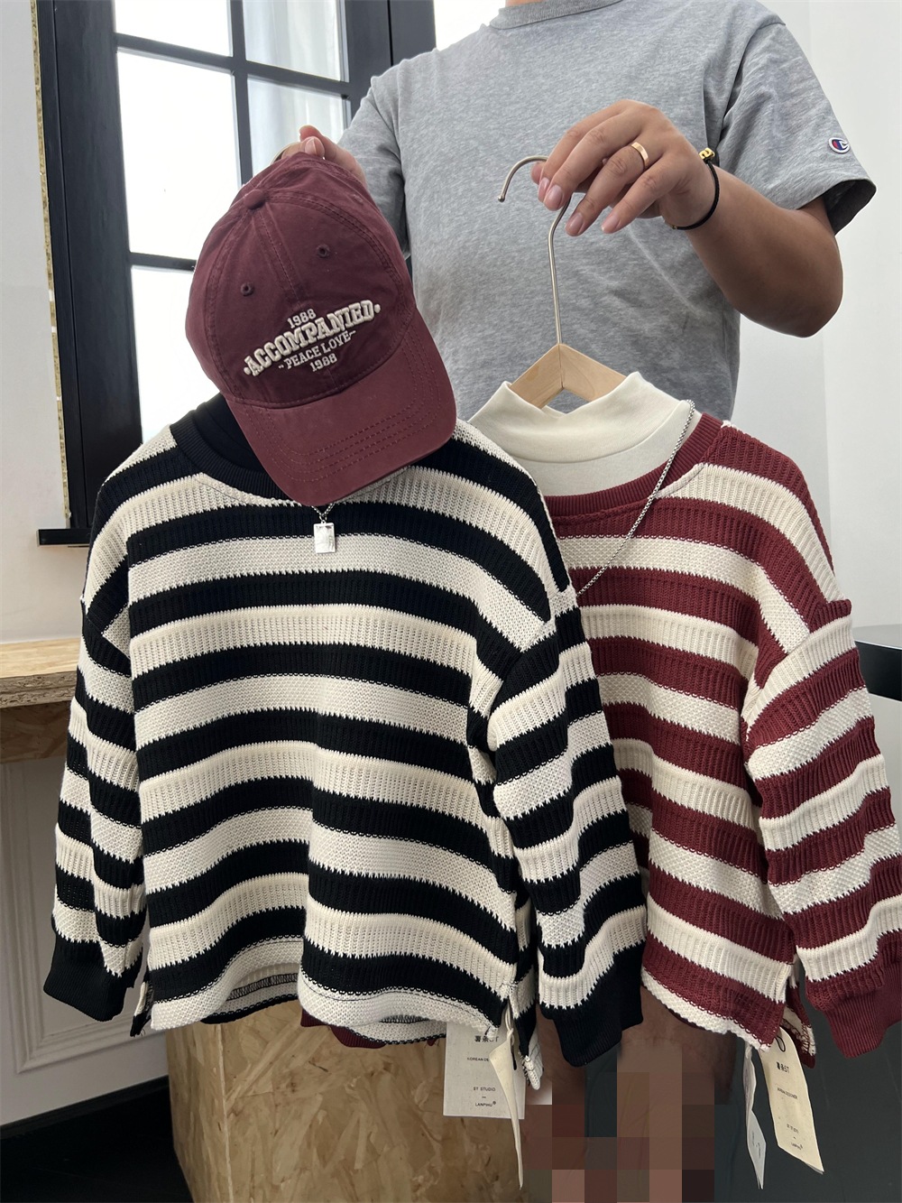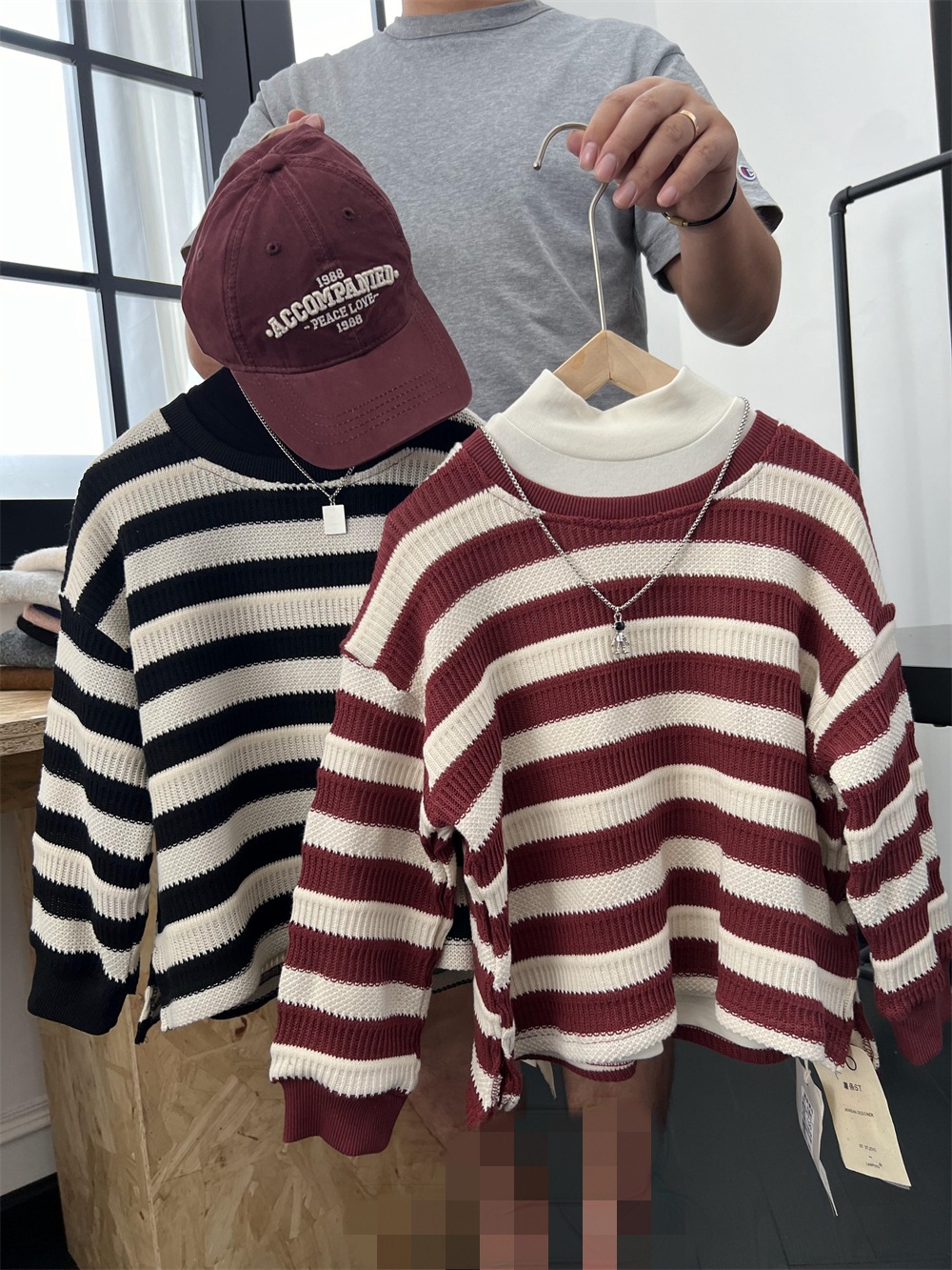 가을 어린이 미국식 게으른 줄무늬 니트 스웨터 소년과 소녀의 휴식 캐주얼 느슨한 힙합 울 탑스토어 가기