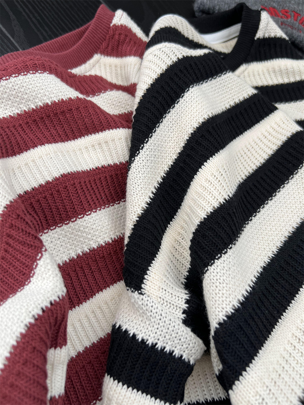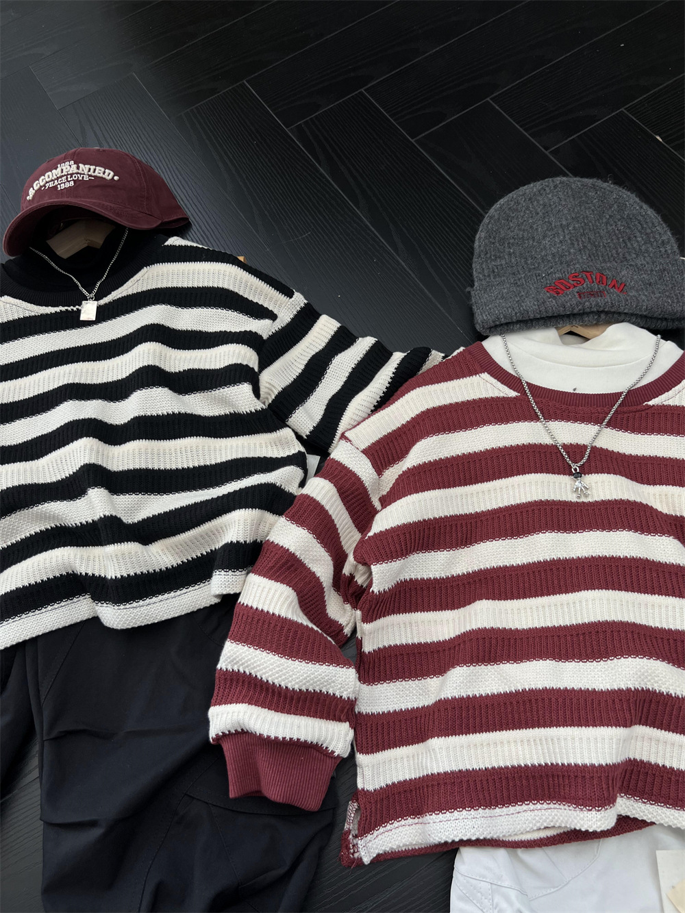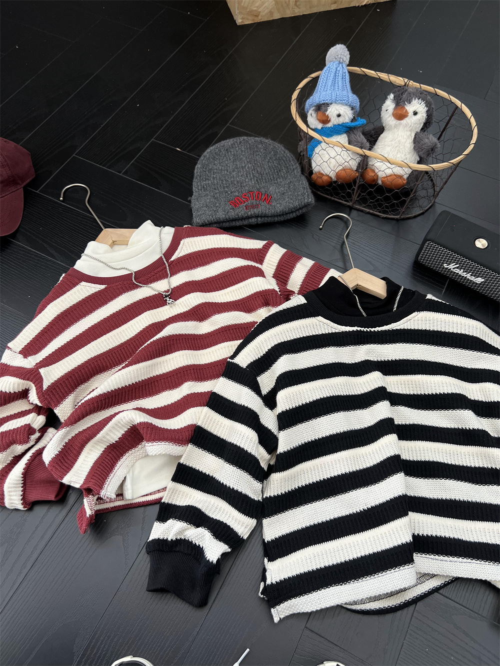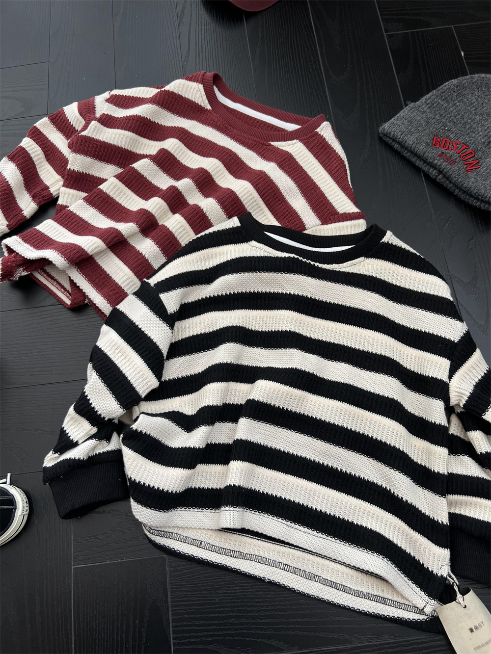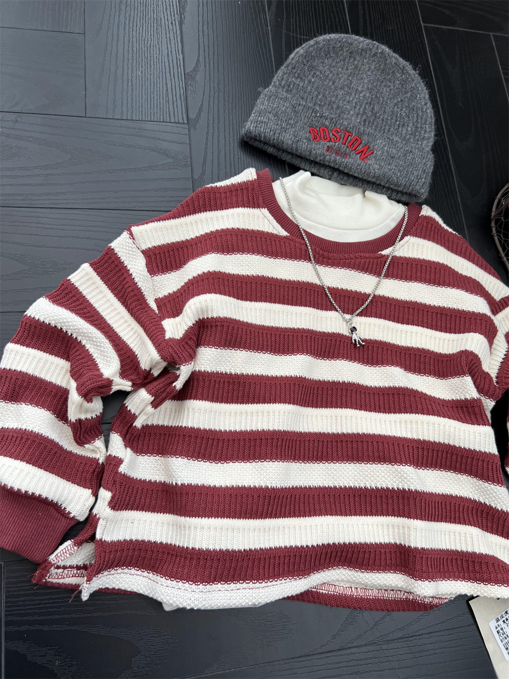 가을 어린이 미국식 게으른 줄무늬 니트 스웨터 소년과 소녀의 휴식 캐주얼 느슨한 힙합 울 탑