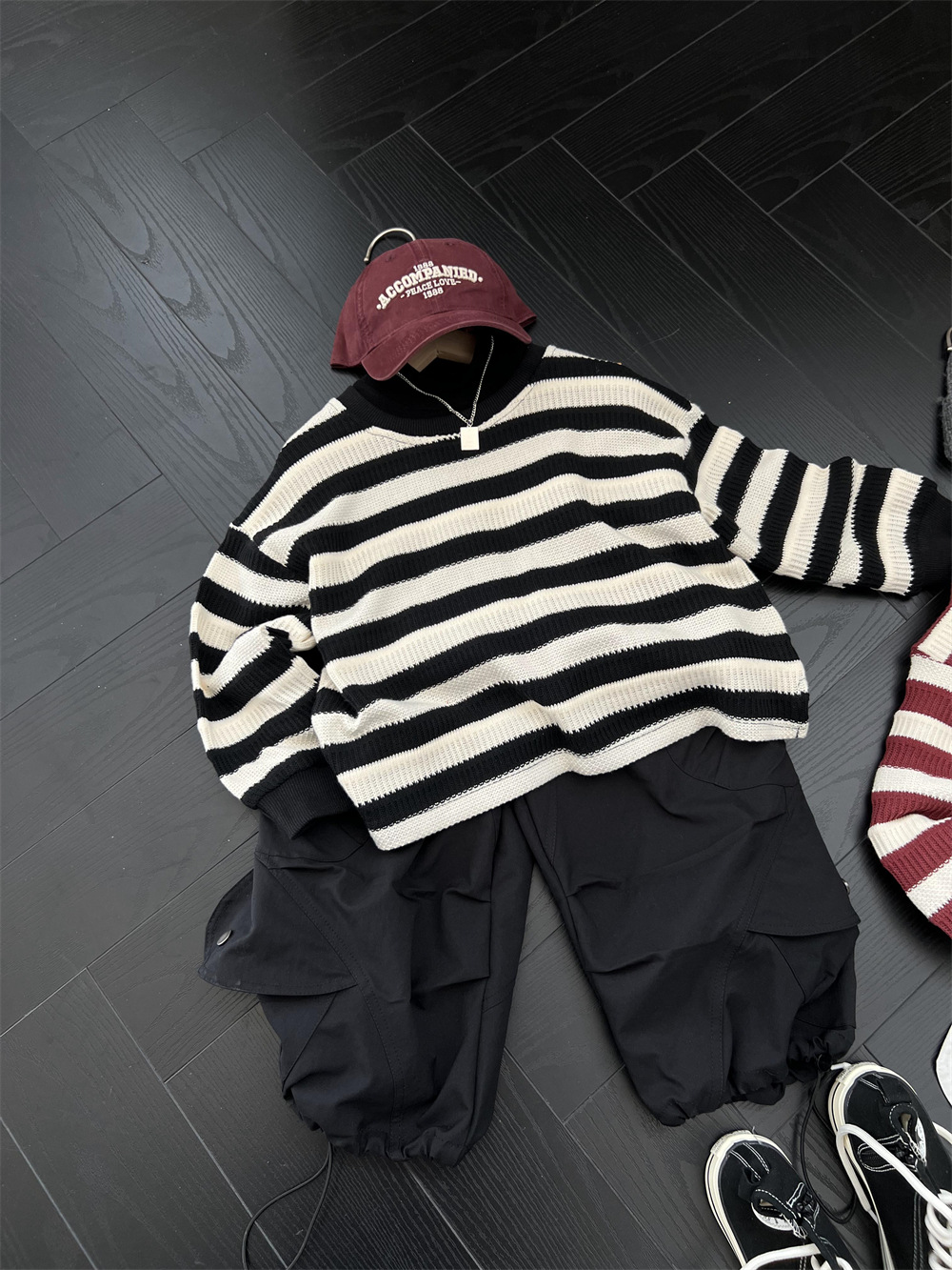 上身就是松松垮垮的感觉,搭配同色系工装裤很帅气
