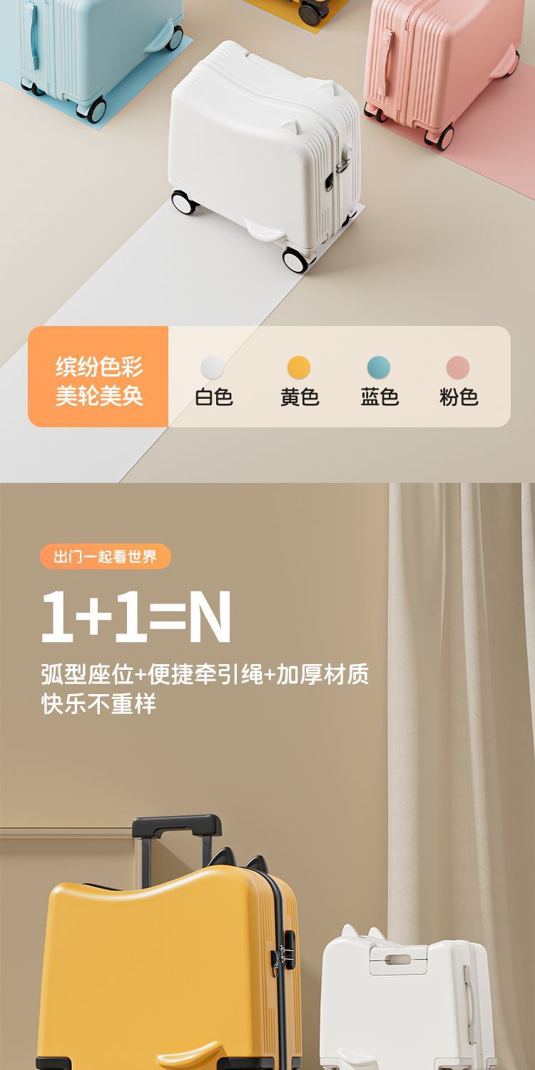 2024 새로운 어린이 수하물 소녀는 앉아서 초경량 탑승 트롤리 여행 걷는 아기 귀여운 여행 가방을 탈 수 있습니다.스토어 가기