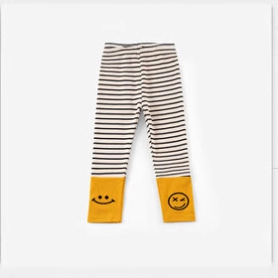 [재고] QK248590 소년 소녀 바지 2024 가을 느슨한 줄무늬 스티칭 컬러 조커 레깅스스토어 가기
