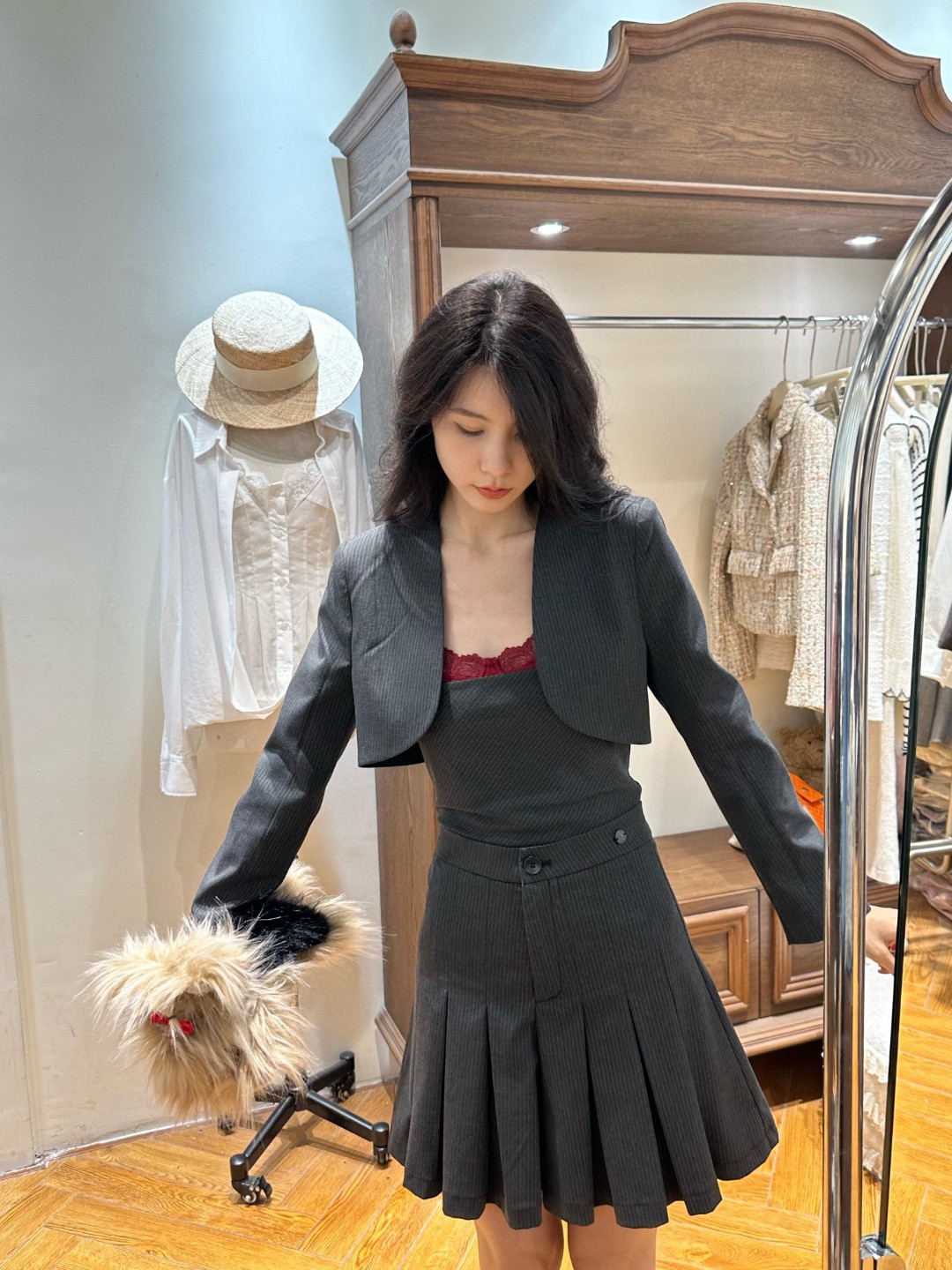 짧은 허리 세트 세트 여자 2024 년 초가을 새 레이스 스티칭 스트랩 높은 허리 컬롯 3 피스 세트스토어 가기