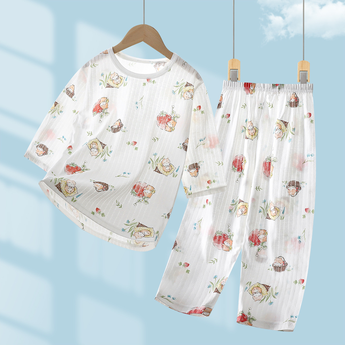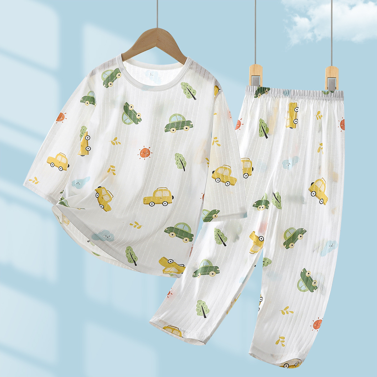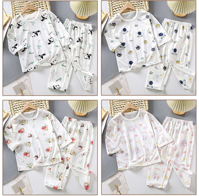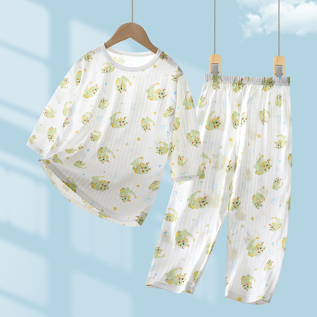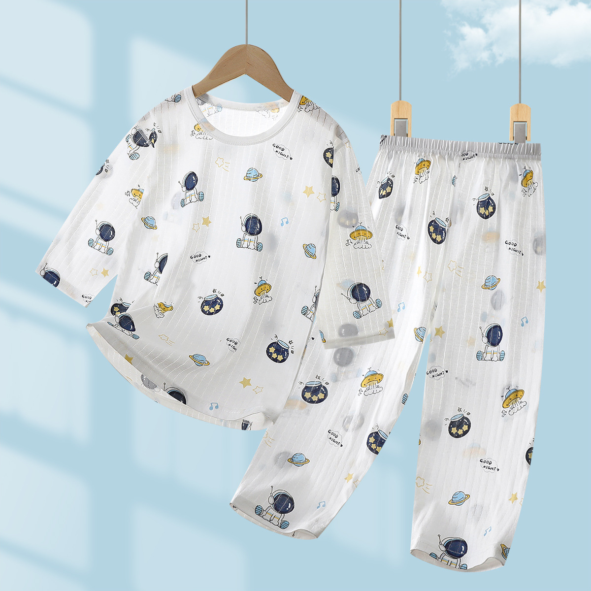 어린이 의류 순면 어린이 가정 의류 여름 얇은 여아 에어컨 의류 면 뼈없는 아기 잠옷 소년 에어컨 의류