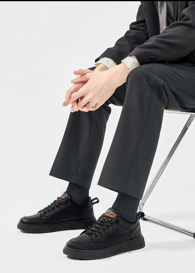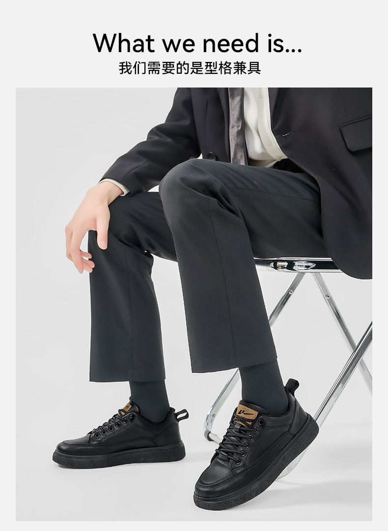 Huili 가죽 신발 기모 겨울 2024 새로운 부드러운 바닥 검은 신발 영국 공식 남성 비즈니스 캐주얼 남성 신발스토어 가기