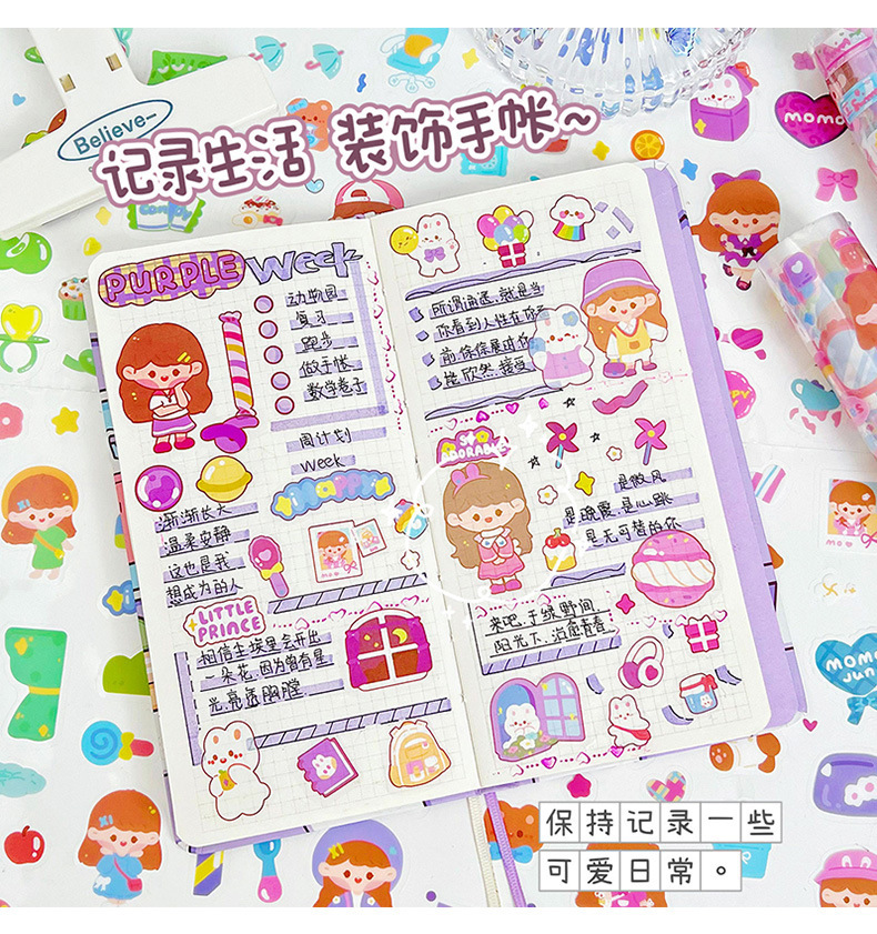MOMO 소스 손 계정 스티커 롤 어린이 DIY 컷 프리 구 카드 스티커 PET 방수 휴대 전화 스티커 도매