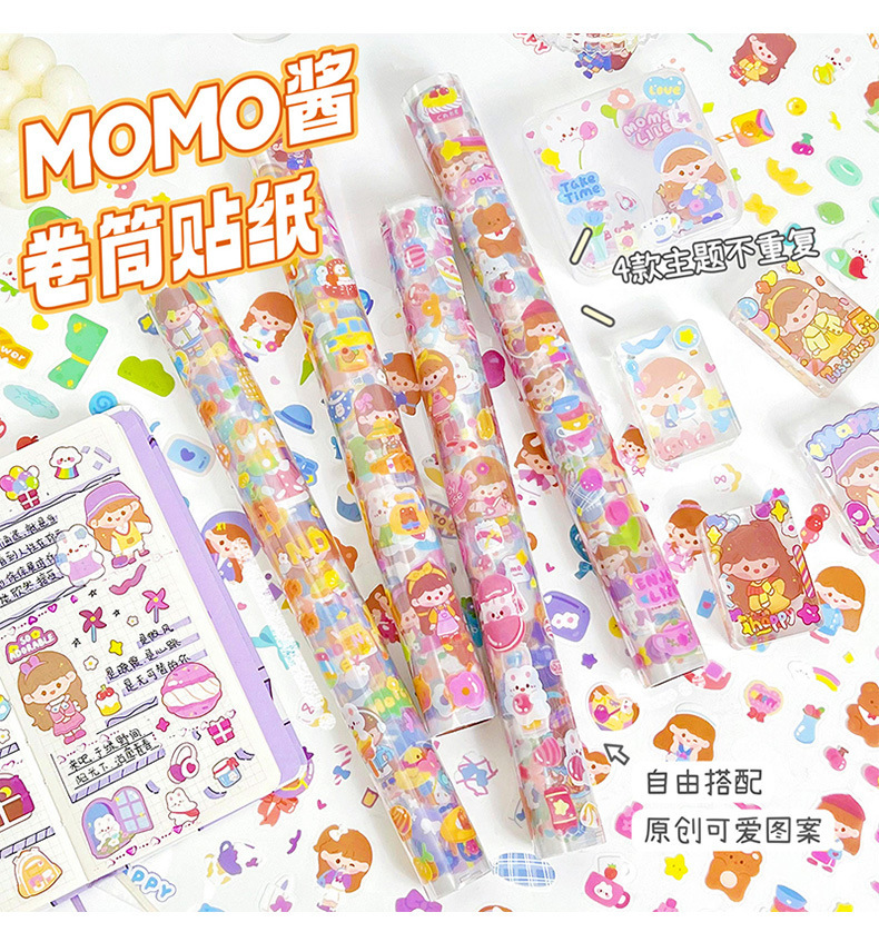 MOMO 소스 손 계정 스티커 롤 어린이 DIY 컷 프리 구 카드 스티커 PET 방수 휴대 전화 스티커 도매스토어 가기