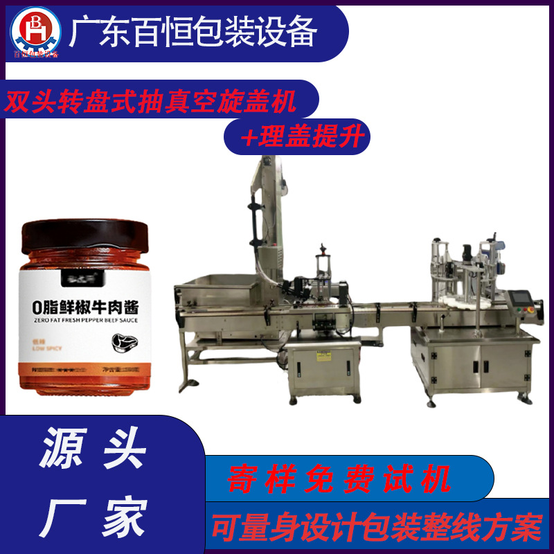 더블 헤드 턴테이블 진공 캡핑 기계 + 뚜껑 리프팅 쇠고기 소스 밀봉 기계 칠리 소스 캡핑 기계
