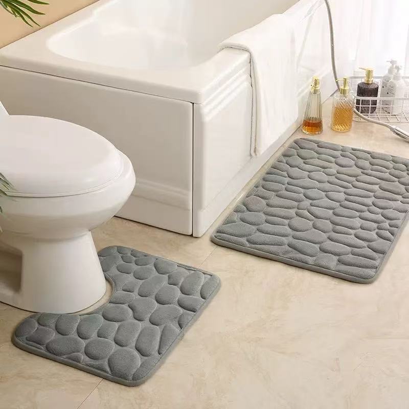 양각 조약돌 산호 양털 바닥 매트 욕실 바닥 매트 화장실 U 자형 화장실 흡수성 발 매트 투피스 도매스토어 가기