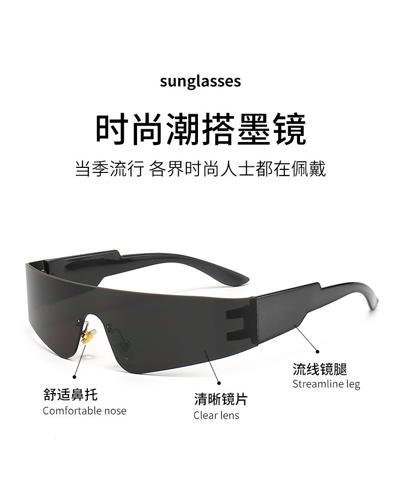 사이버 펑크 미래 기술 프레임리스 선글라스 트렌디 남성용 핫 걸스 라이딩 스트리트 샷 선글라스 여성스토어 가기