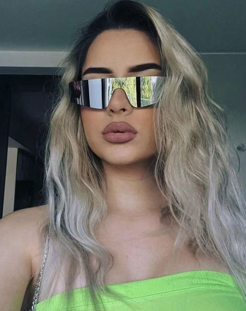 사이버 펑크 미래 기술 프레임리스 선글라스 트렌디 남성용 핫 걸스 라이딩 스트리트 샷 선글라스 여성