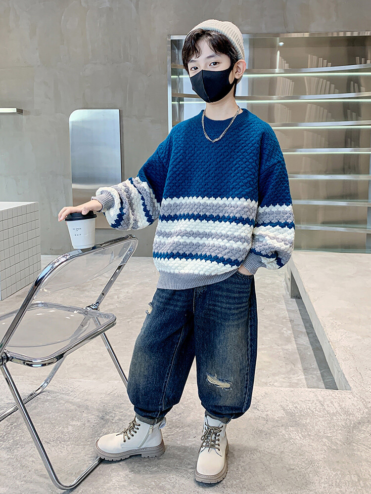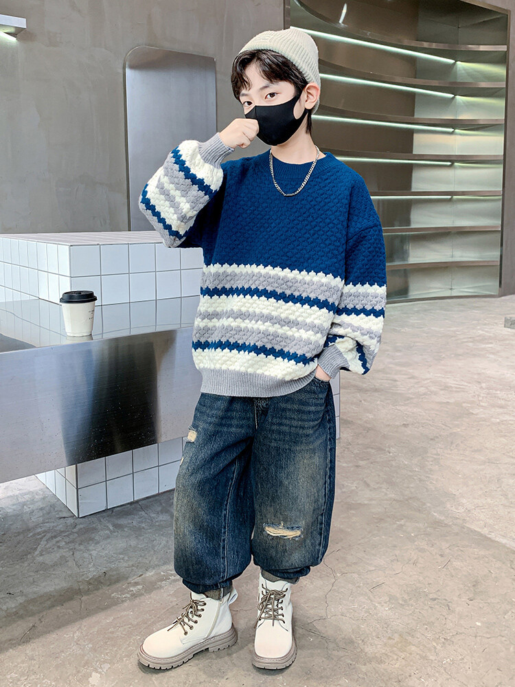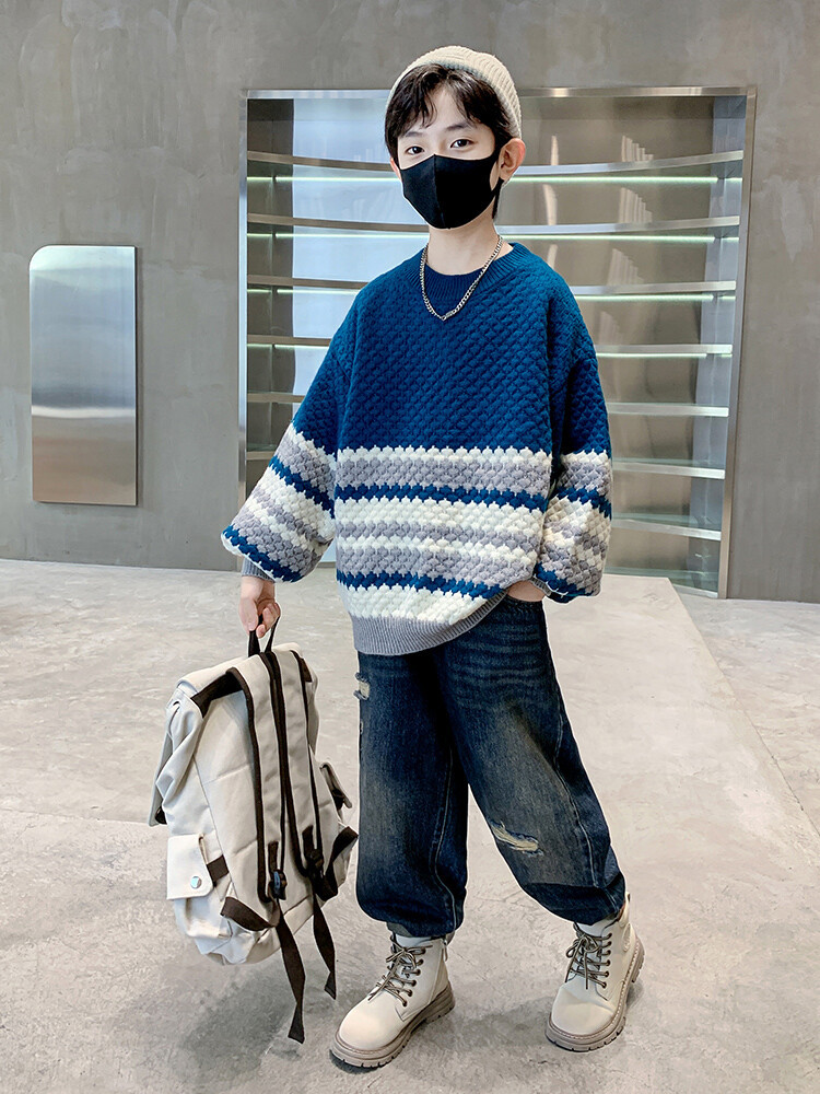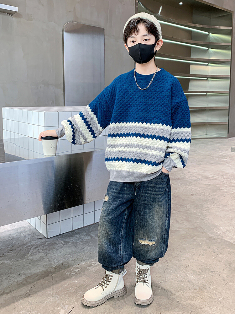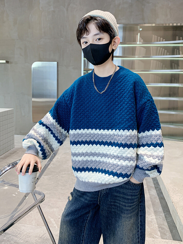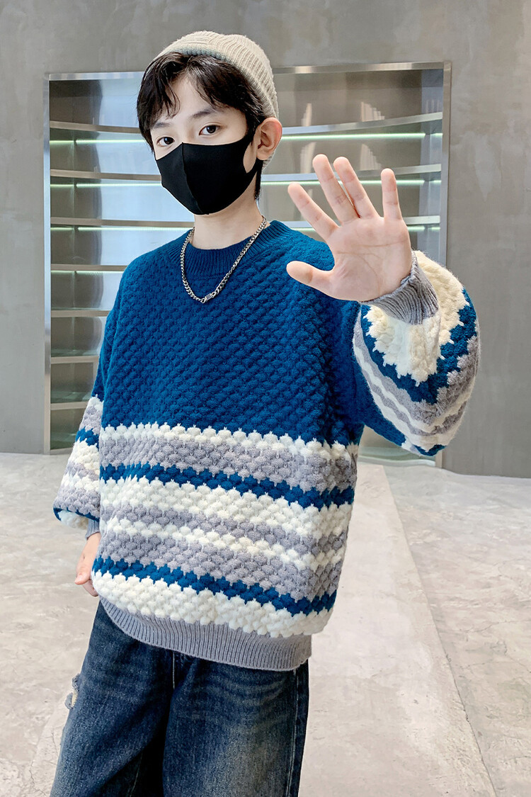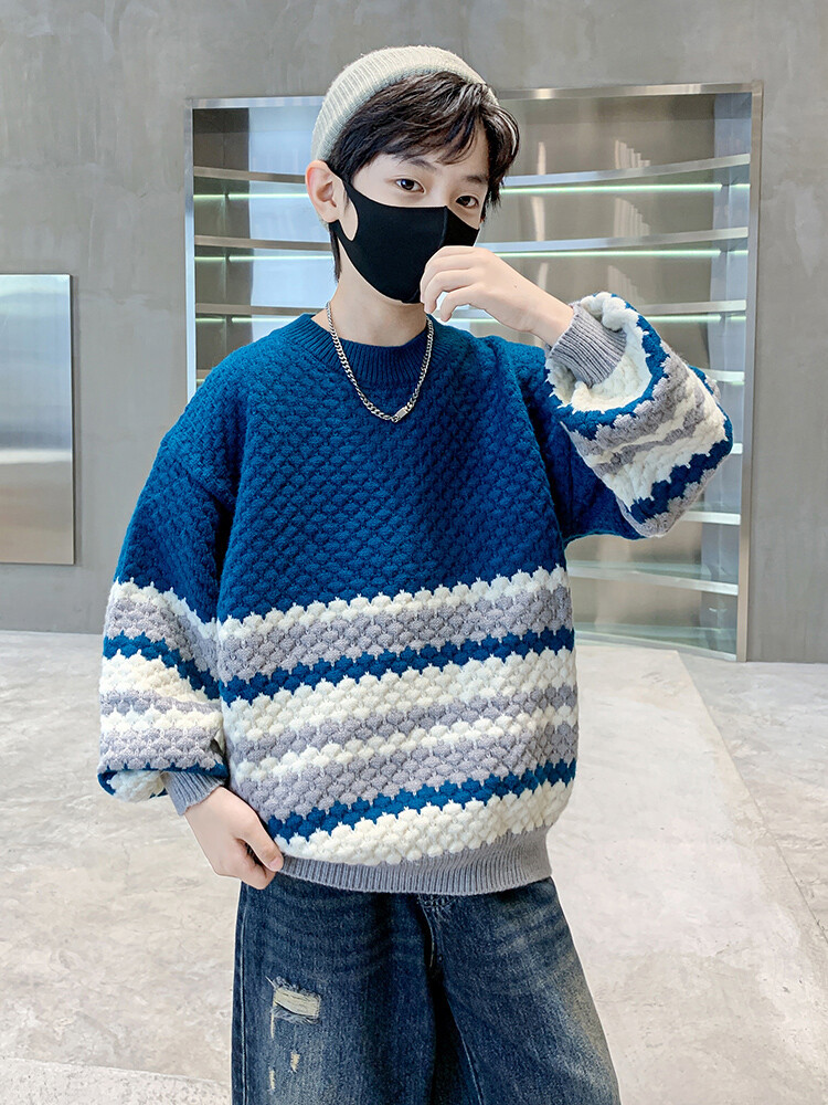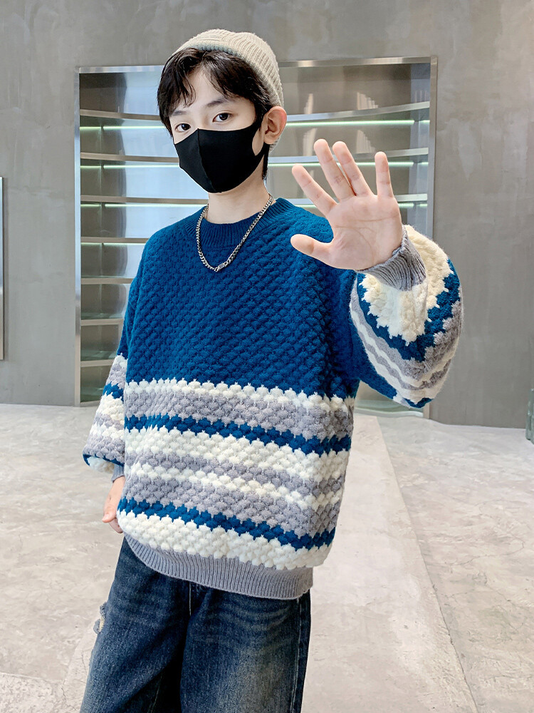 어린이 착용 소년 스웨터 2024 새로운 스타일 어린이 소년 겨울 니트 베이스 셔츠 겨울 패션