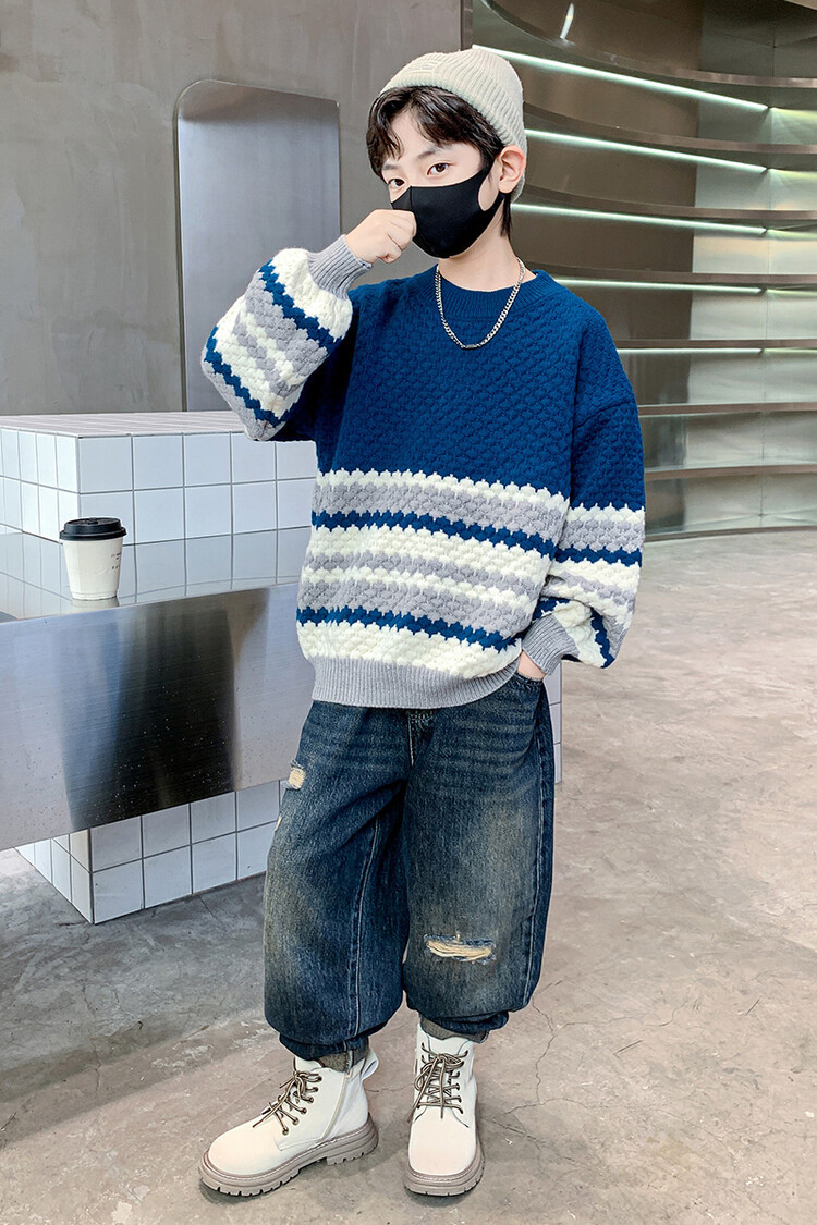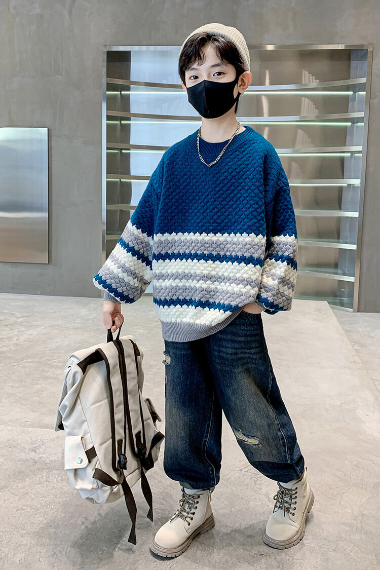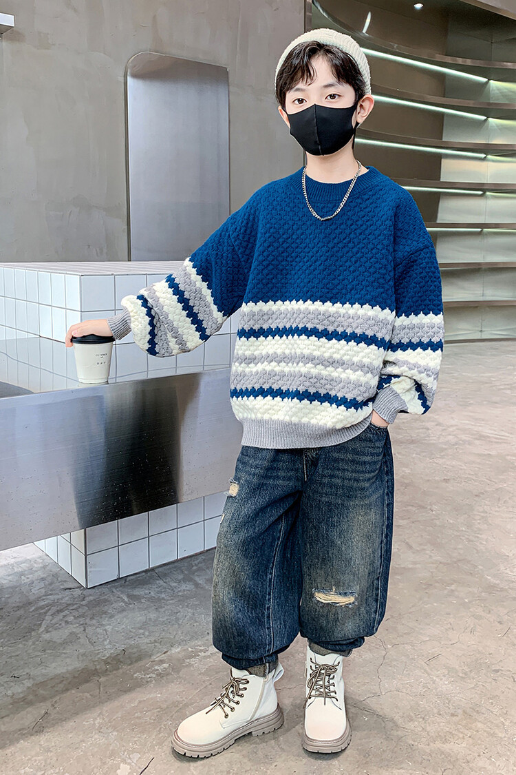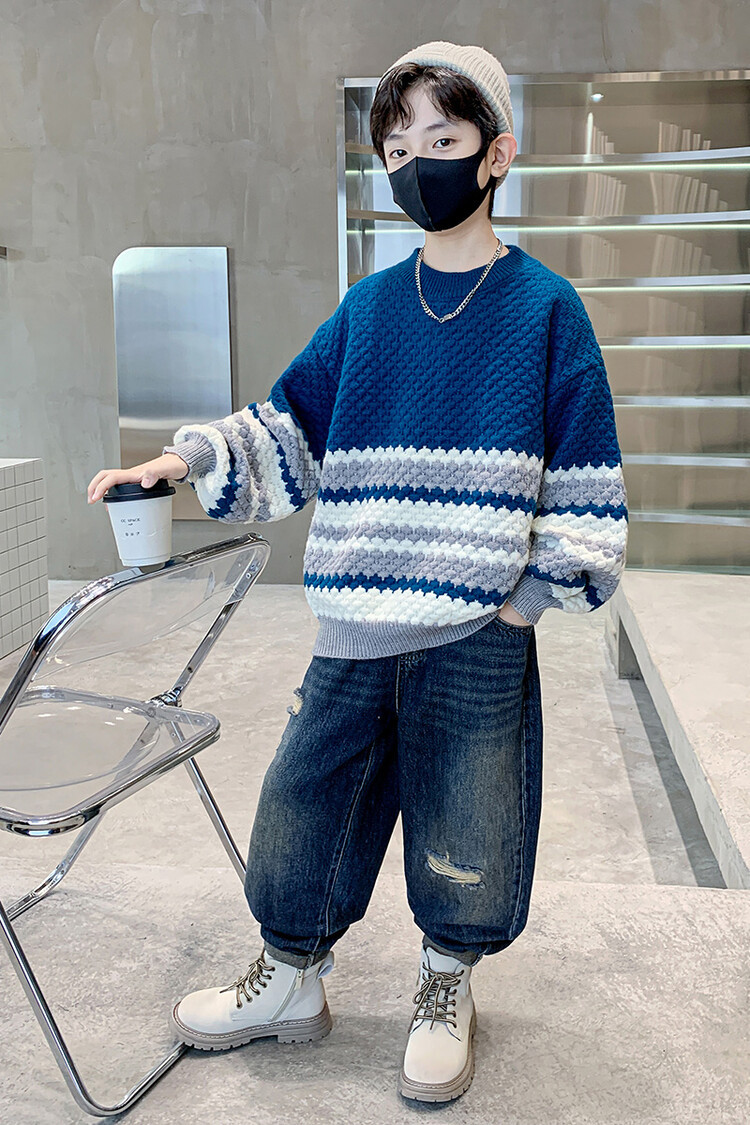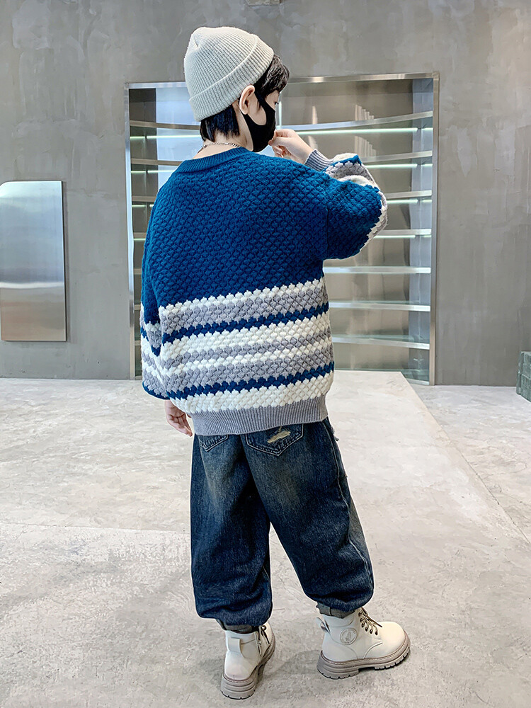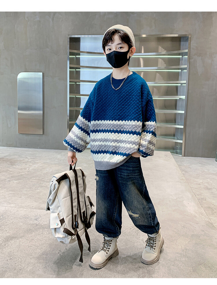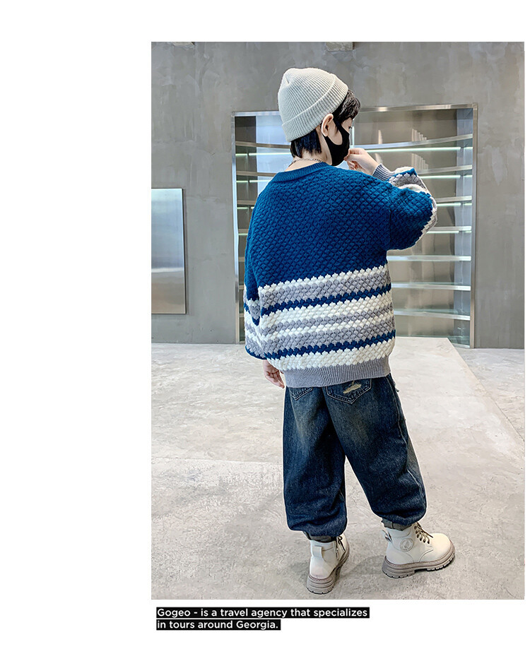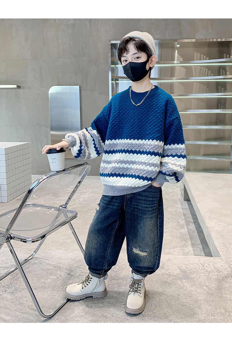 어린이 착용 소년 스웨터 2024 새로운 스타일 어린이 소년 겨울 니트 베이스 셔츠 겨울 패션