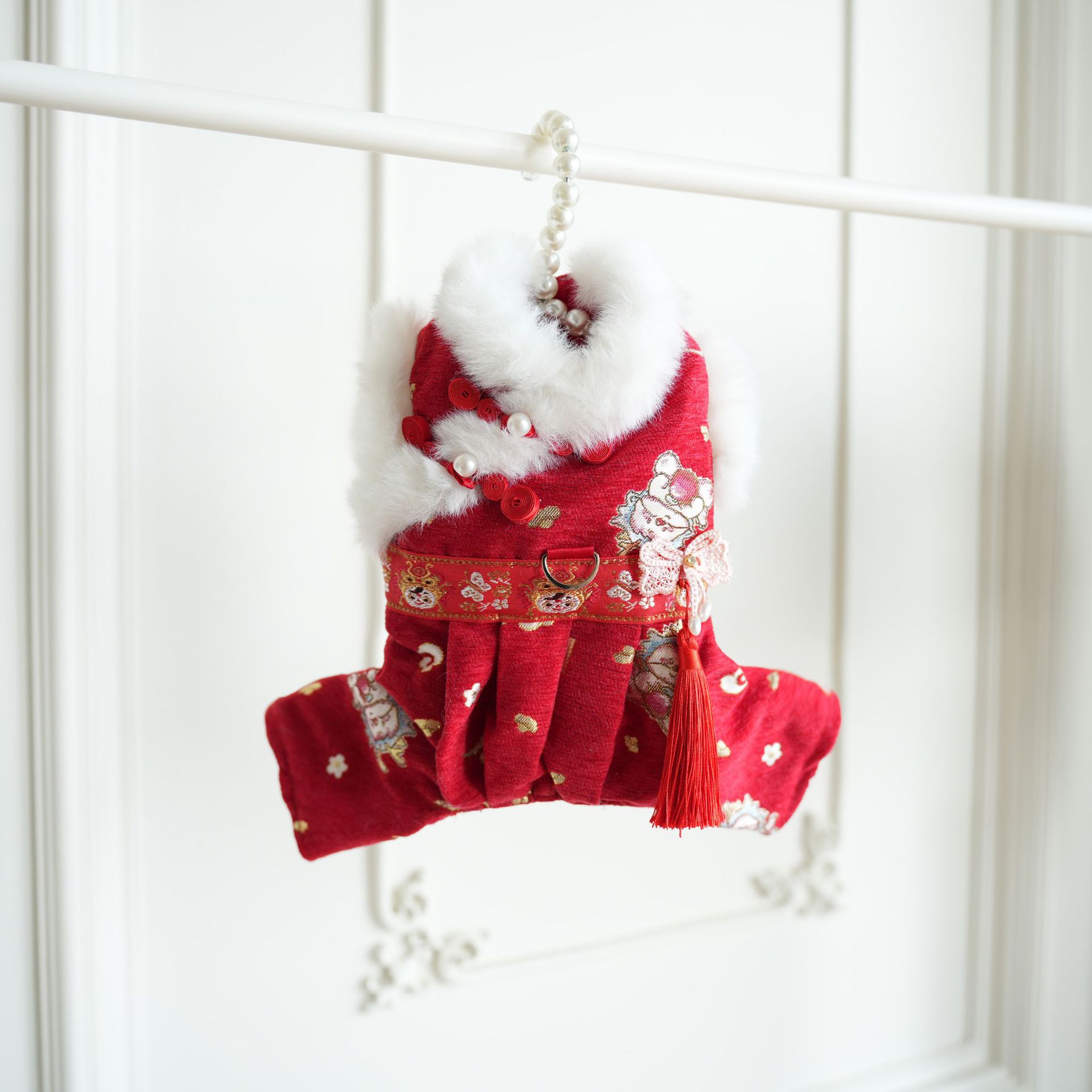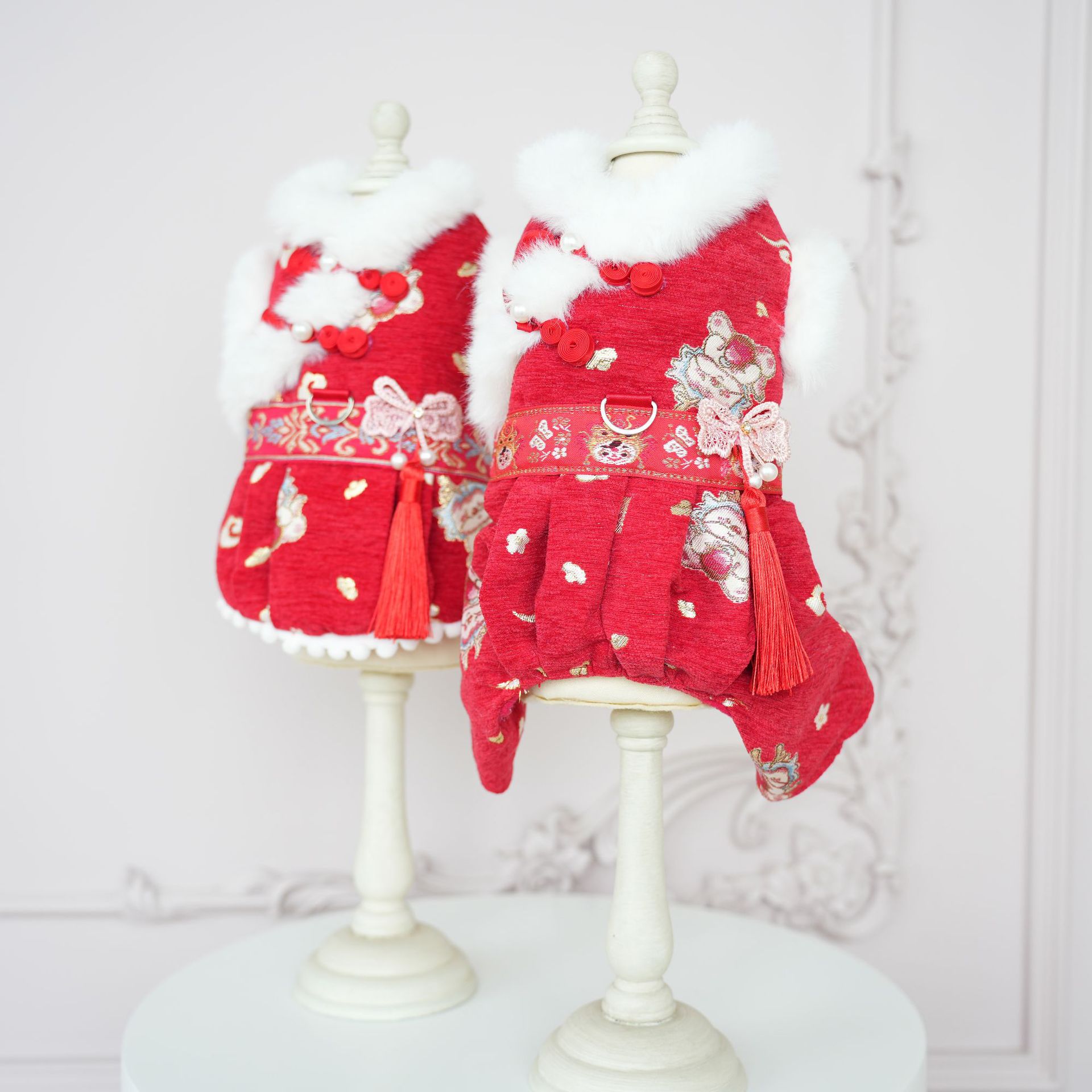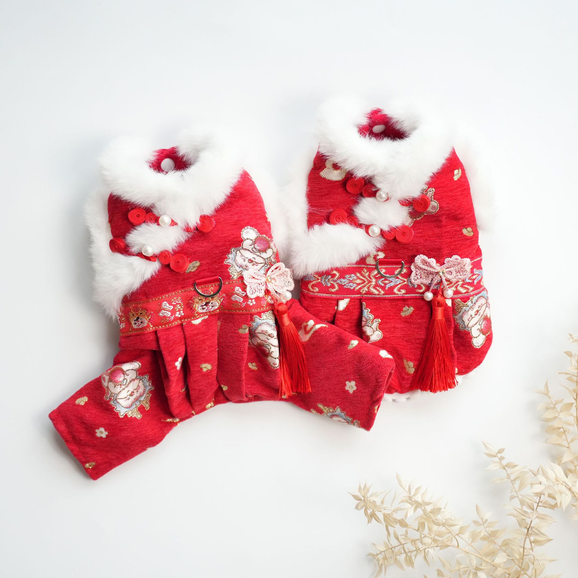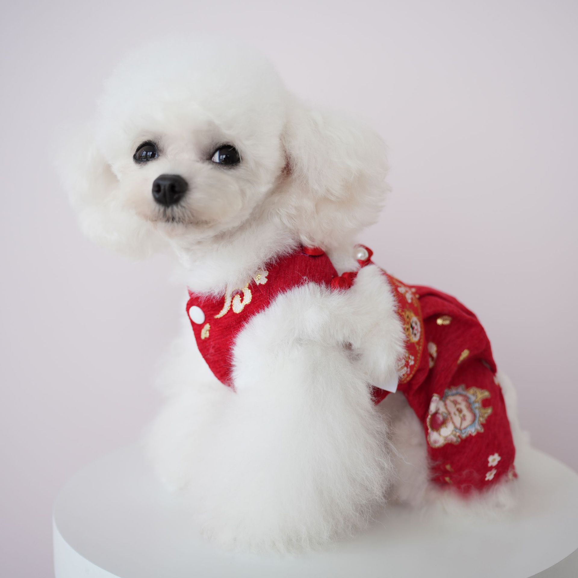 애완견 용 아기 탕 세트 네 다리 신년 붉은 한푸 웨딩 옷 테디 비터 팬더 고양이 겨울 옷