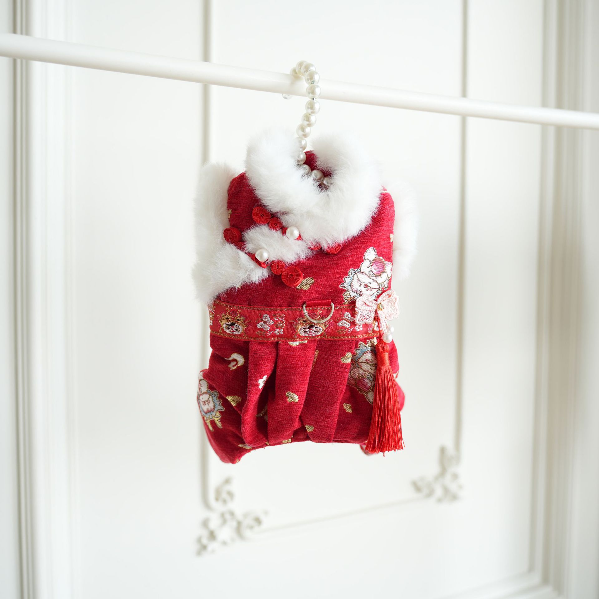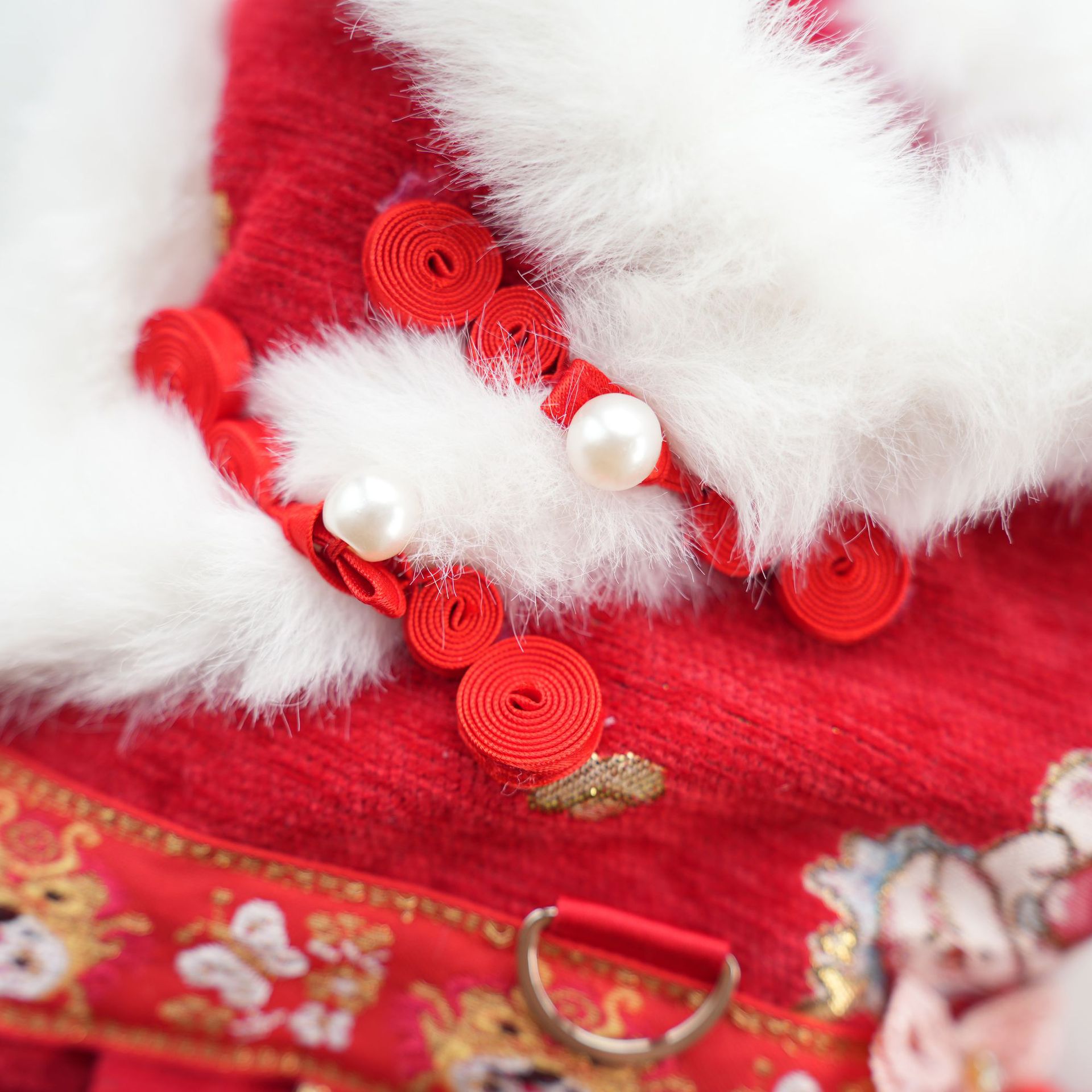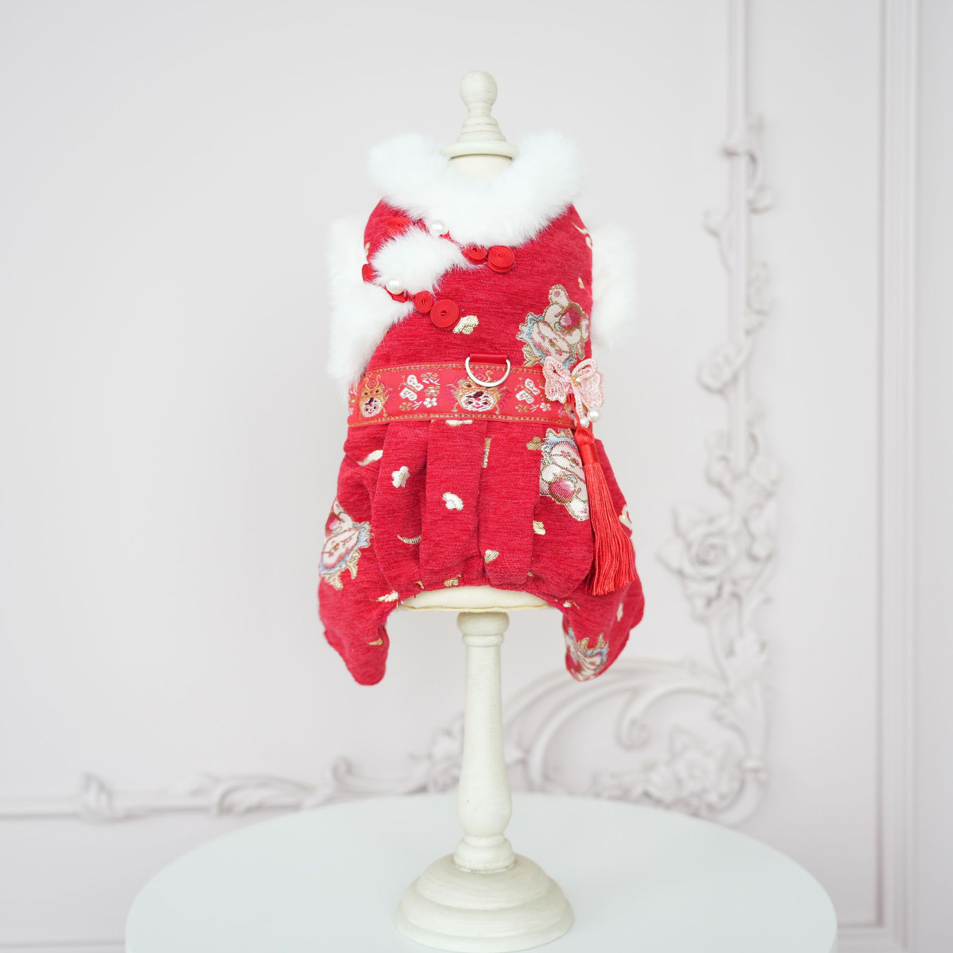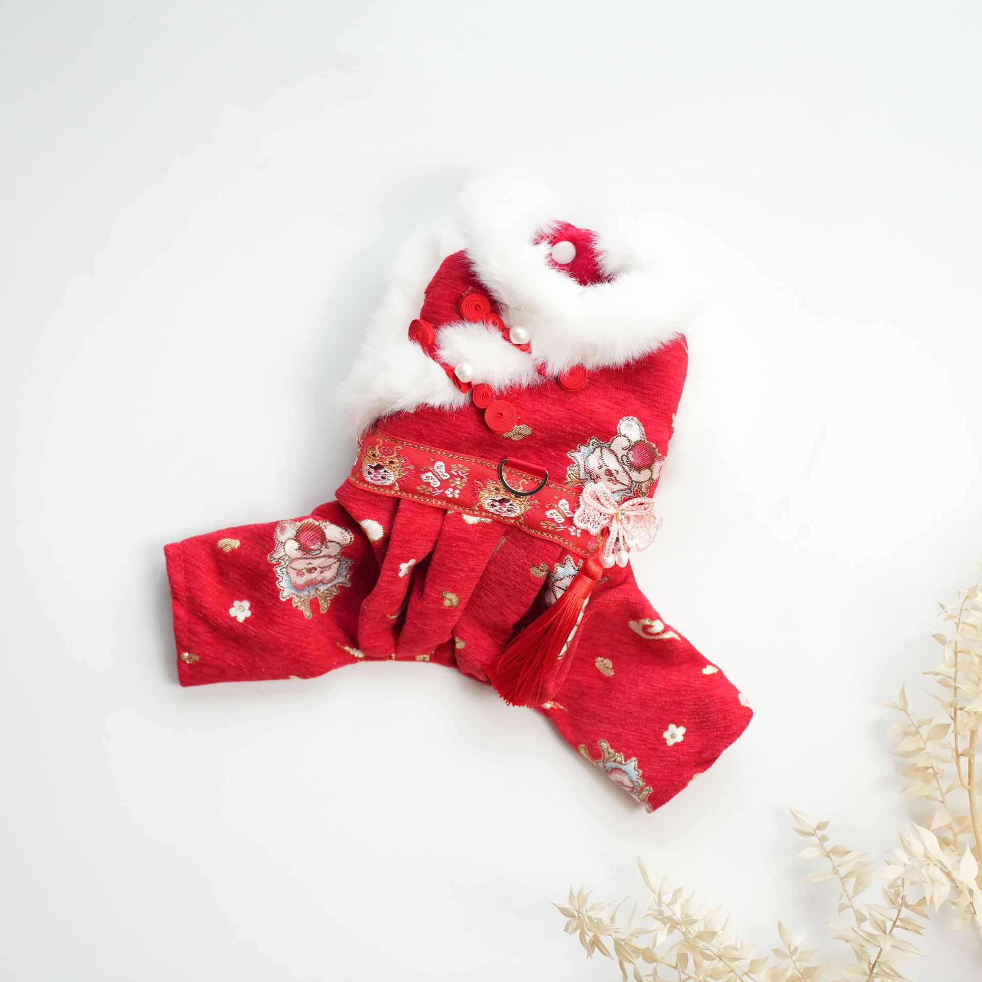 애완견 용 아기 탕 세트 네 다리 신년 붉은 한푸 웨딩 옷 테디 비터 팬더 고양이 겨울 옷