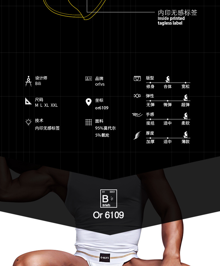 ORLVS 트렌디 한 남자 섹시한 스포츠 브리프 남자 높은 탄성 모달 브리프 남자 OR6109