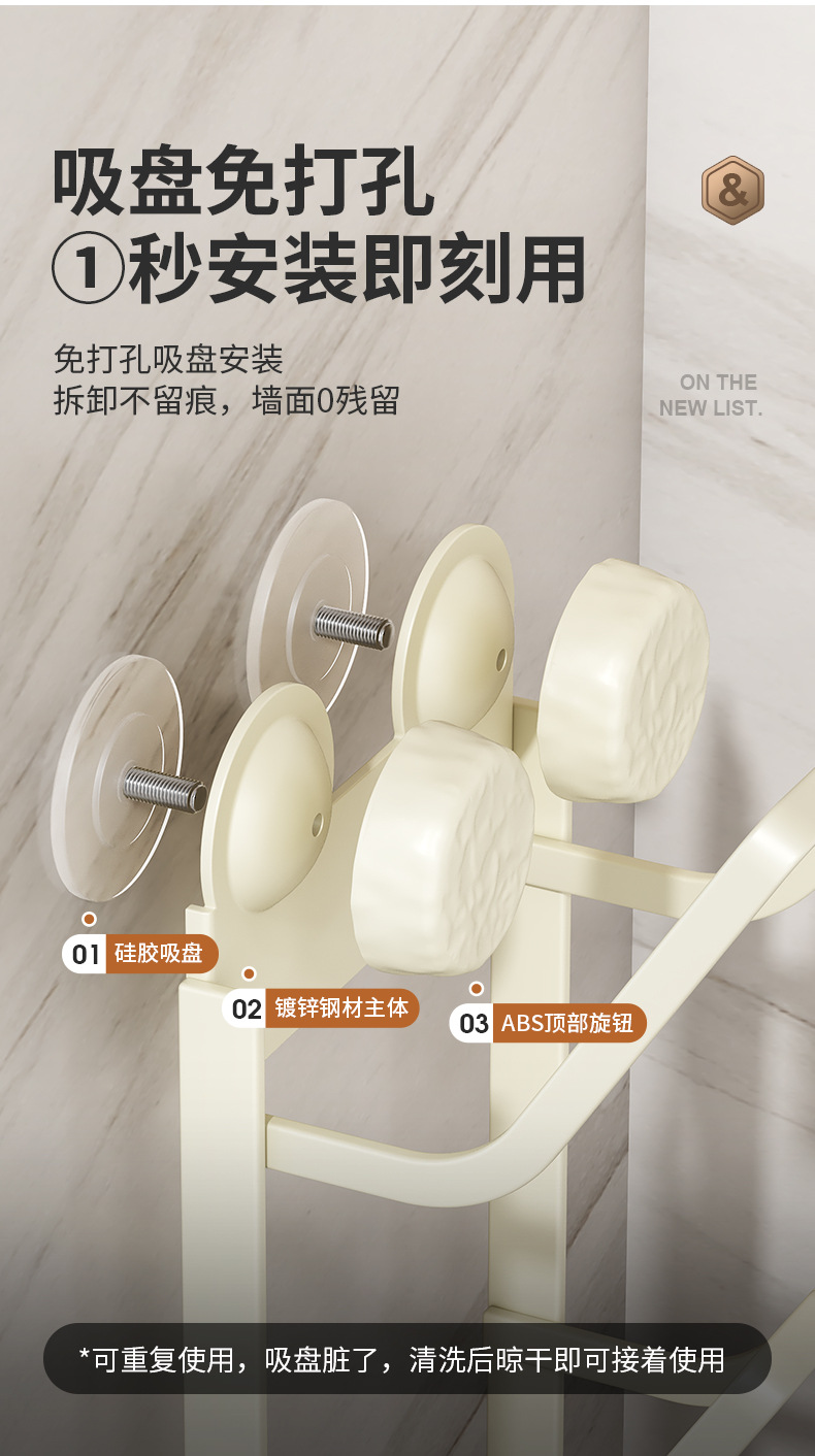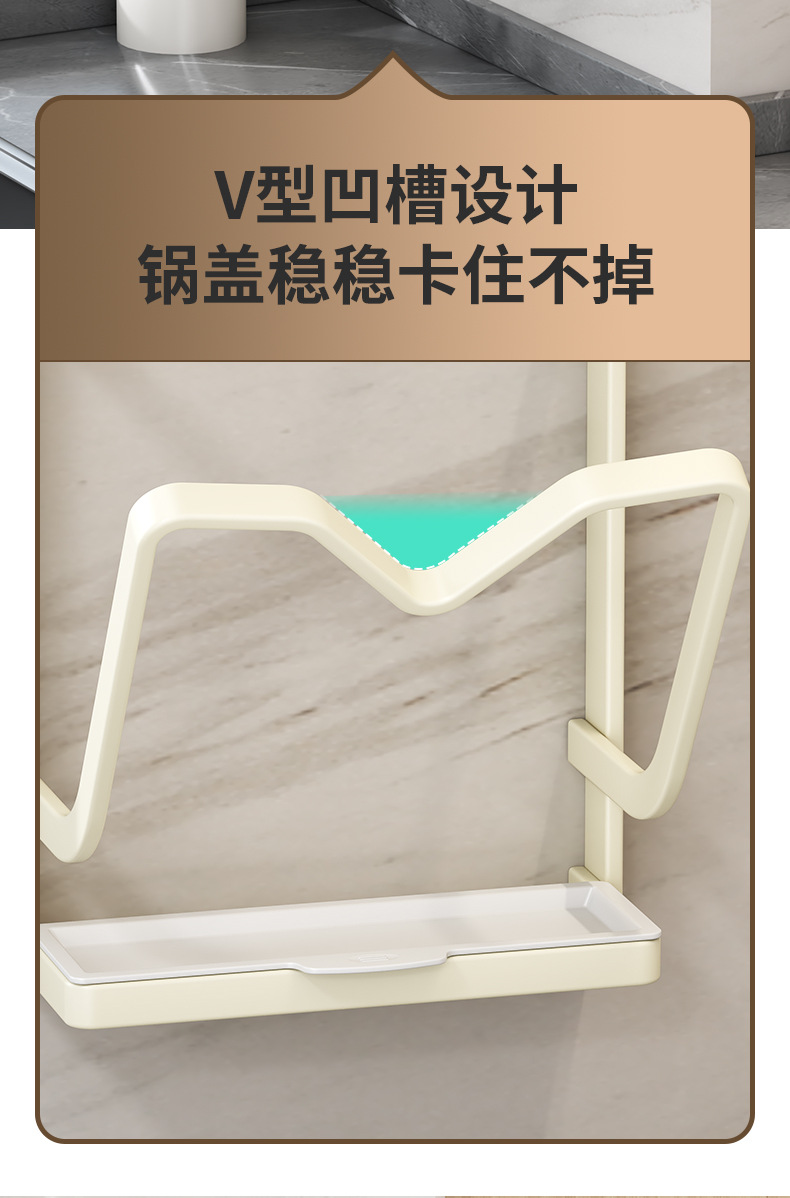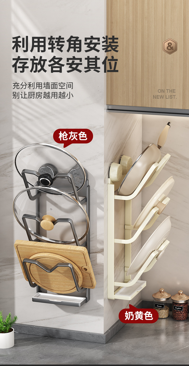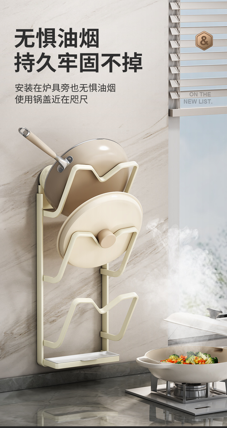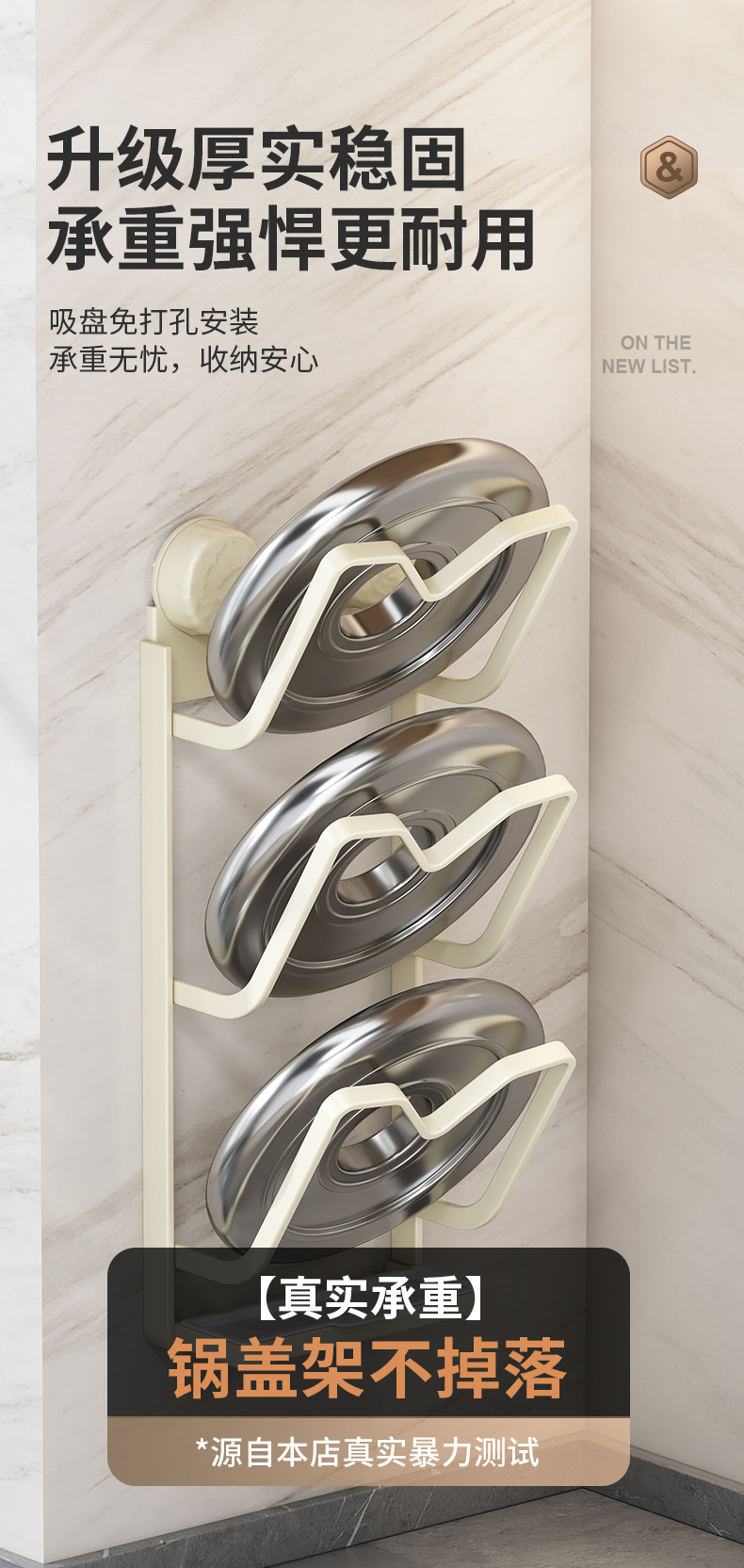 • 크림 옐로우 - 플랫 바 흡입 컵 다기능 냄비 뚜껑 홀더