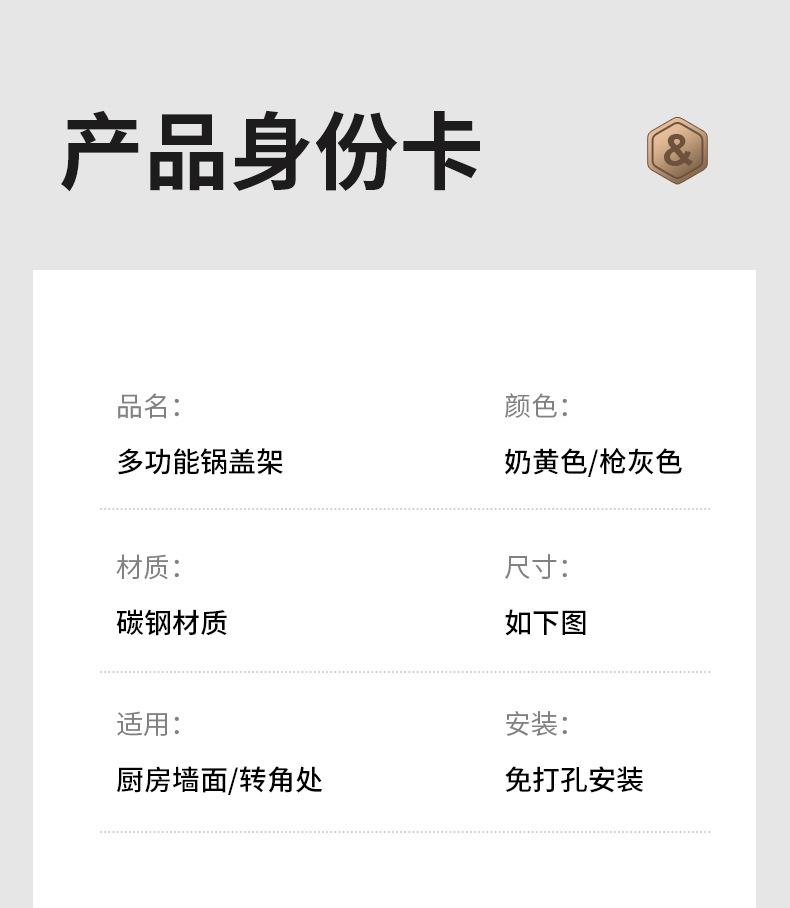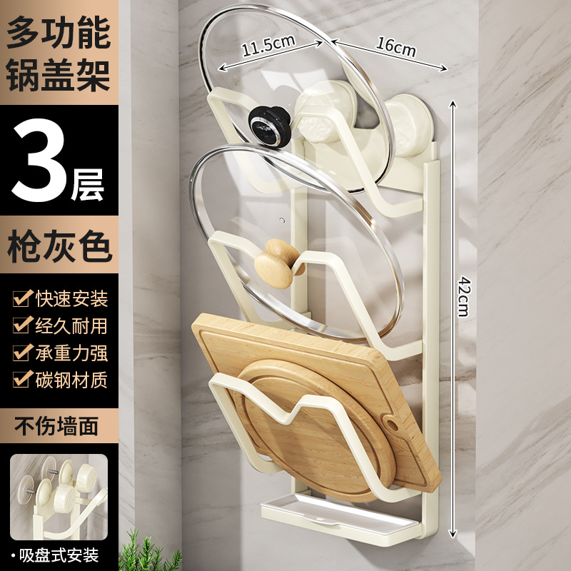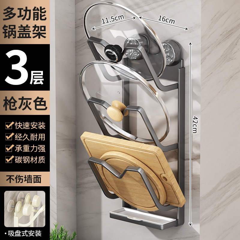 • 건 그레이 - 플랫 바 흡입 컵 다기능 냄비 뚜껑 홀더