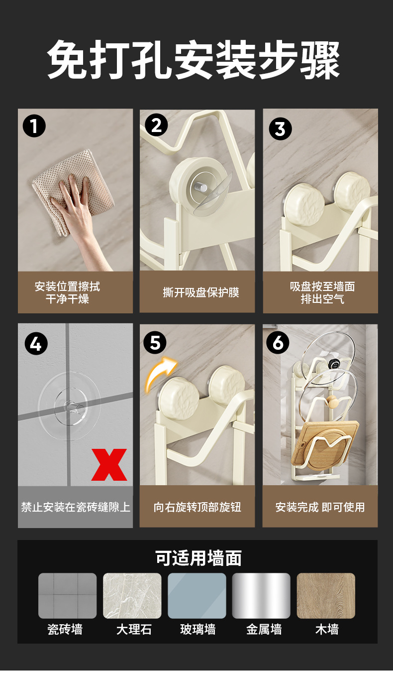 냄비 커버 선반 벽에 매달려 펀치 프리 빨판 주방 스토리지 랙 다기능 도마 도마 워크 커버 스토리지 랙