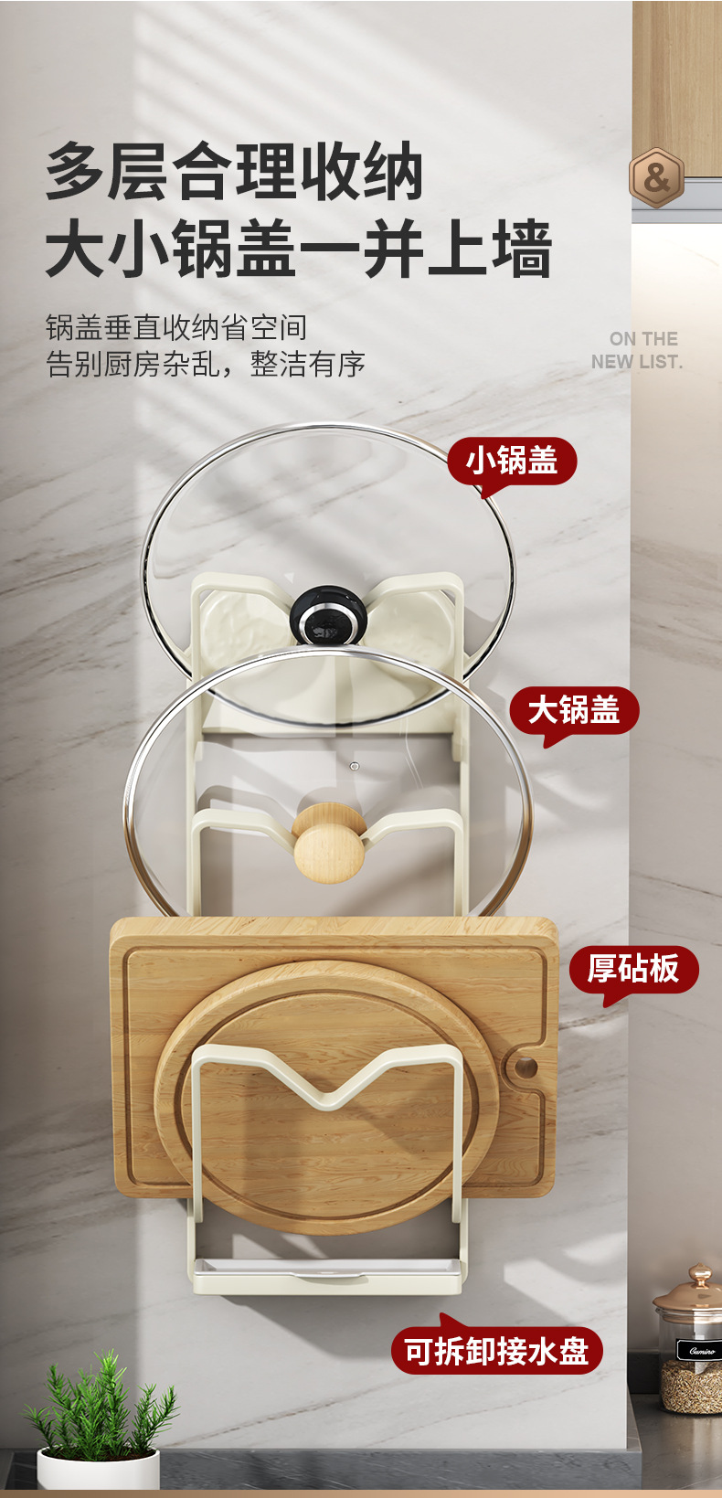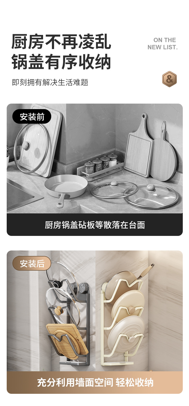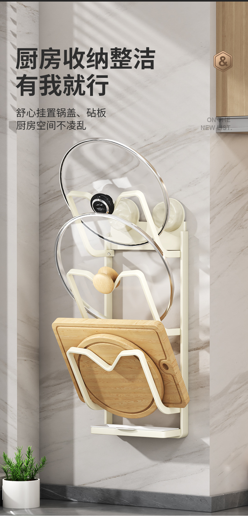 냄비 커버 선반 벽에 매달려 펀치 프리 빨판 주방 스토리지 랙 다기능 도마 도마 워크 커버 스토리지 랙스토어 가기