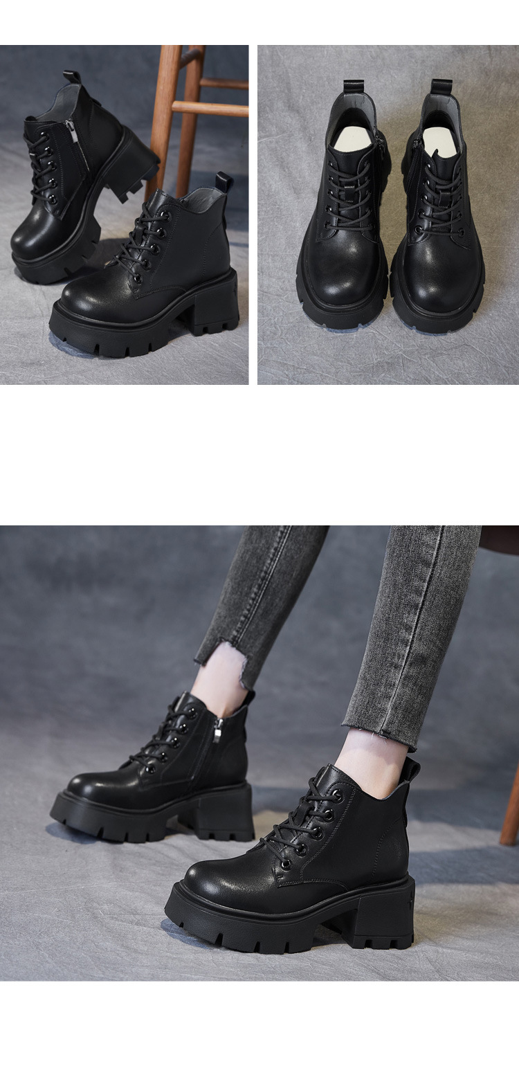 2024 가을 겨울 새로운 두꺼운 힐 마틴 부츠 여성 영국 스타일 패션 라운드 발가락 작은 높이 부츠 여성 트렌디 부츠스토어 가기
