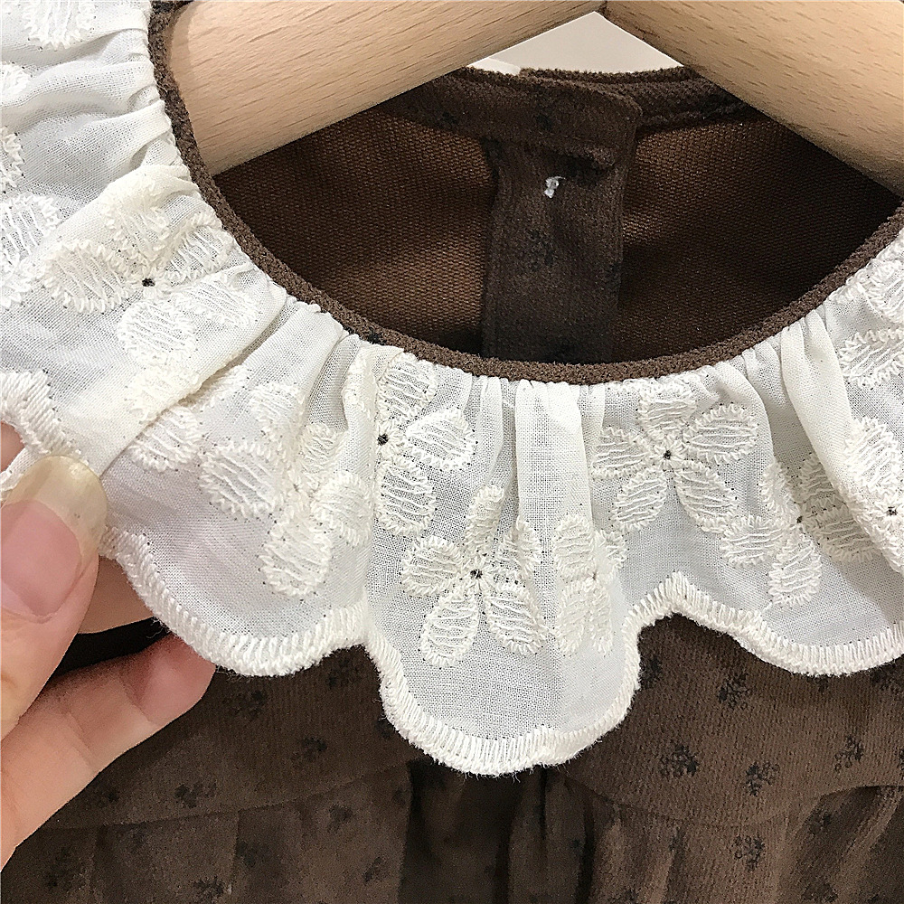 한국 스타일 소녀 새로운 가을 모리 스타일 원피스 여성 보물 빈티지 귀여운 꽃 레이스 라운드 넥 공주 원피스 대외 무역
