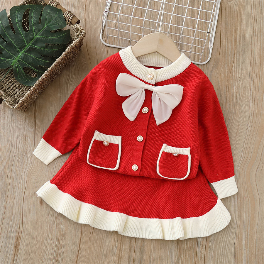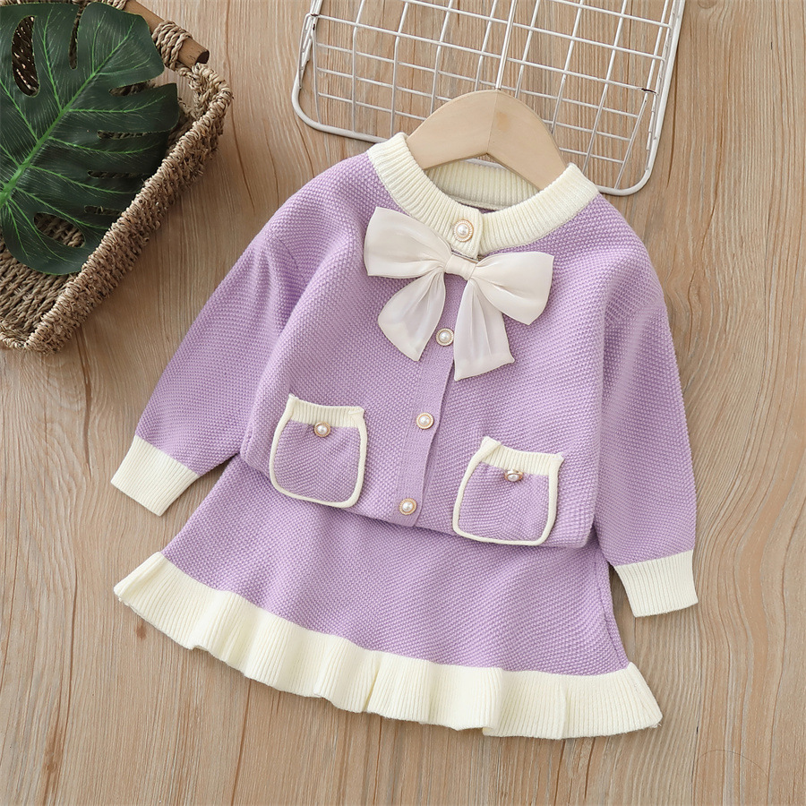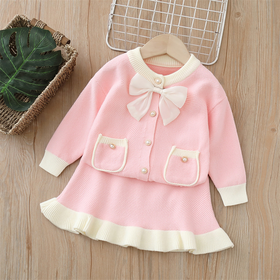 어린이 스웨터 재킷 2024 가을 새로운 작은 향기 소녀 투피스 세트 소녀 스웨터 세트