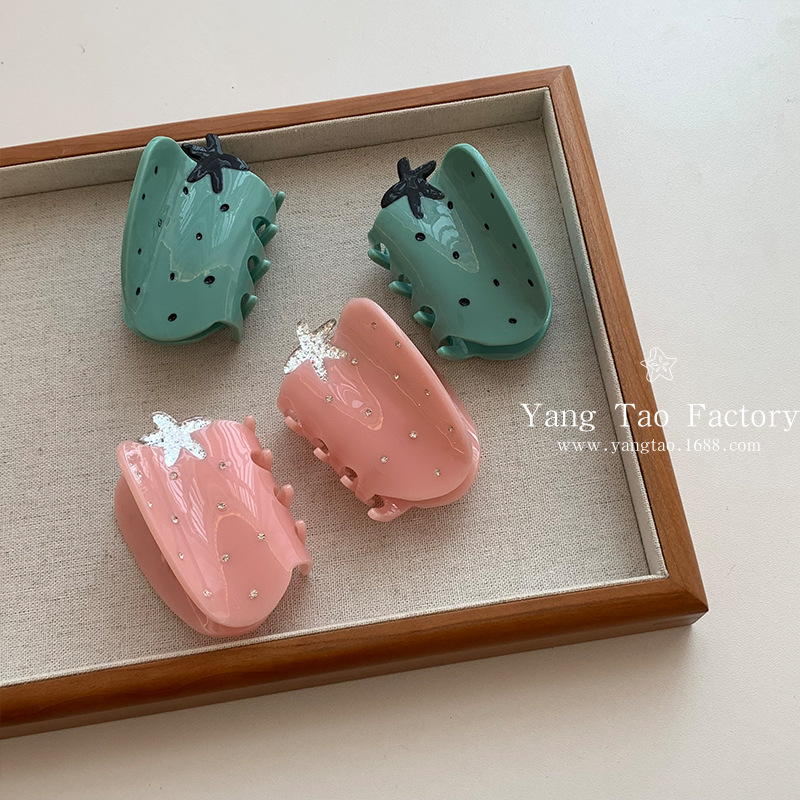 귀여운 딸기 드릴 그릴 클립 헤어 잡아 아세트산 과일 틈새 디자인 센스 뒤 머리 잡아 클립 헤어 액세서리