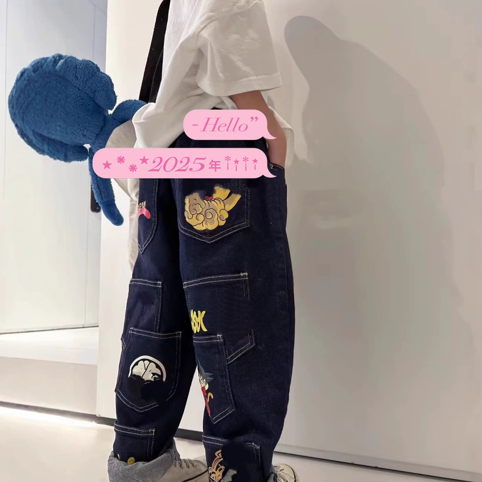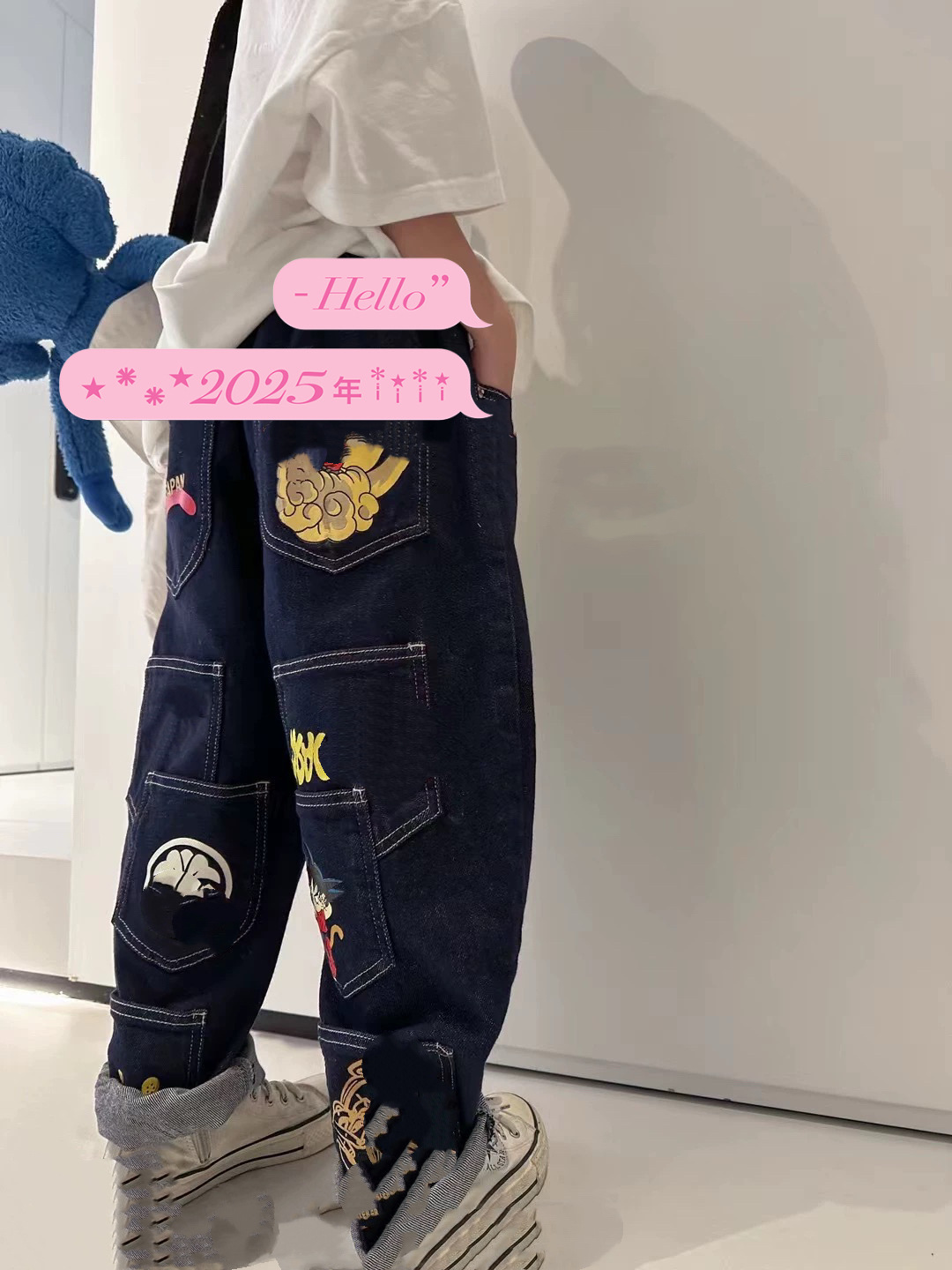【작은 용구슬】멋진 아동용 청바지 신상품 남녀 아동 캐주얼 바지 2066스토어 가기