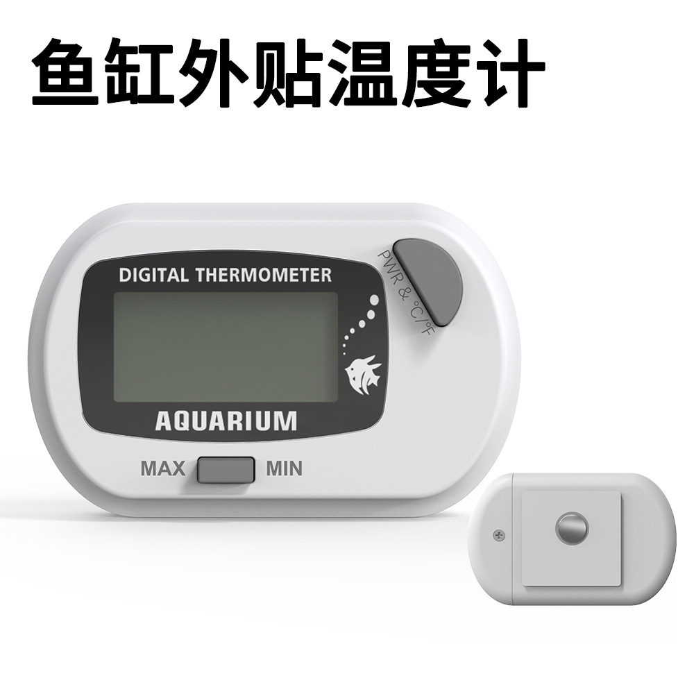 1.将显示屏部分固定于鱼缸外(显示屏不能触水),将感应探头伸入水中。