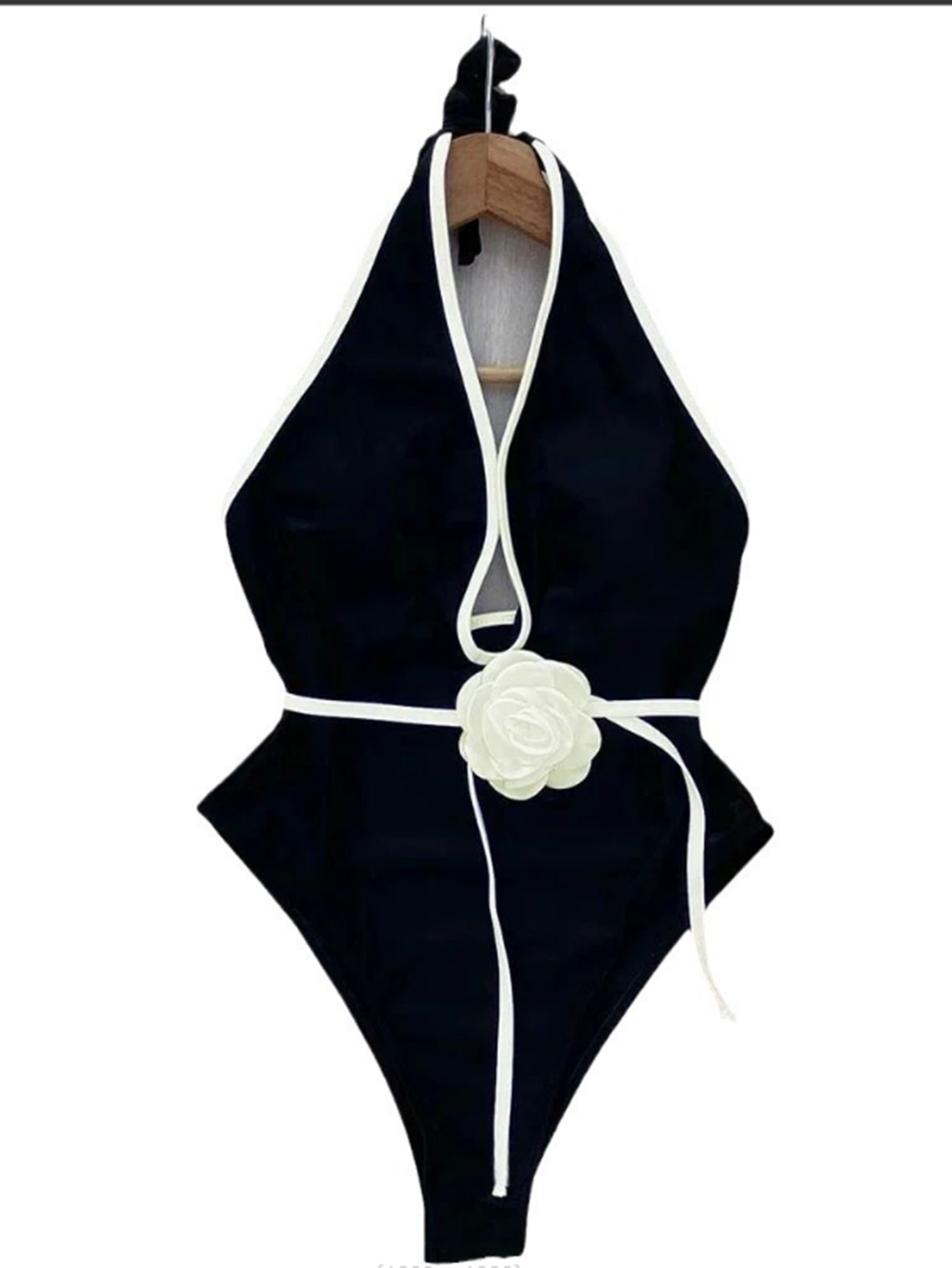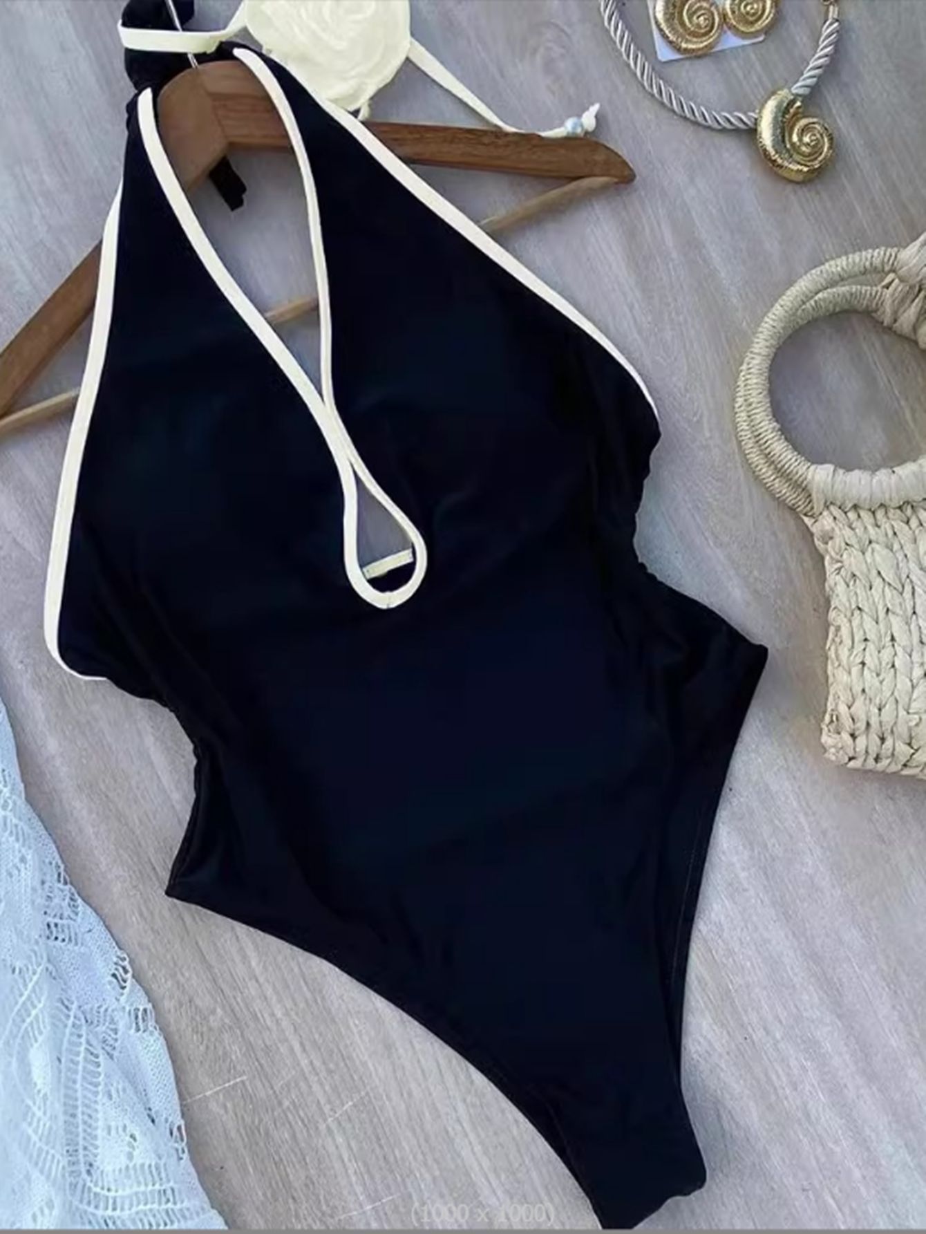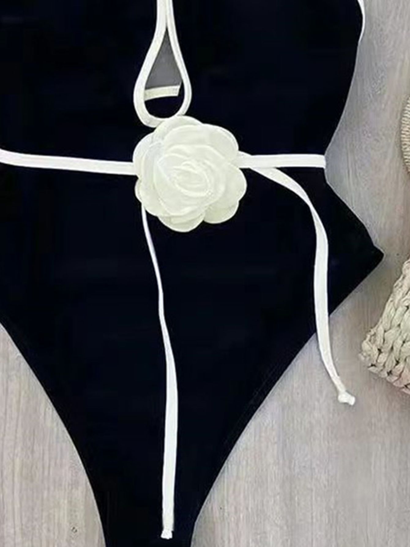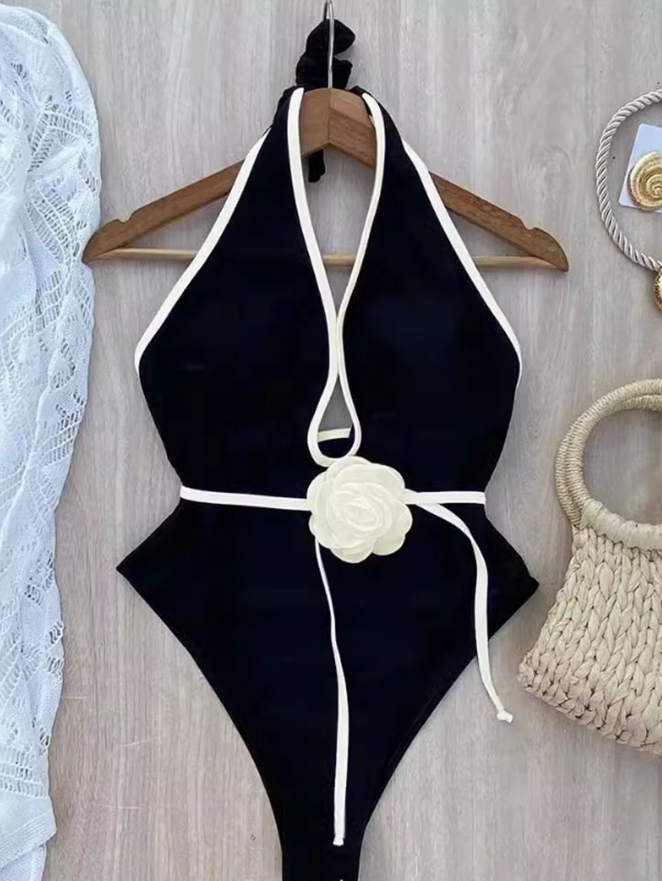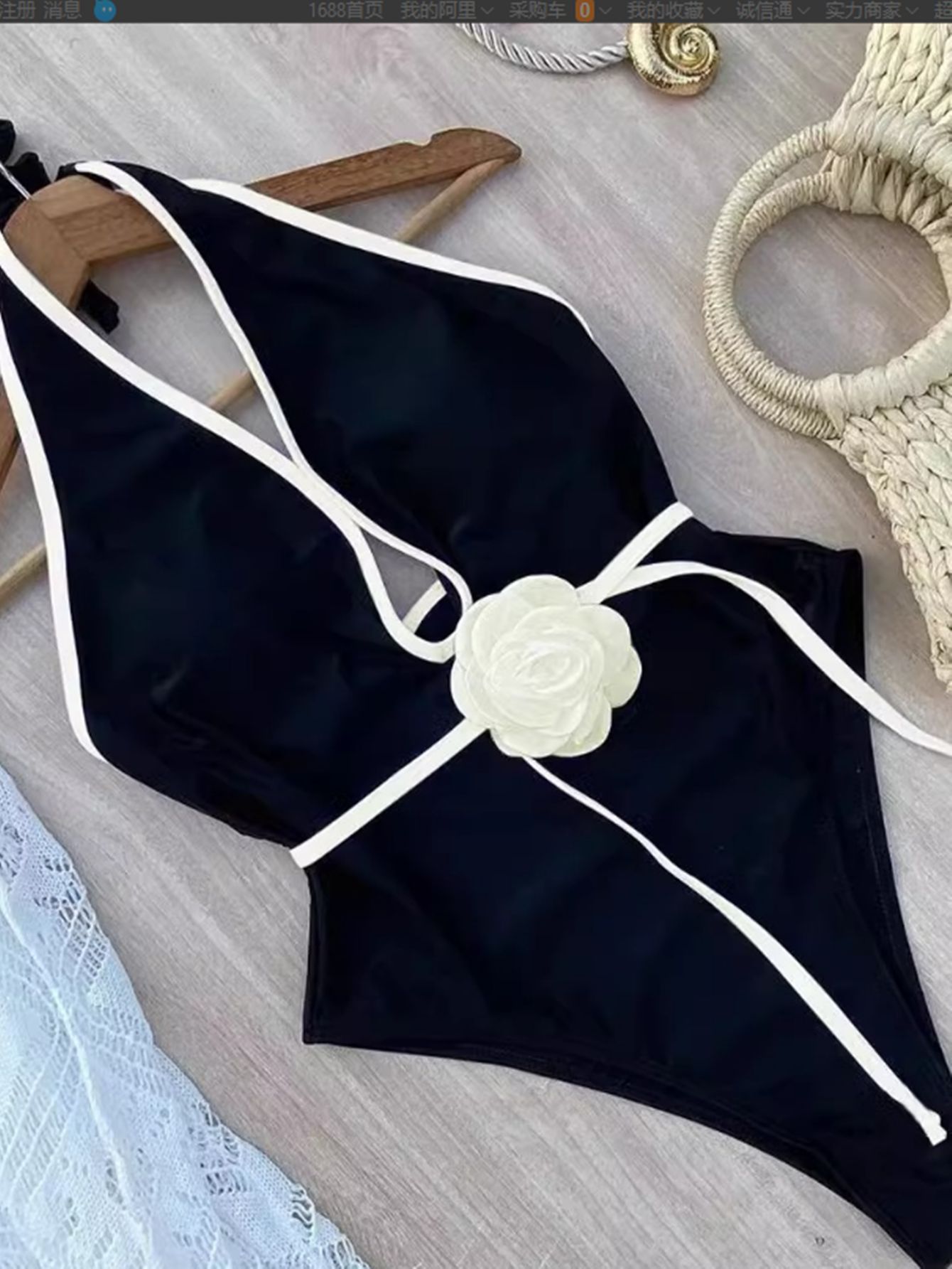 2024 새로운 단색 매달려 목 허리 테더 꽃 허리 슬리밍 살은 원피스 선 스크린 수영복 수영복을 덮고스토어 가기