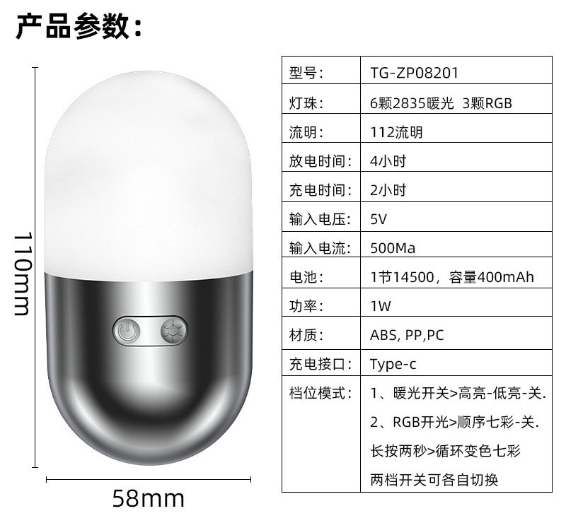 국경 간 새로운 텀블러 간단한 분위기 분위기 램프 캠핑 램프 텐트 램프 분할 램프 하나의 램프 이중 목적 이중 광원스토어 가기