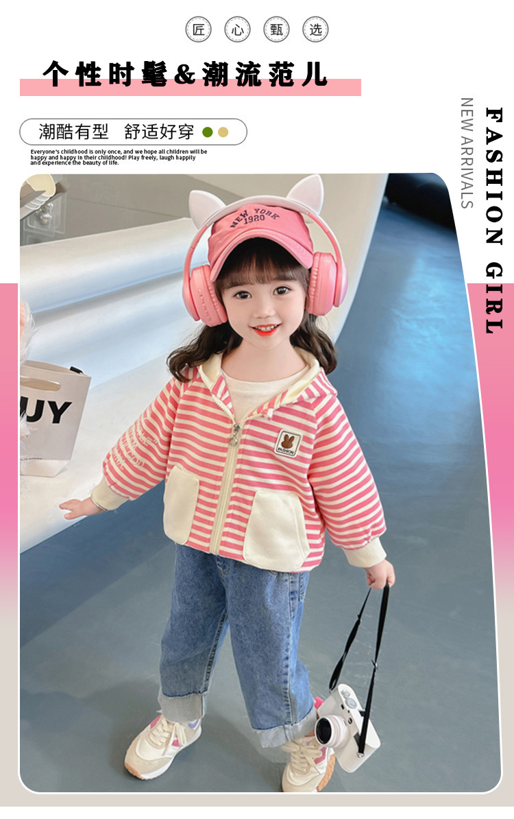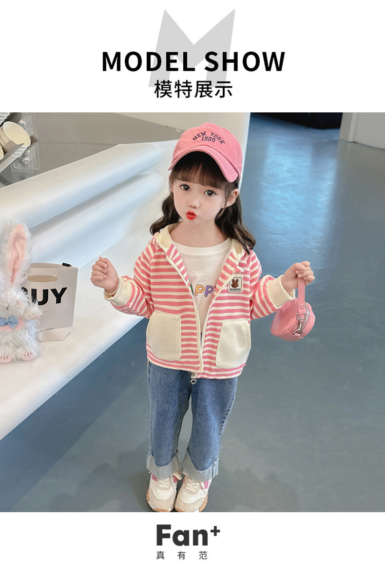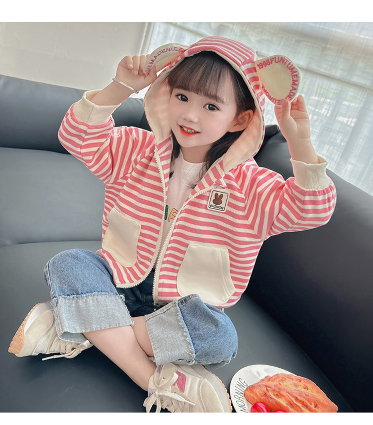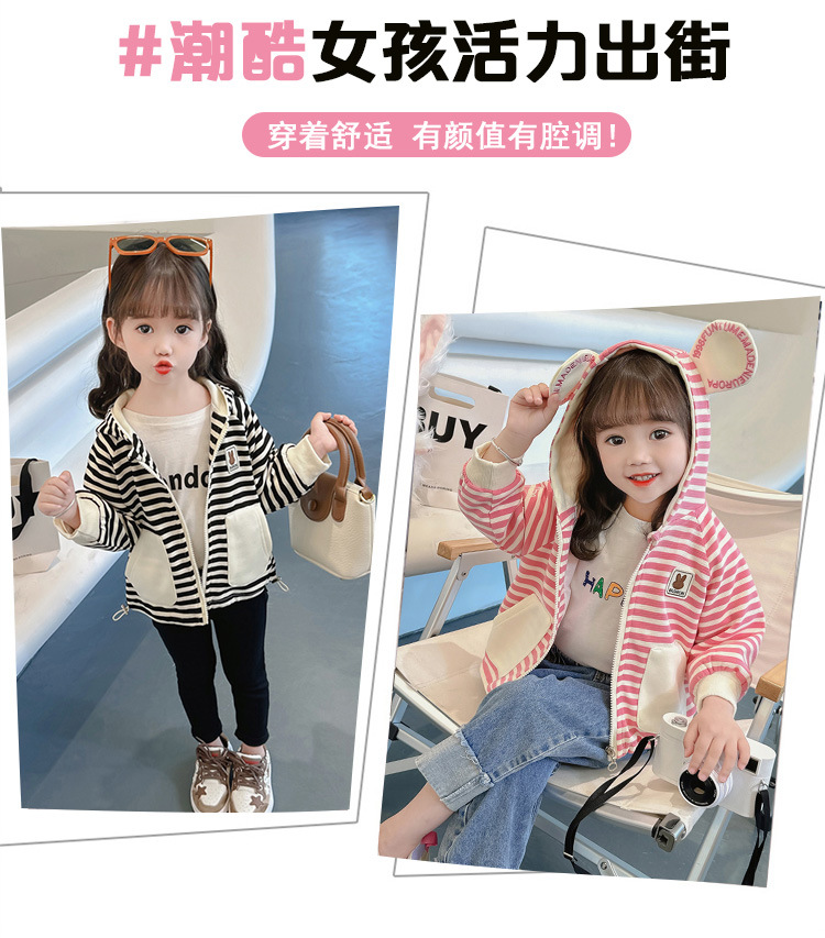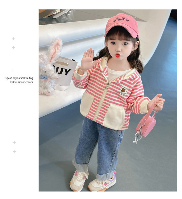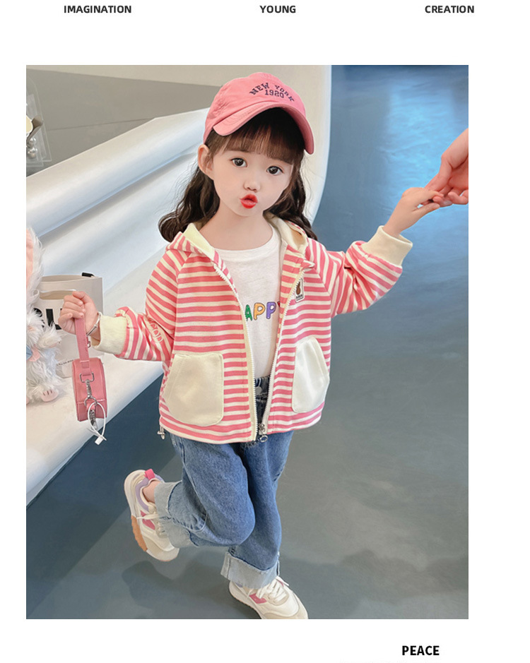 여아 스트라이프 코트 봄 가을용 아동 한국 스타일 패션 어린 소녀 자수 컬러 스트라이프 재킷 중소형 아동용 상의스토어 가기